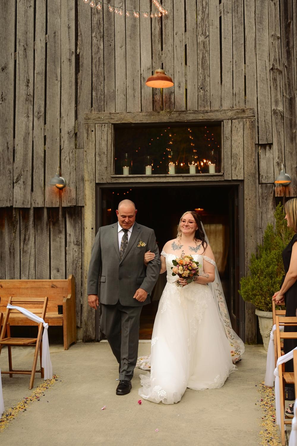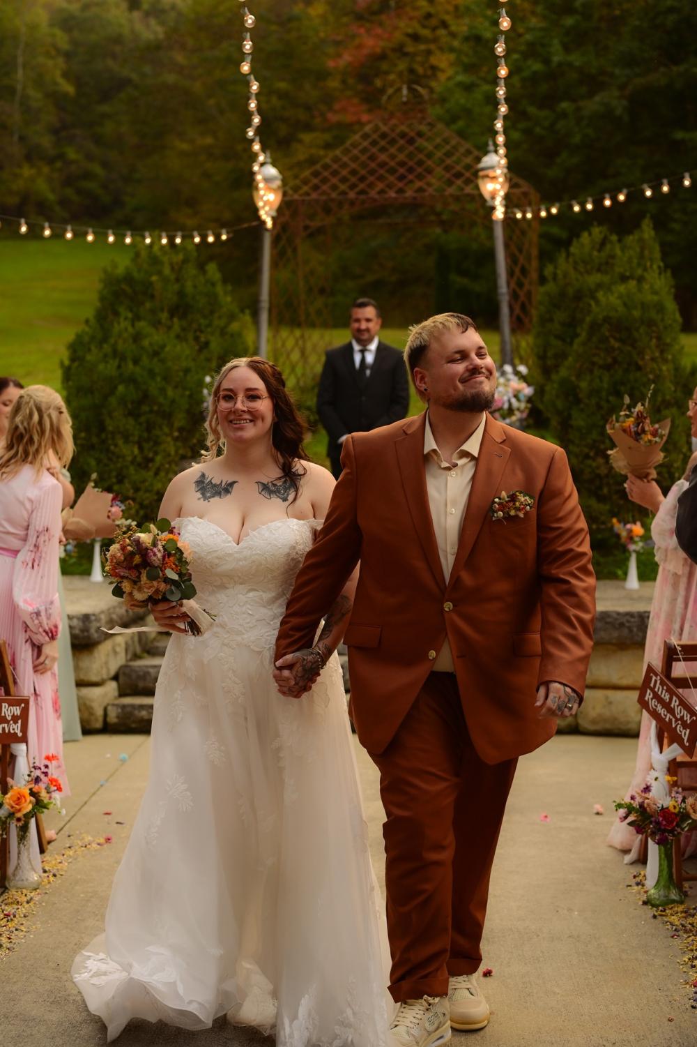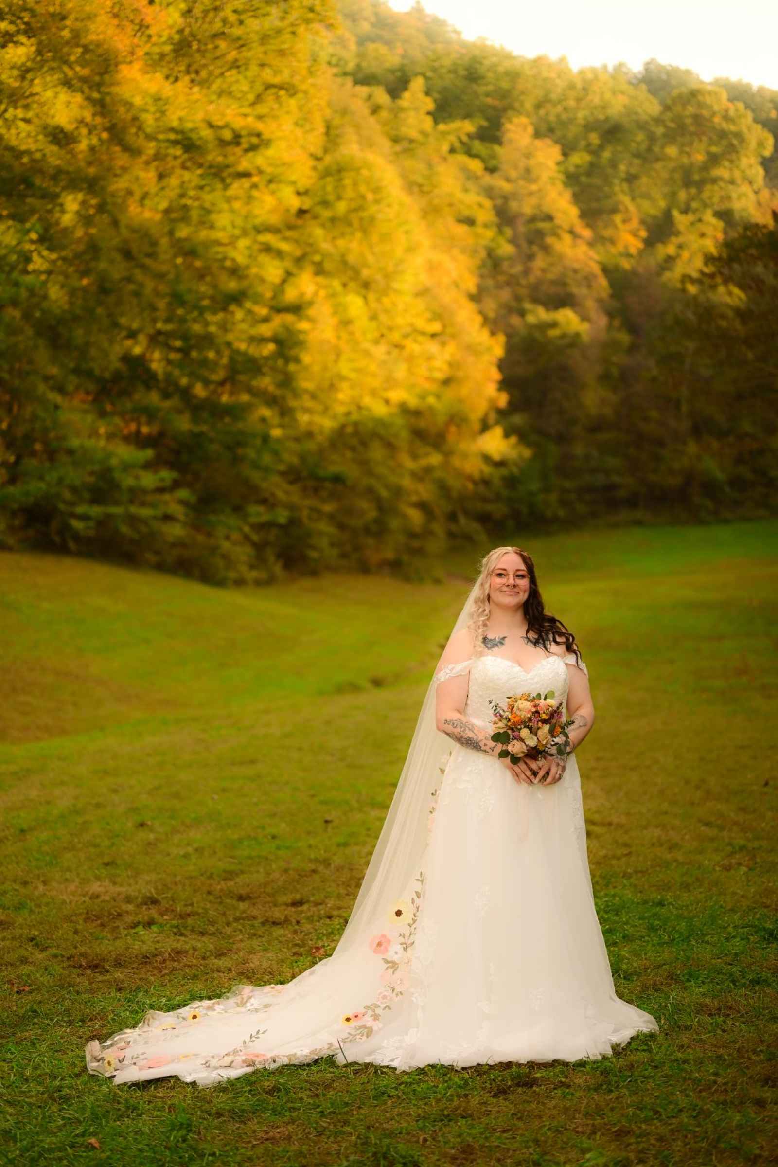 The first idea that Destiny and Drew had when planning their wedding was that they wanted something a little woodsy with a hint of cottagecore whimsy and romanticism. Once they settled on having their nuptials in Tennessee, Destiny and Drew really dove into the rustic theme! Destiny shares, "We used a lot of pastels and mixed in fall colors for the season. We wanted to go for the cottagecore, fairytale kind of vibe." Some of the key details to their day were the thirty milk glass vases for the centerpieces and the faux moss runners on the table. We love how Neeley Photography captured every detail with the same dreamy style!
