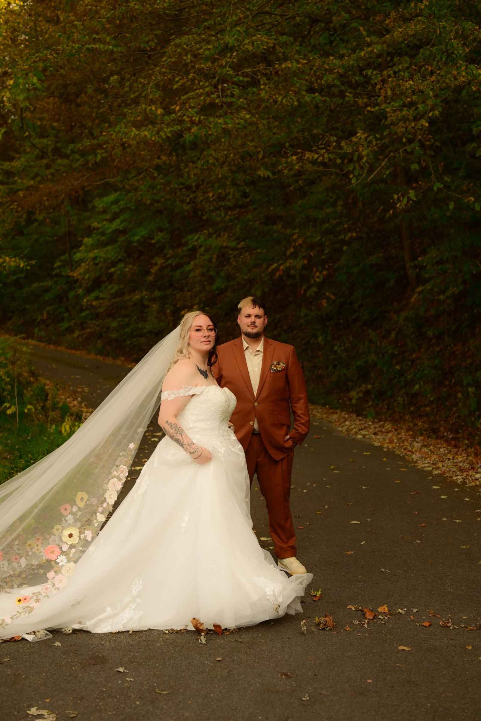 When she went dress shopping, Destiny was convinced she didn't want to walk out with a white dress. However, after trying on numerous dresses, she surprised herself. "I tried on probably fifteen dresses before I found the one," Destiny admits. "Once I tried on my dress, everyone in the room was crying, including my eight-year-old sister. That’s how I knew it was the one!" We think it's absolutely stunning! And we love that Destiny decided to pair it with a veil that has a pop of color in it.