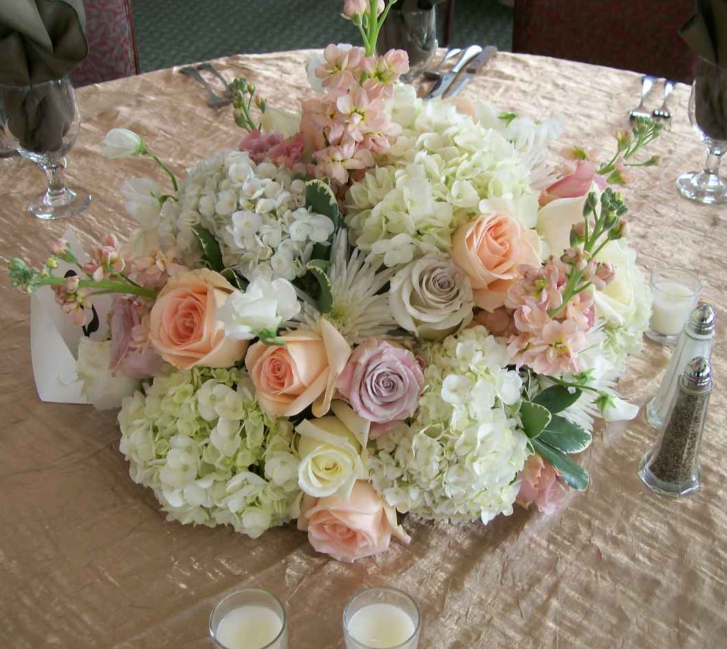When choosing flowers, you should also think of your overall design style and budget constraints. Rounding flowers, such as roses, hydrangea, carnations etc. can be used to base in bouquets and centerpieces giving you a full lush look in your choice of colors while still being friendly to the checkbook. Top those base flowers off with a few more exotic lilies or orchids for an upscale look or with a splash of bright colored daisies for a more playful, fun feel. Talk to your professional designer about favorite flowers and floral dislikes but the more open you are to which flowers are used to achieve your individual flair the more look you will get within your budget. Another budget saving device is to focus on fewer varieties so your florist can order flowers in quantity. Remember when doing this, however, that fewer varieties leave you with less opportunity for the flowers to interact with the shapes and textures of each other, so be careful not to be so conservative that you end up being boring! This is a great time to add some extra interest with ribbons, bling or accents to enhance the flowers chosen and still give you bouquets that are unique to your wedding.