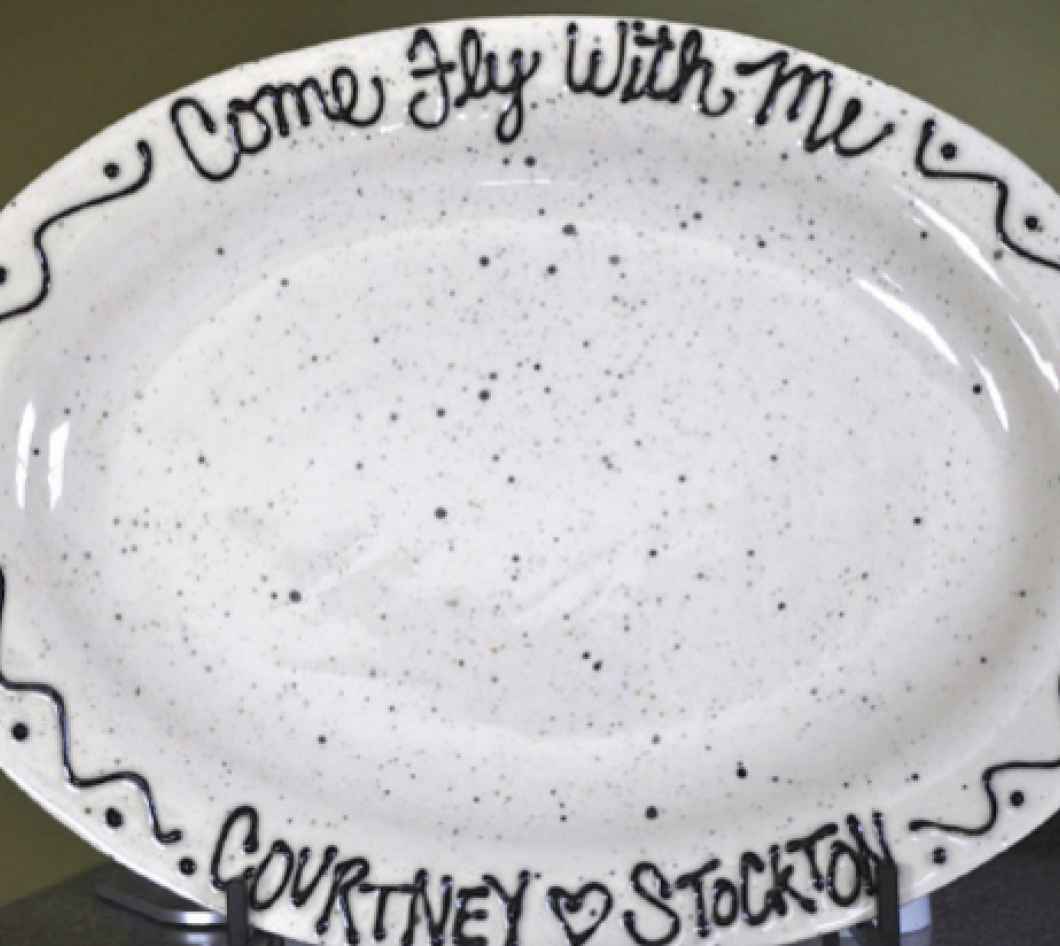 Owner and artist, Jamie Helman, created a custom platter for us that will forever be a treasure reading “Come Fly With Me” (my husband is a pilot and we entered our reception to the Frank Sinatra version of this classic love song) and our wedding date across the bottom. It doesn’t get much more personal than that! We have a set of eight wonderful monogrammed napkin rings to go with our Orange Tree-purchased cloth napkins, as well. Our crystal was selected and special ordered for us from an extensive line of the finest crystal. We had a major role in every part of the registry, and as the bride and groom, that’s the way it should always be!