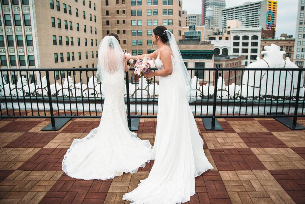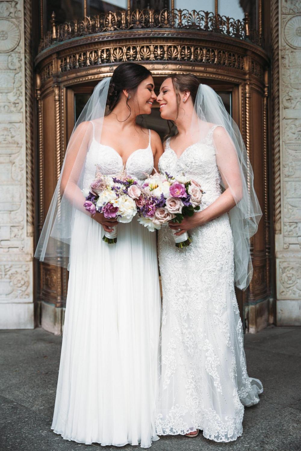 Mary’s sisters traveled with each bride-to-be on separate dress hunts. Vivian quickly fell in love with a gown but took two days to really think it over. After a long period of deliberation, she said 'yes' to the dress! Mary wanted to find a dress that complemented the elegance of their venue. In the end, both ladies chose a gown by the same designer and line, perfectly complementing each other!