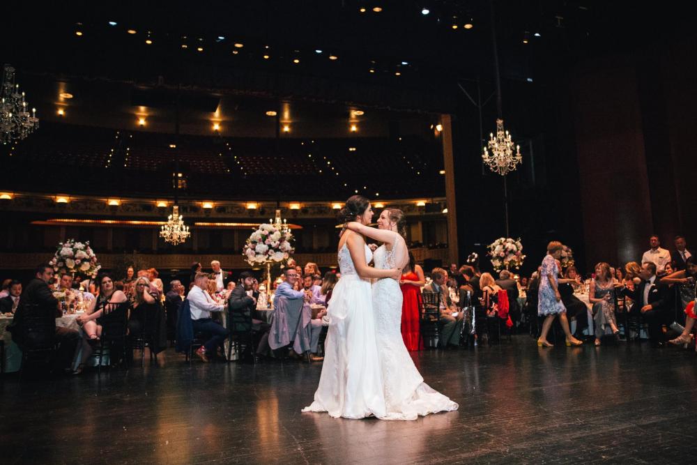 The pair also wanted a rainbow cake as a nod to the LGBTQ+ community. Mary explains, “We were so fortunate to meet and fall in love in a time where we knew we could get married. So many of those before us did not have the same luxury, and unfortunately, today, we and so many others, still lack equality in many aspects of life. We made sure to keep this in mind while planning our wedding. It was truly a privilege to have the support of our families, friends, and vendors who made our wedding such a beautiful celebration of love.”