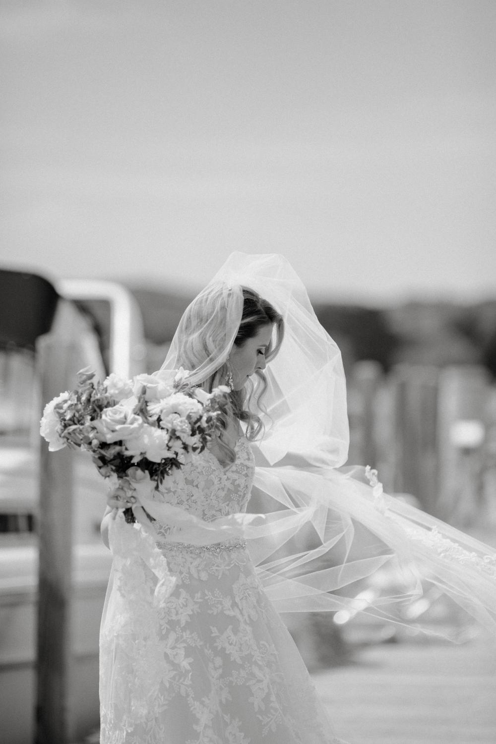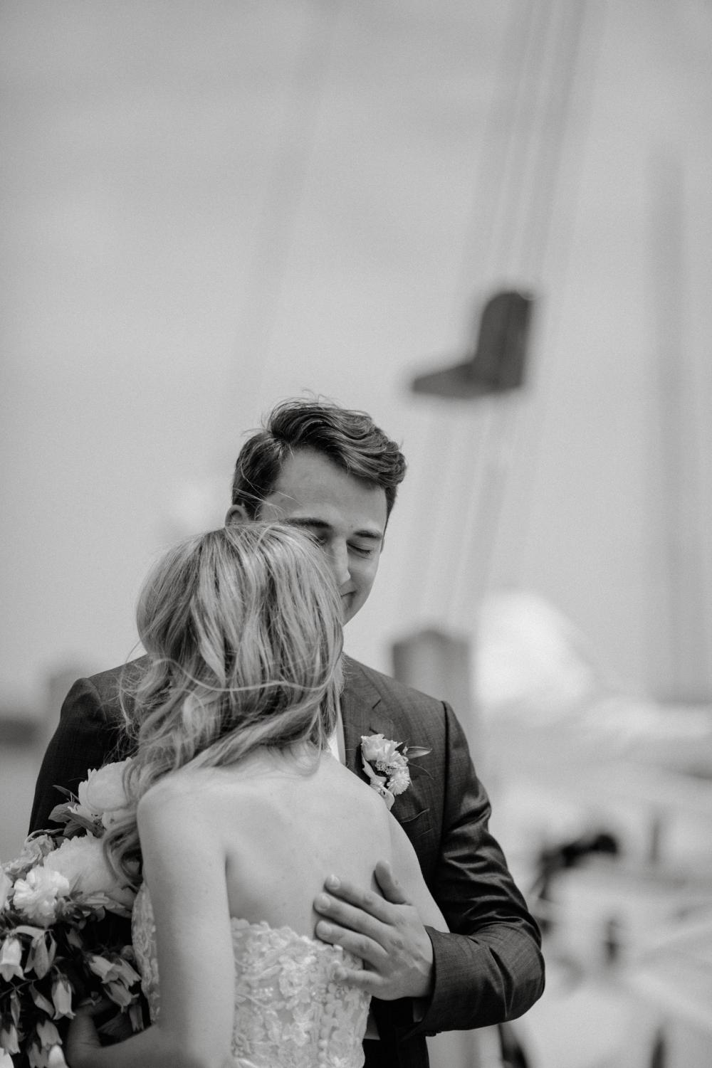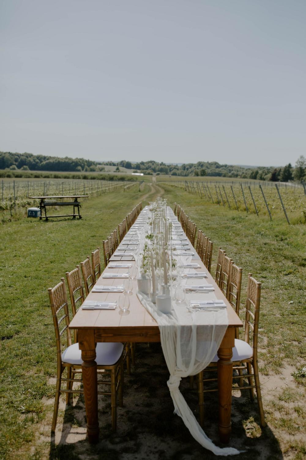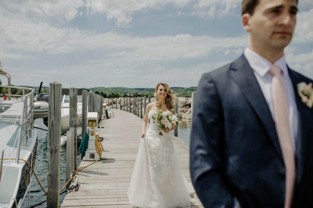 Because of the pandemic and not wanting to rush their planning, Joel and Abbey actually waited six months before planning a single detail of their wedding. The couple both happened to spend vacations going up to Northern Michigan since they're from the Detroit Metro Area, so they knew they wanted to get married there as well. "We love Traverse City the most because it is on the water and has great food and wineries," Abbey shares. "Sharing this part of Michigan with our friends and family was really special."