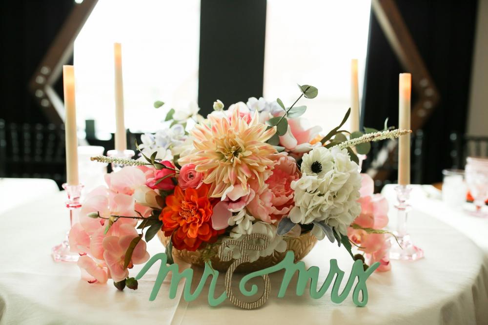 Maisie wanted to get started right away on the planning process. “I downloaded multiple apps and purchased just about every bridal magazine and book I came across,” she notes. Most of her inspiration came from Pinterest and a floral print, which they based their entire color scheme off of!