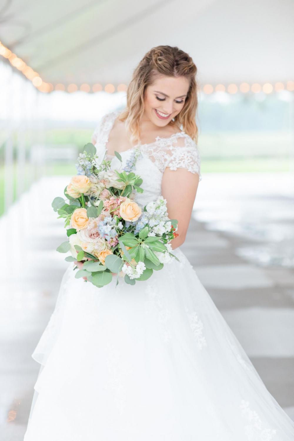 This team was on the lookout for a barn with both indoor and outdoor shooting options, and Adams Acres provided the perfect space! Other perks that the team noted were the venue’s chandelier adorned white tent, gorgeous surrounding grounds for enchanting greenery images, and some super accommodating owners!