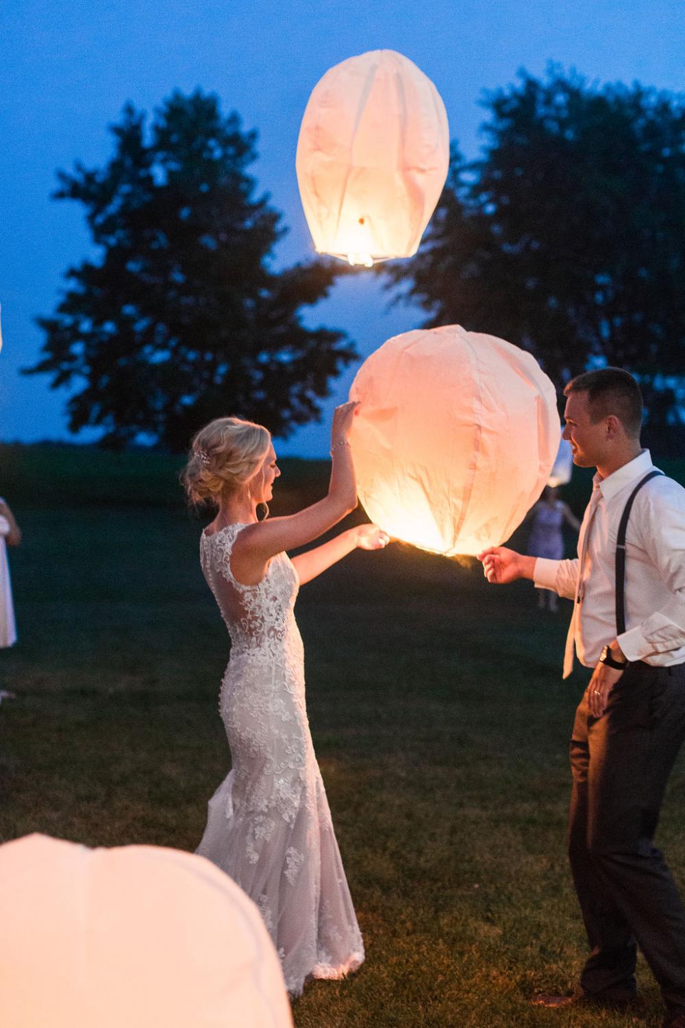 One Hallmark moment in the pair’s big day was the use of Chinese lanterns. Shelbie says, “We had all our guests exit the venue to light off fifty lanterns and watch them float away. Everyone had a blast and it made for some gorgeous pictures!”