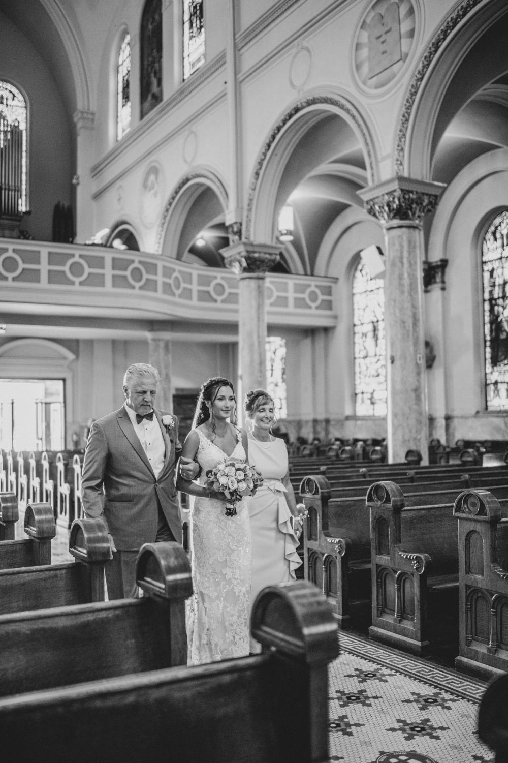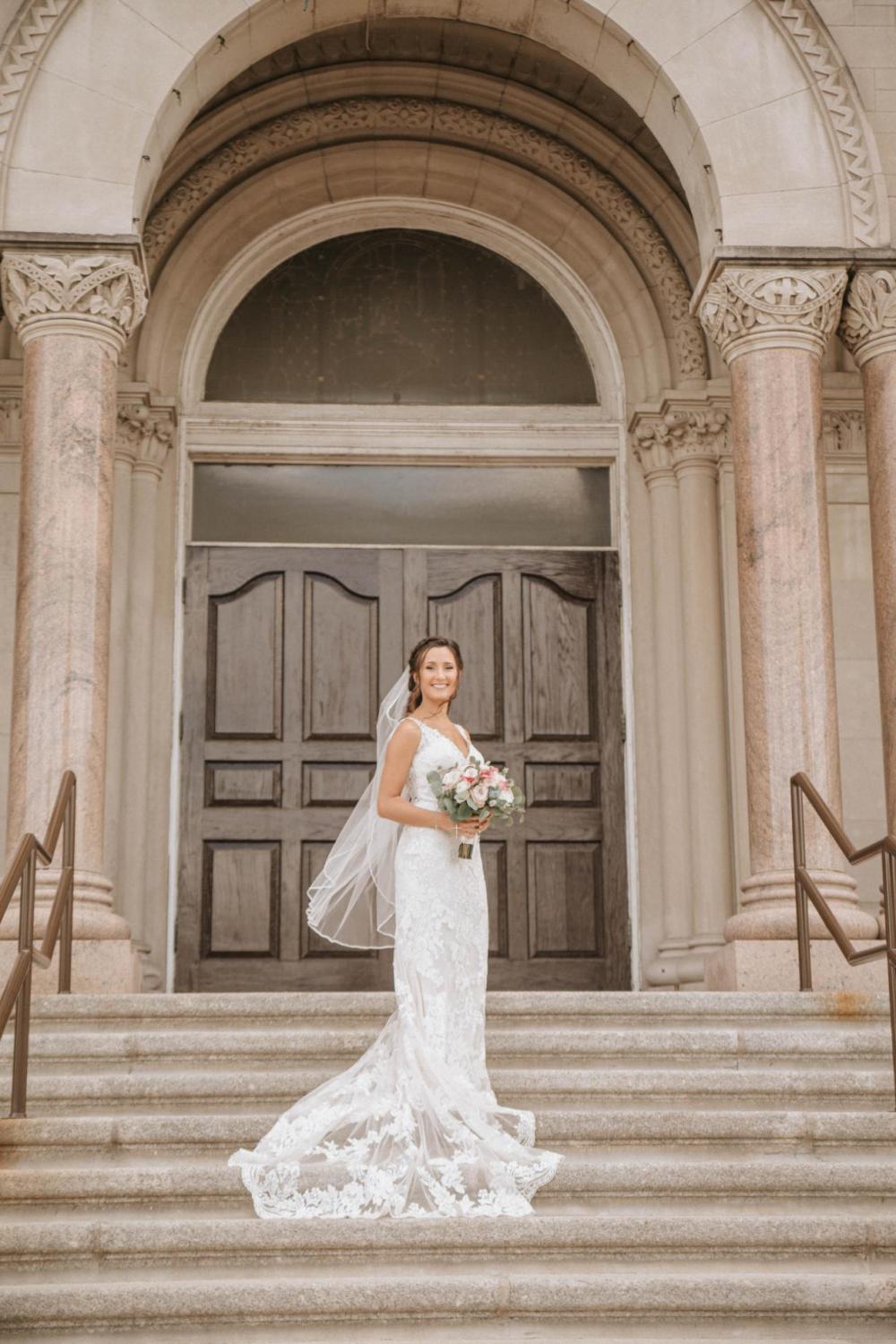 Despite initially wanting an outdoor venue, Megan and David found the Masonic Temple and loved the way it was renovated. "We chose the Masonic Temple because of the space that the ballroom provided and also the upstairs balcony that gave people the opportunity to overlook the entire ballroom, even if it wasn’t outside," Megan raves. Finding a place that fit what she imagined and wasn't rescheduling due to COVID took a lot of stress away from the couple.