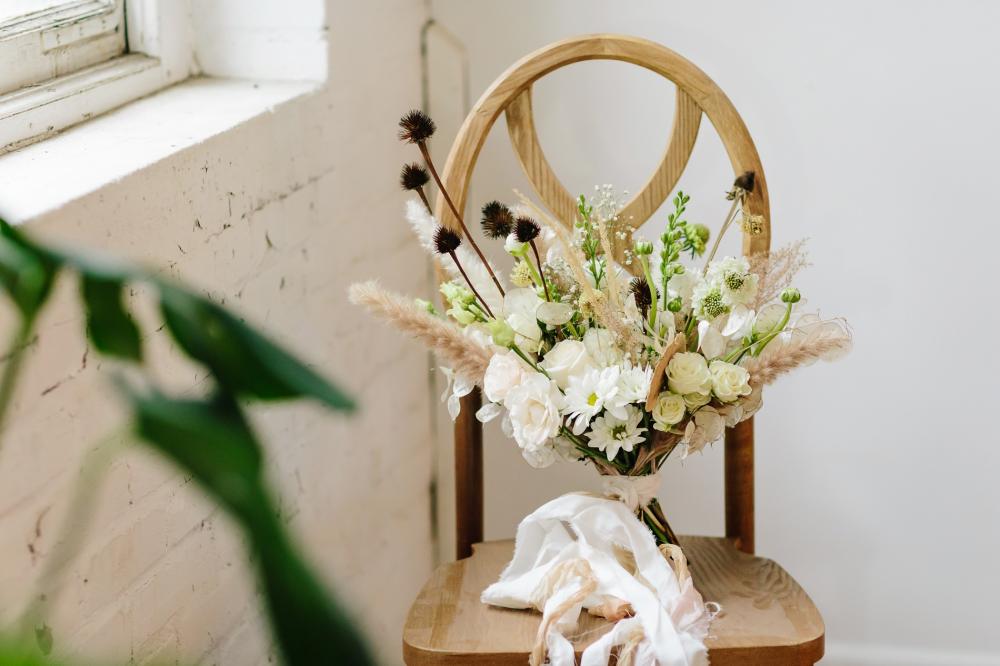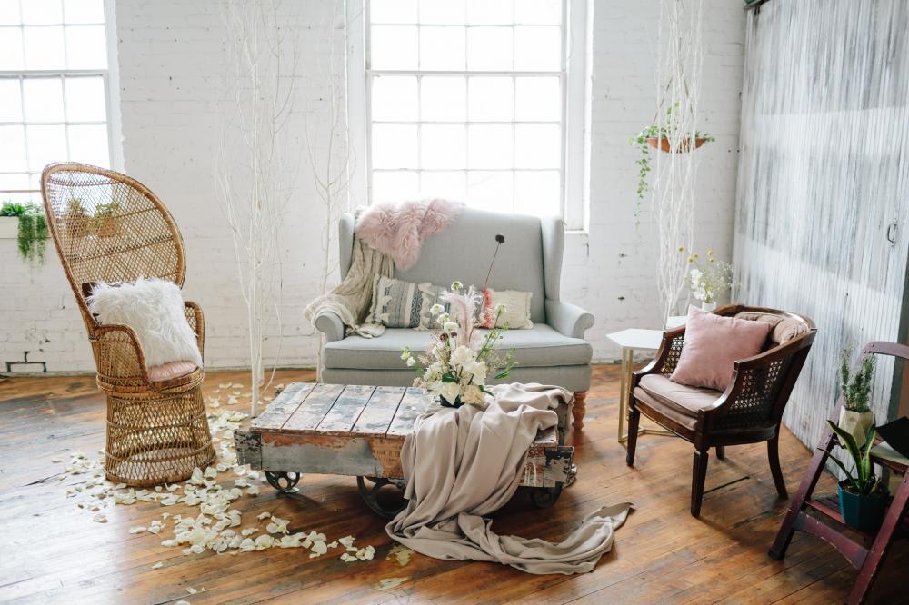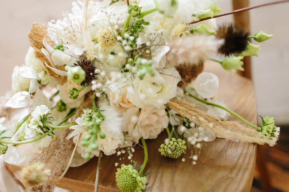 Obviously, you can't show off nature without some beautiful floral accents, but, not just any flowers could be used. Laura wanted it to be a realistic shoot. "I used dried elements gathered from my own backyard to be authentic to my vision," Laura admits. Some live flowers were also added to make the space seem fuller.