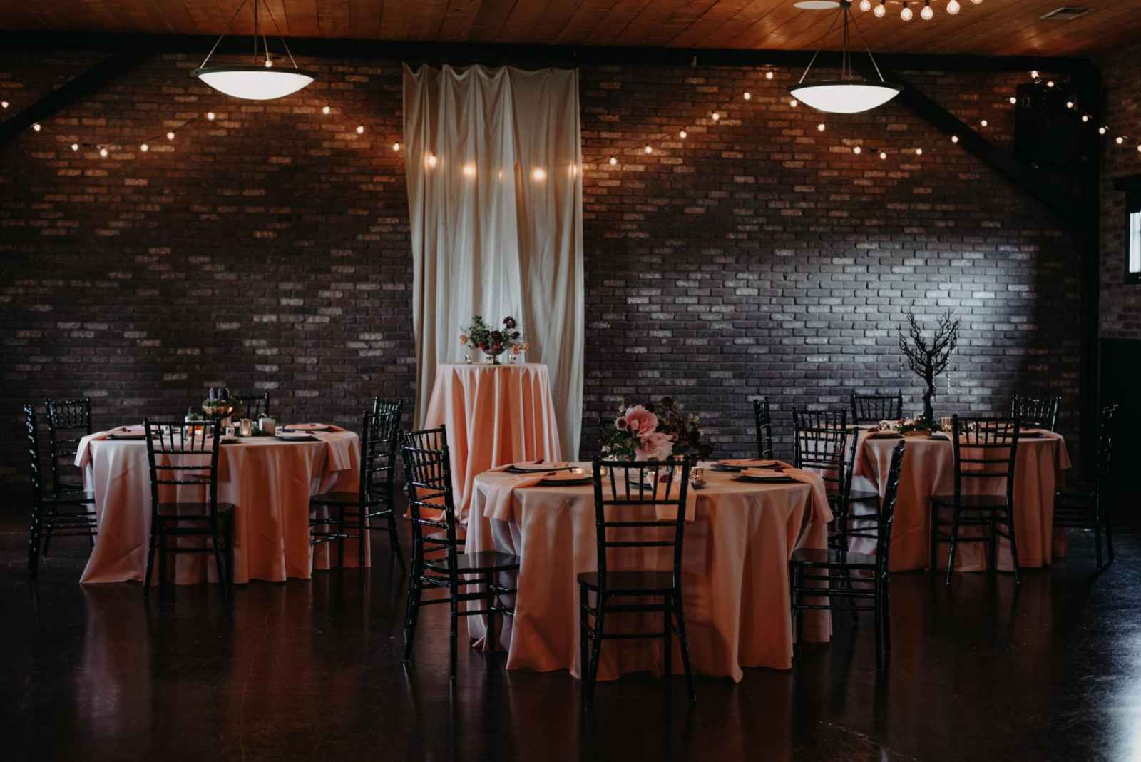 The East Room of The Charles incorporates modernized versions of the building's original architecture from 1970. With the brick walls, glazed concrete floors, and a hardwood area for dancing, any style of wedding could be held in this space. We think it especially caters to designs with a bit more edge or industrial elegance! This space seats 250 people or 400, if used for cocktail-style events.