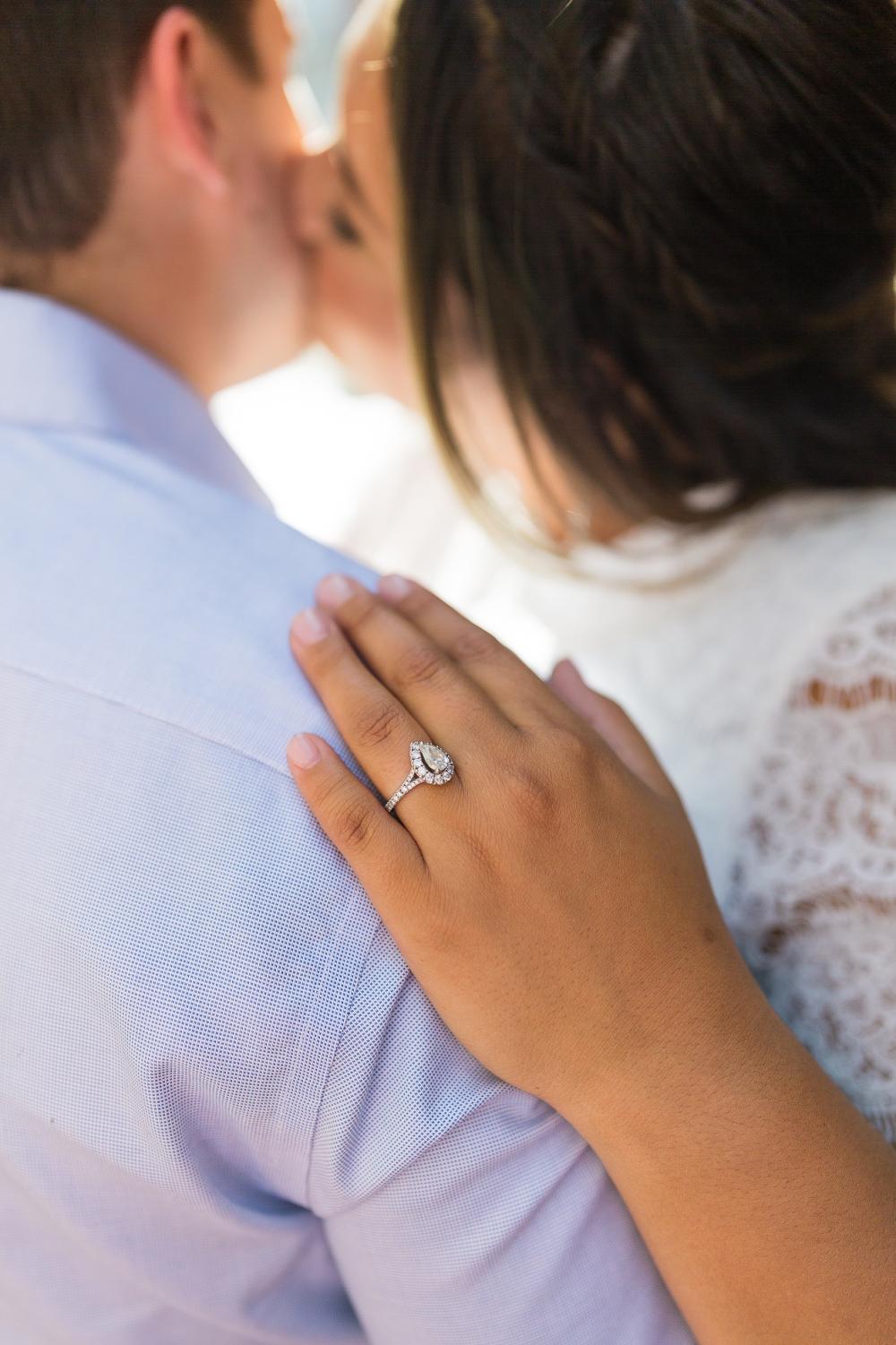 "Danny had some help from me when picking out the ring. However, I was not there when he bought it!" Rachel shares. "My favorite thing about the ring is that it matched exactly what I had envisioned without me ever seeing it until the proposal." Danny and Rachel went shopping for an engagement ring to get the right size for Rachel, and she gave a little input. She wanted a pearl-cut diamond with a halo, and Danny, with the help of his mom, knocked it out of the park!