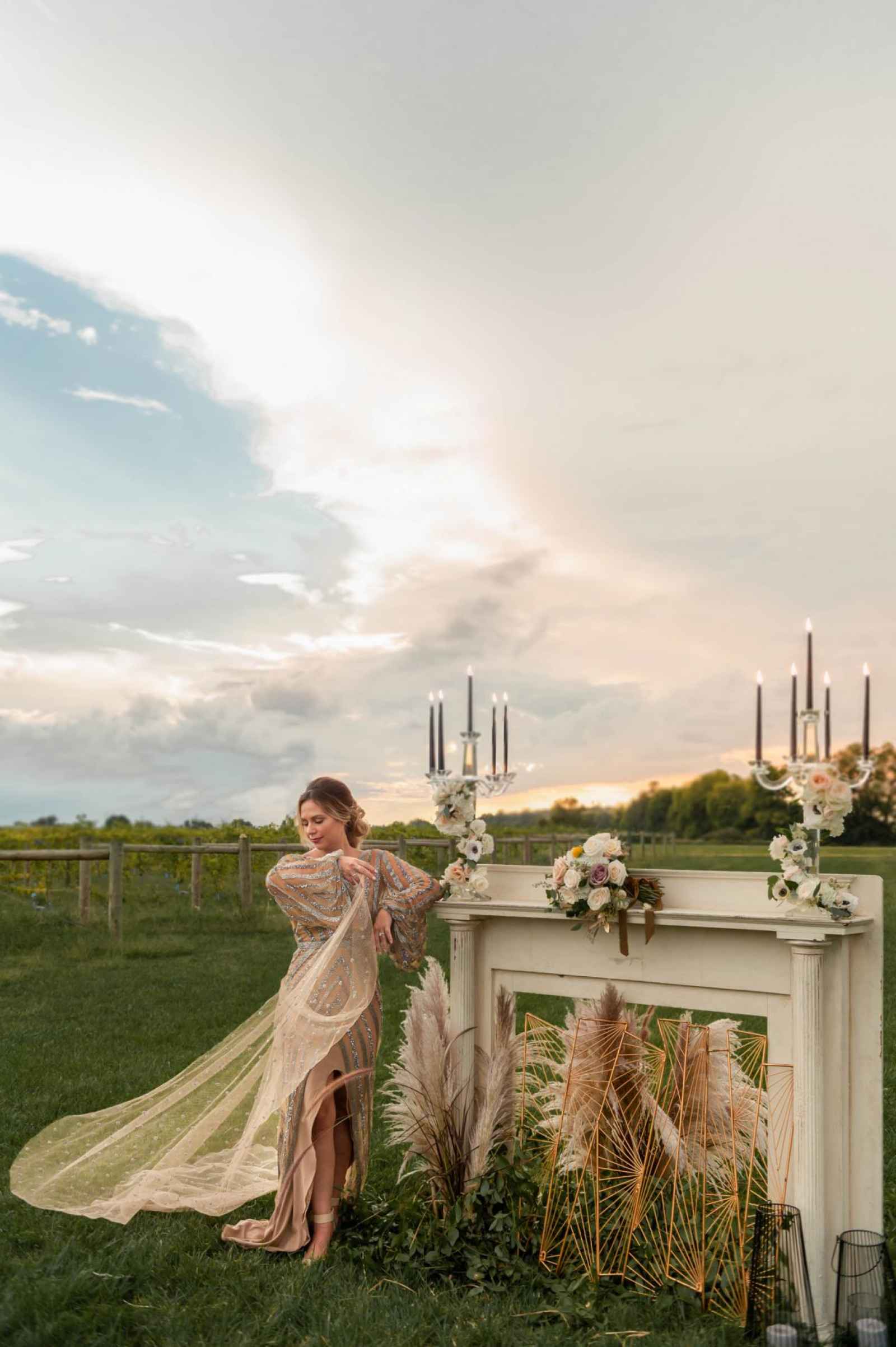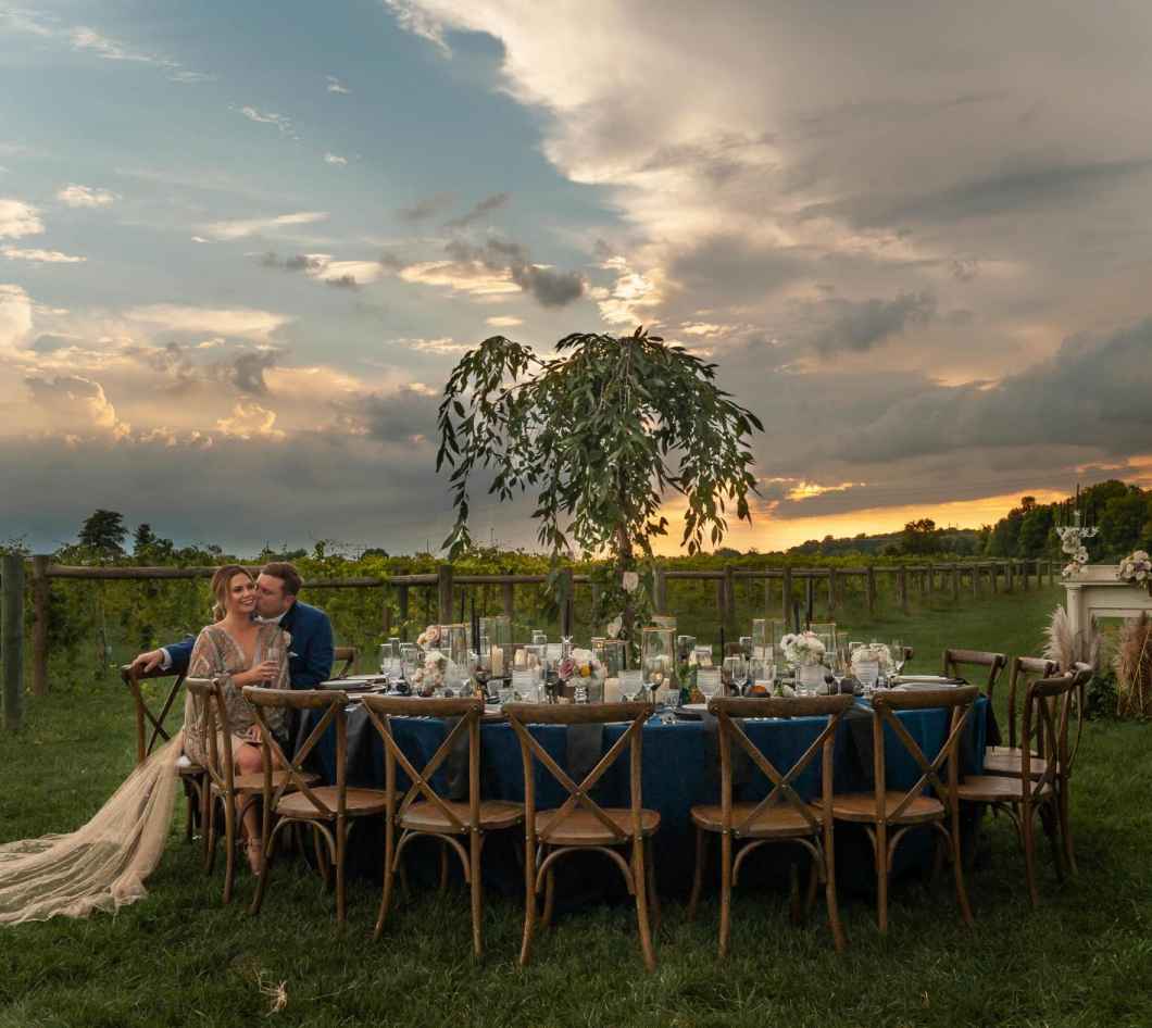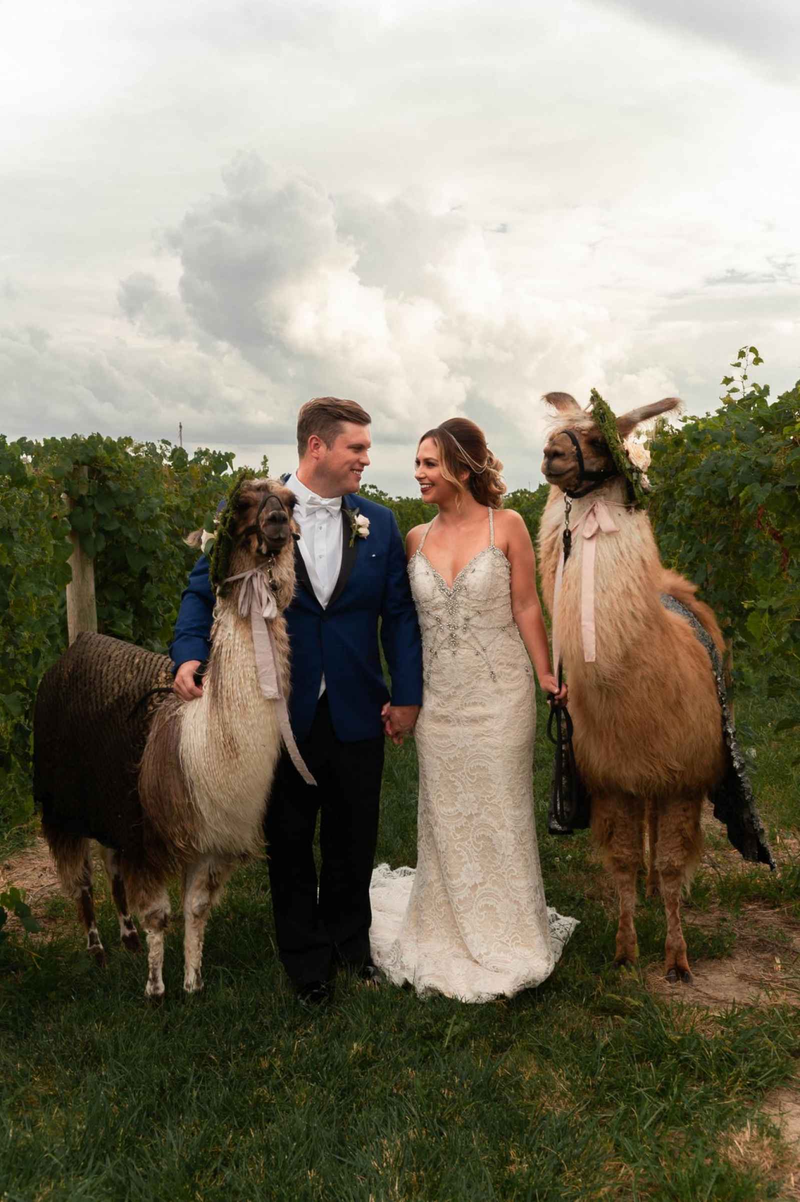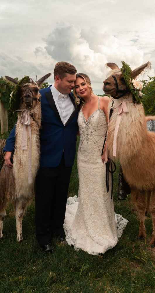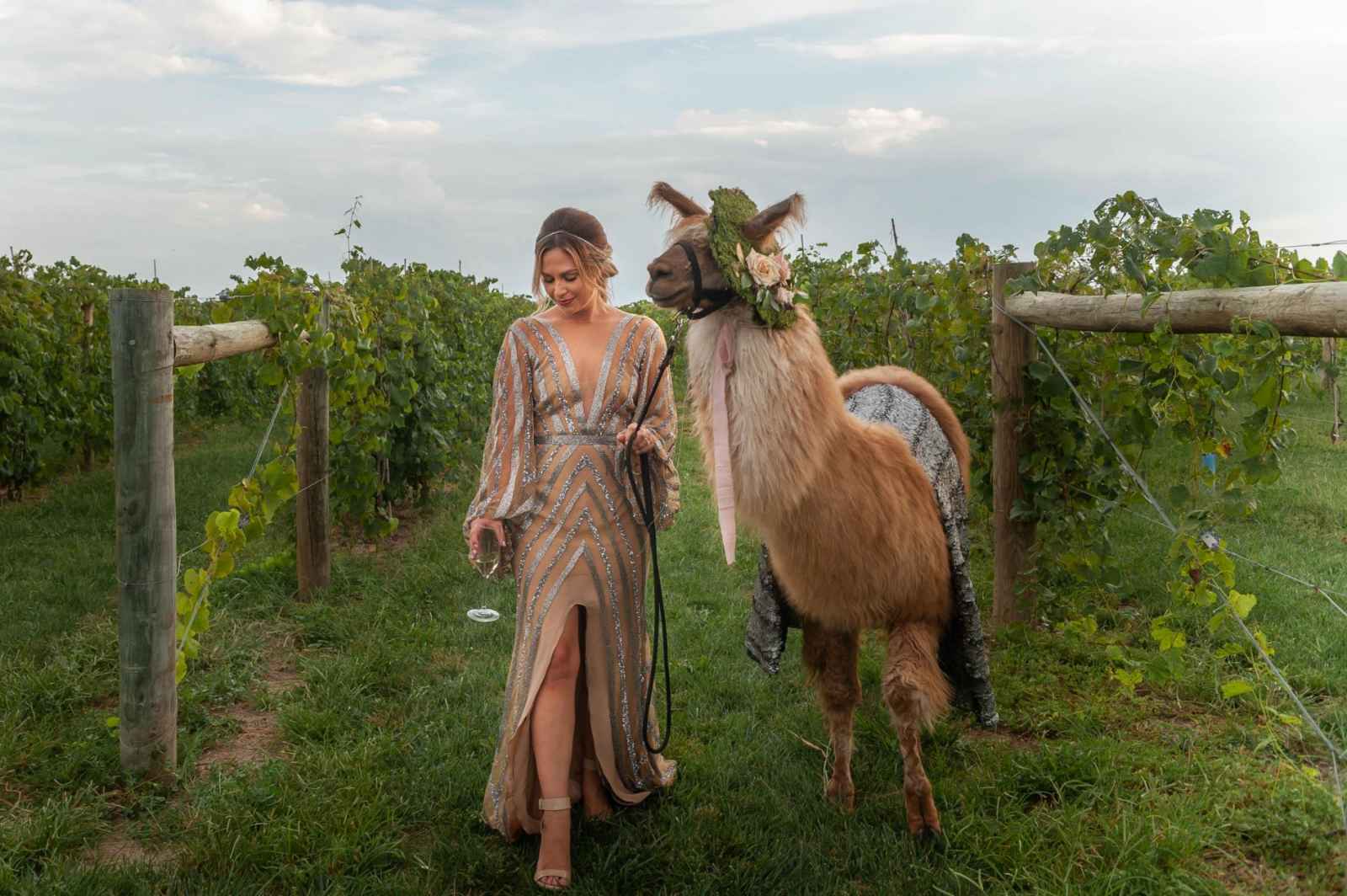 So you want to add some drama to your wedding? Just add a drama llama! Jokes aside, this shoot is bursting with earthy, outdoor vibes and about the cutest (and best dressed) llamas we ever laid eyes on. For Allison Mayer, she wanted to up the ante when it came to this vineyard style shoot, proving that it can have more than just a rustic vibe. It can be glam, edgy and unique, too.
