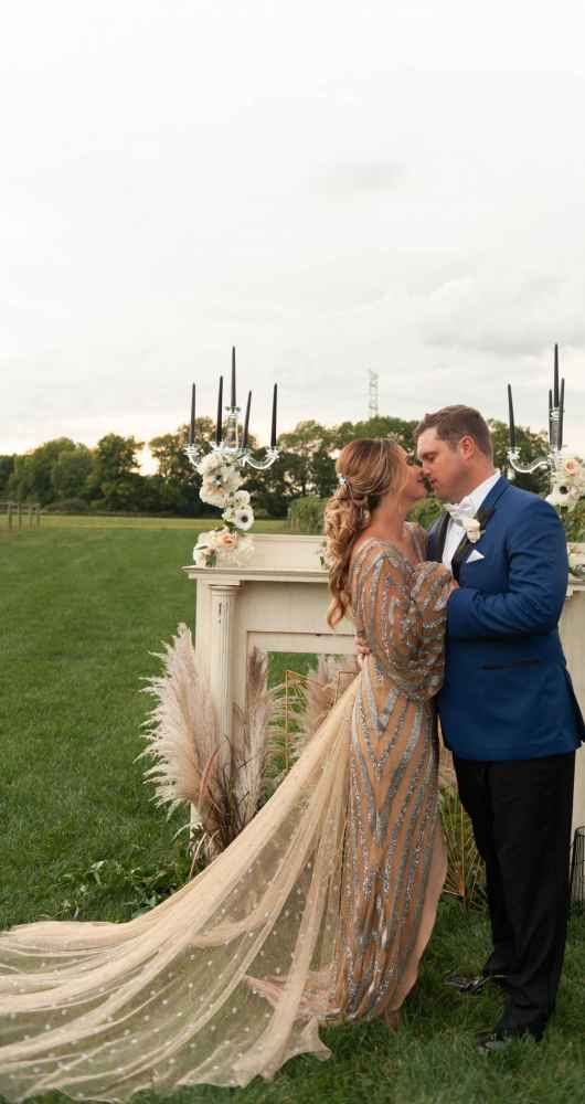 The nude and very sparkly Rue de Seine Moonlight Valentina was the perfect match and everything the team imagined, but they found many boutiques didn't carry it. Luckily, a team member drove from Indianapolis to Atlanta to pick it up personally from Kelly’s Closet. A second and equally lovely dress was sourced from LUXEredux Bridal and helped the team showcase their vision of classic, modern and edgy!