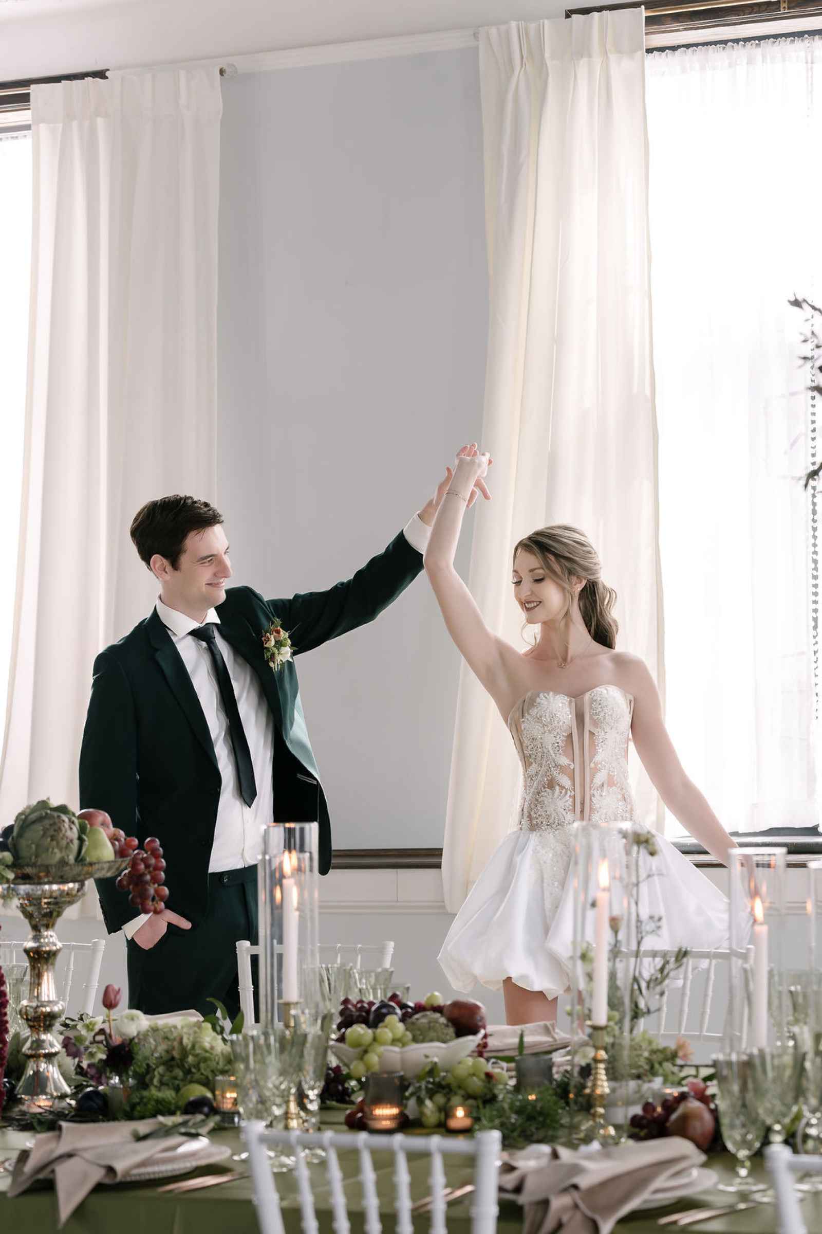 The Grand LV, built in 1928 and thoughtfully renovated in 2019, is a historic gem in downtown Niles, Michigan, offering timeless character and a versatile space. Its abundant windows in the Kull Memorial Stateroom flooded the shoot with beautiful natural light, enhancing the fresh, sophisticated aesthetic Jaime envisioned. We also fell in love with the grand staircase and opulent chandelier! By leaning into these standout architectural features, we created a setting that felt both timeless and inviting—perfectly complementing our theme.