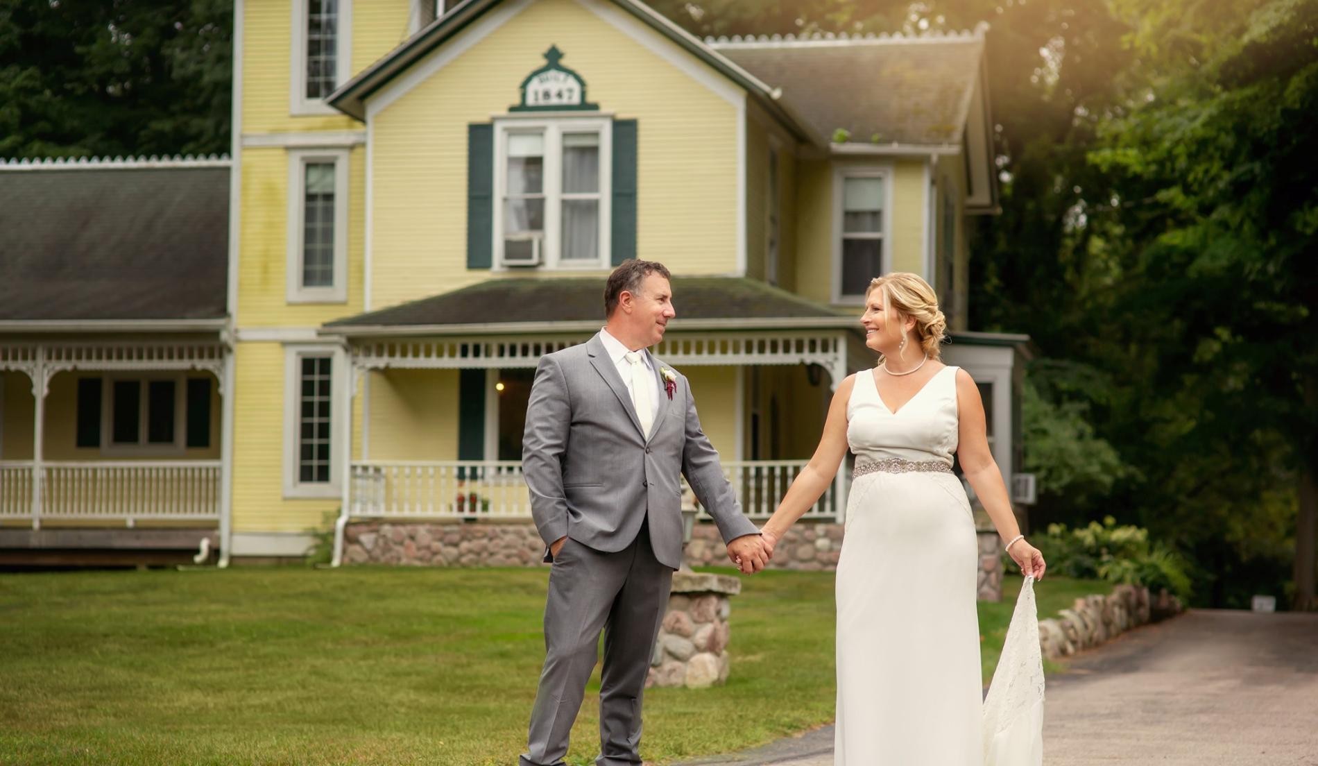 With a renovated Victorian Manor House on their property, Stonegate Manor has leaned into the vintage style by providing their guests with antique rental items on site. These stunning antiques look beautiful in all of their fanciful spaces around the grounds. There is also a 40' by 60' tent that remains connected to the outside of their indoor reception space that can be used for cocktail hours, receptions or both!