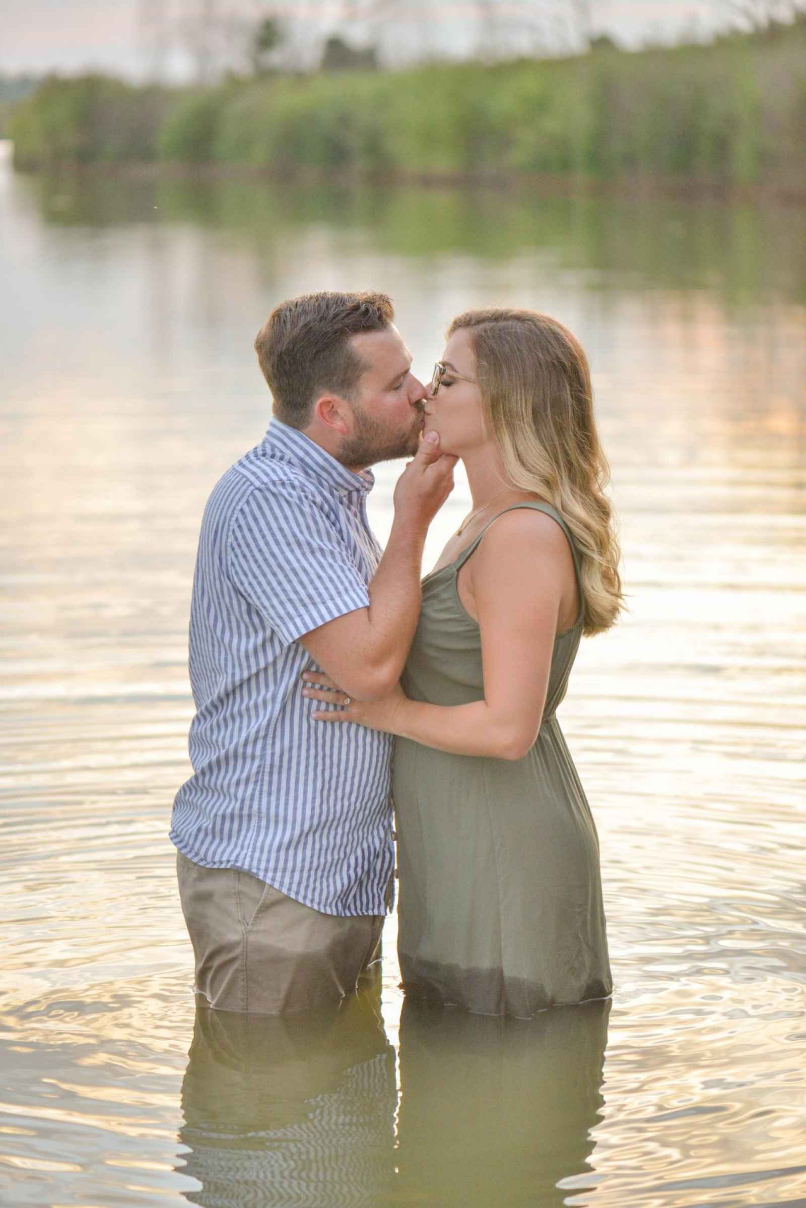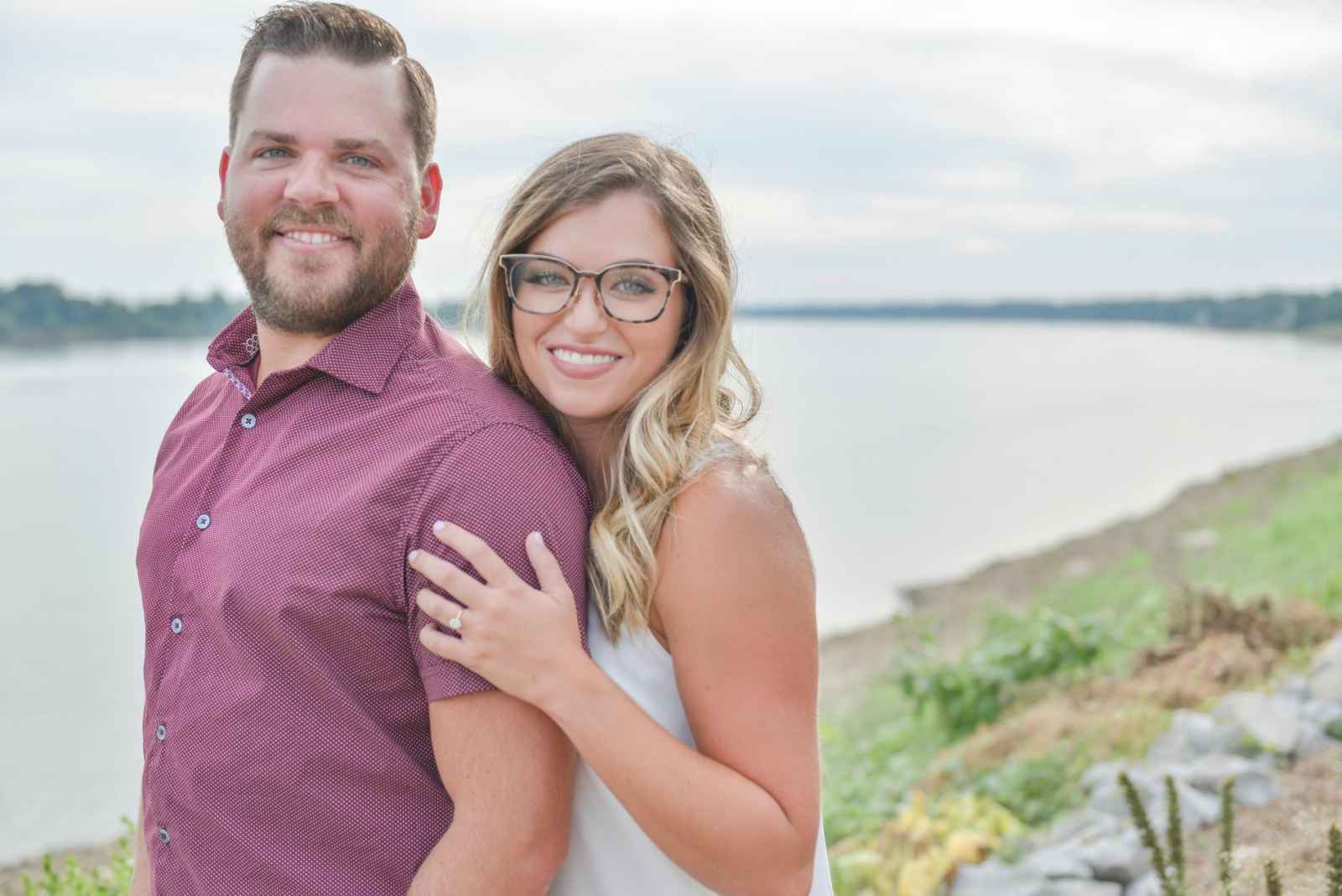 Shelby wanted her ring to stand out, and Augie made just the right choice! When the couple started to look at outfits to wear for their session, they kept a color scheme in mind. “We went for three outfits for three themes–comfortable and casual for starting out, romantic with soft colors for the pictures in the field and neutrals for our water pictures,” Shelby explains.