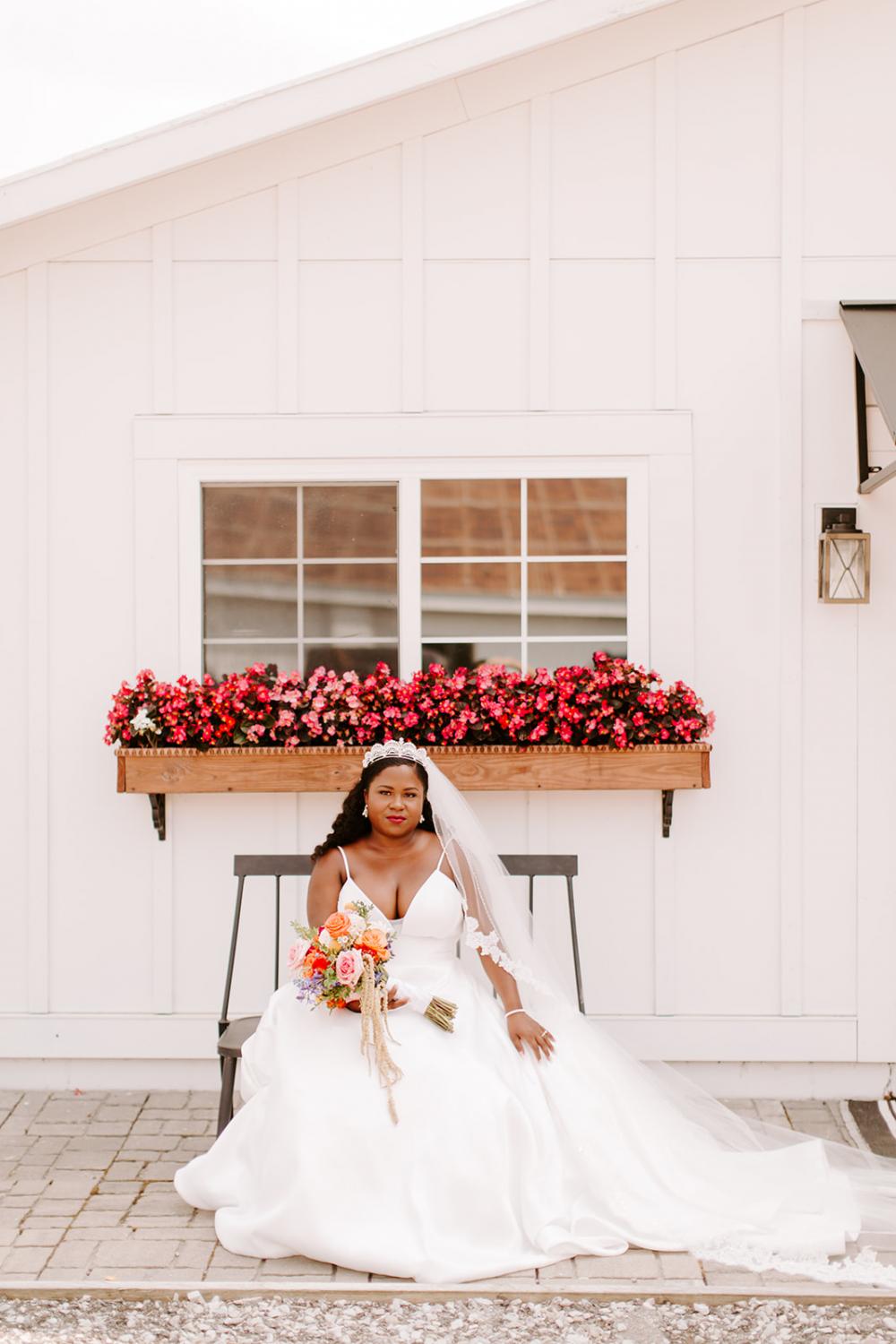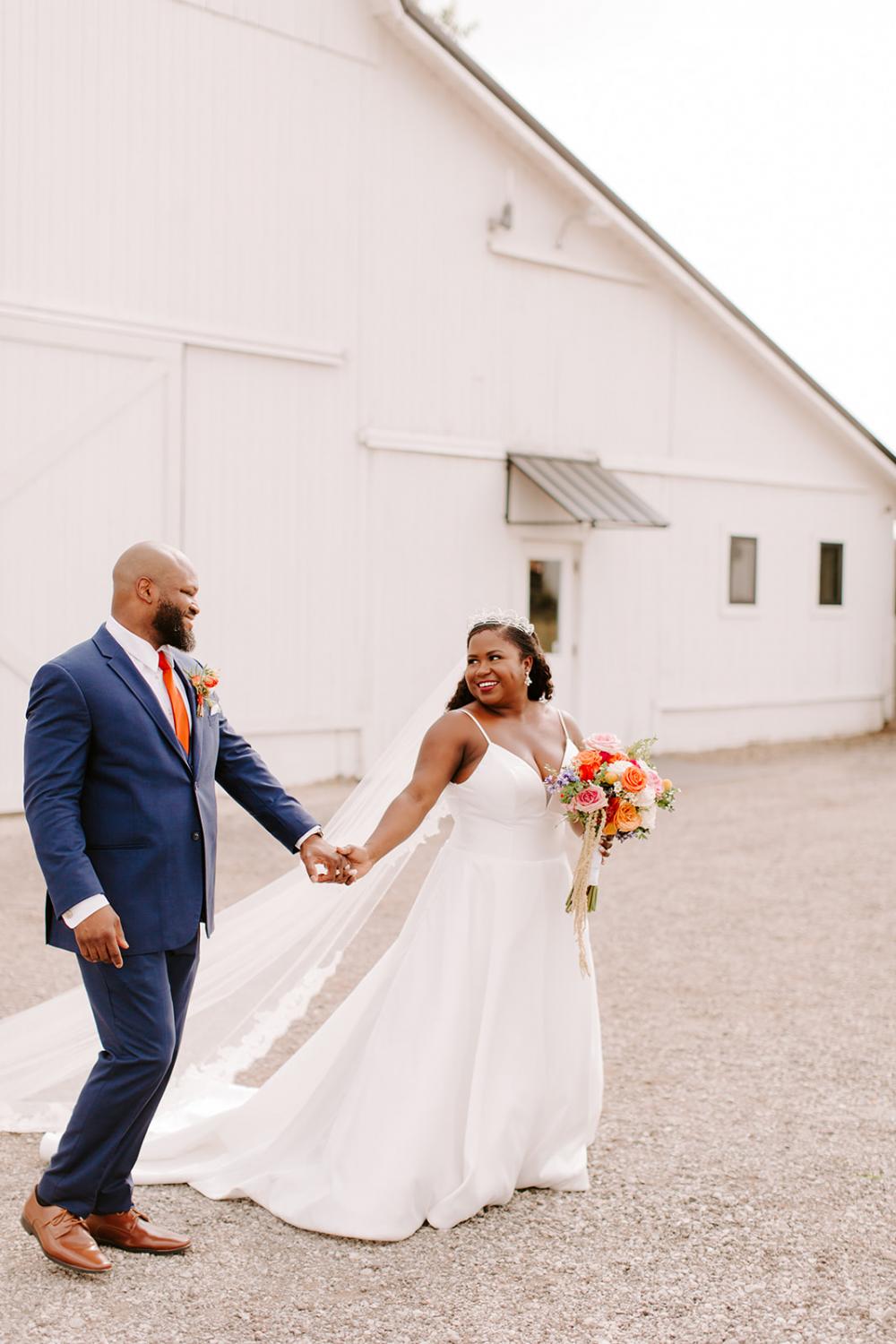 The theme and color scheme came easily for Ashley. "I love color and have always cherished the blend of old and new so we tried to modernize our ‘farm house’ wedding with a chic wildflower theme," Ashley admits. Their venue was the perfect backdrop for their wedding. With an outdoor space for the ceremony and a barn with high ceilings and plenty of room, Ashley and Carl were sure this venue would keep their guests safe.