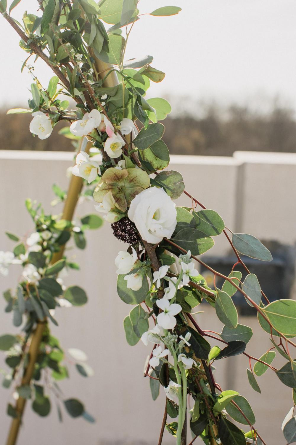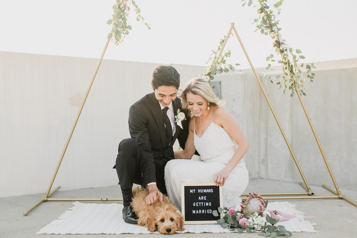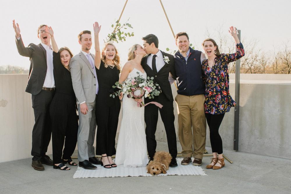Following social distancing guidelines, Christy and Michael were able to create their own stylish day on top of a parking garage. Christy admits, “It was not anything like what I had imagined our wedding day looking like, but like Ellie Goulding’s song ‘Anything Could Happen’, anything really can happen.” They live-streamed their ceremony to their friends and family through Zoom so everyone could be part of it. Even their pup, Rosie, got to spend the day with them!