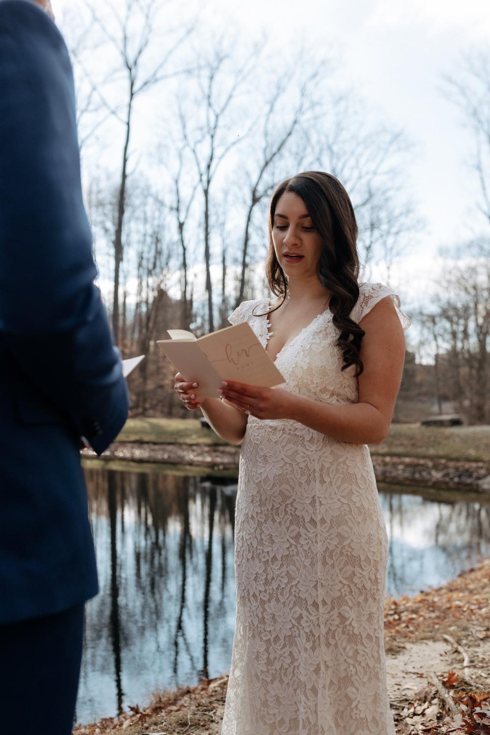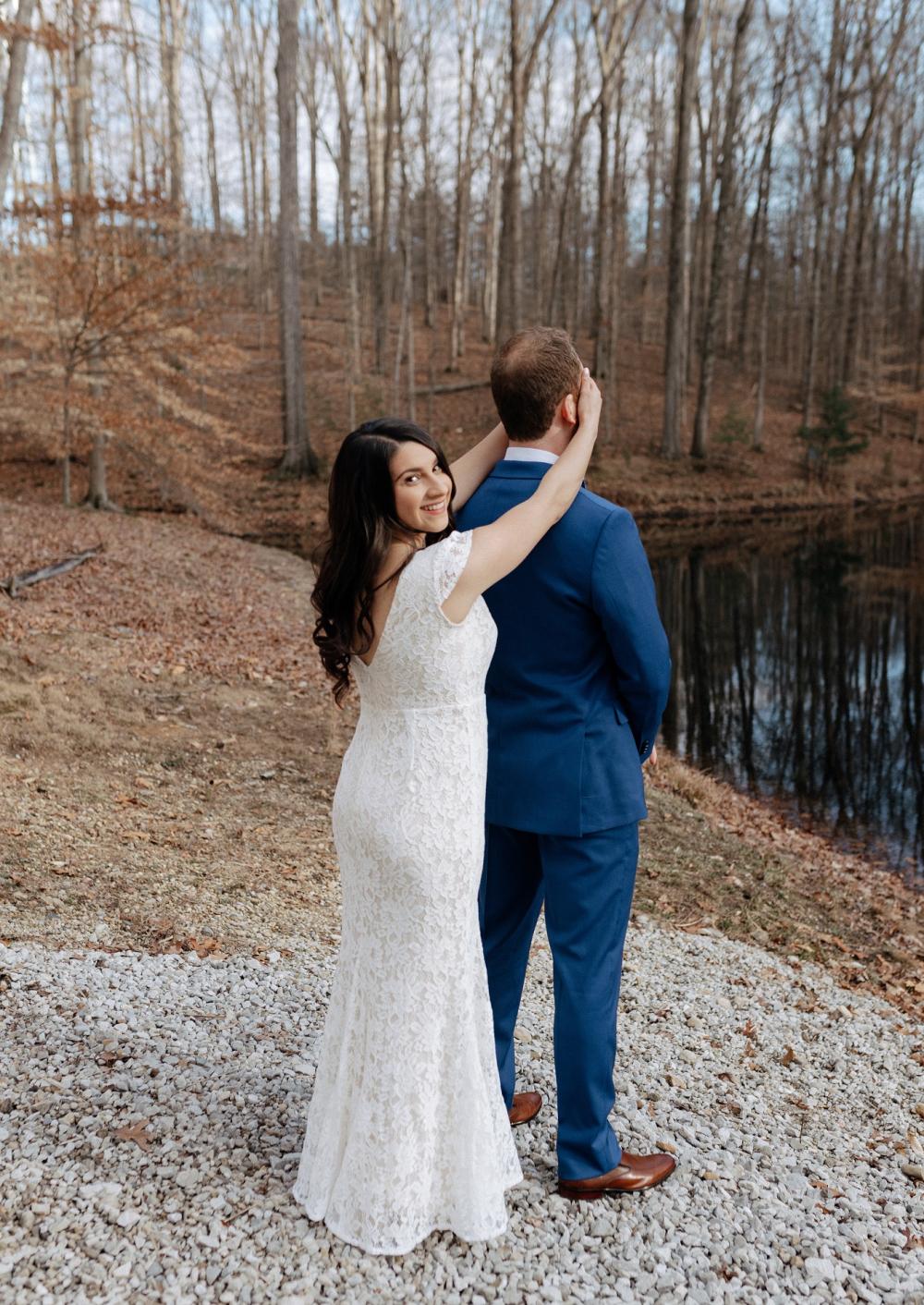 After being inspired by cabin elopements they had seen on Pinterest and Instagram, Hannah and David knew this was the way they wanted to go with their big day. "We were pretty limited with options for a winter elopement but I saw some beautiful cabin elopement photos on Instagram and Pinterest that were our inspiration," Hannah shares. They settled on a beautiful venue located near Bloomington, Indiana and had wonderful weather for their wedding.