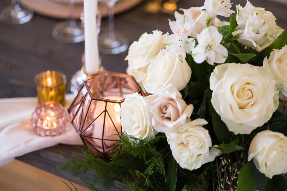 Speaking of decor, we are obsessed with all the flowers used in this shoot! For the modern side of this shoot, the team strived to make the flowers elegant yet whimsical and fun. The traditional side had fewer flowers, but the most impact on the vendors. "The Genestra smelled absolutely amazing and resulted in so many comments from all involved with the photoshoot," Michael raves.