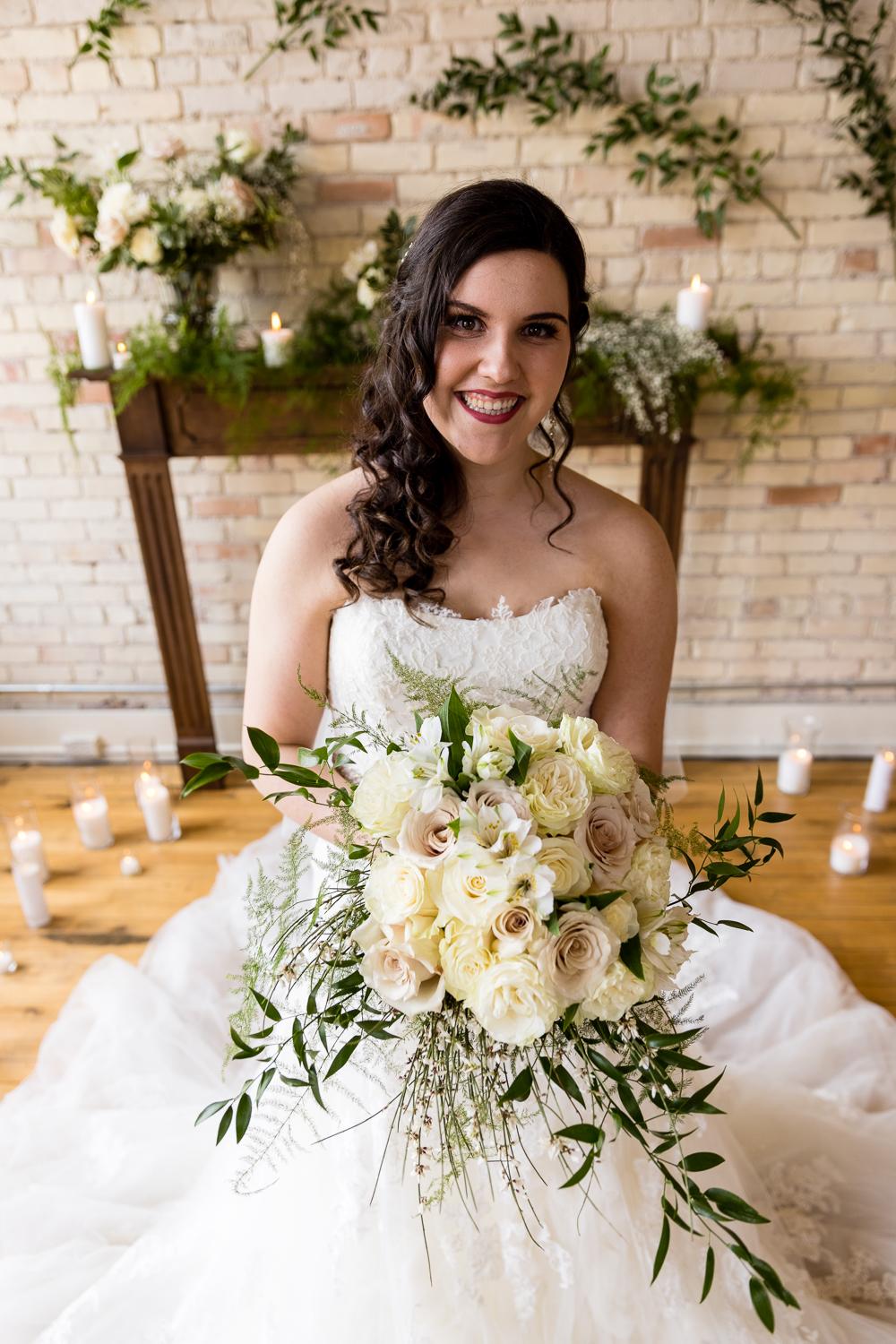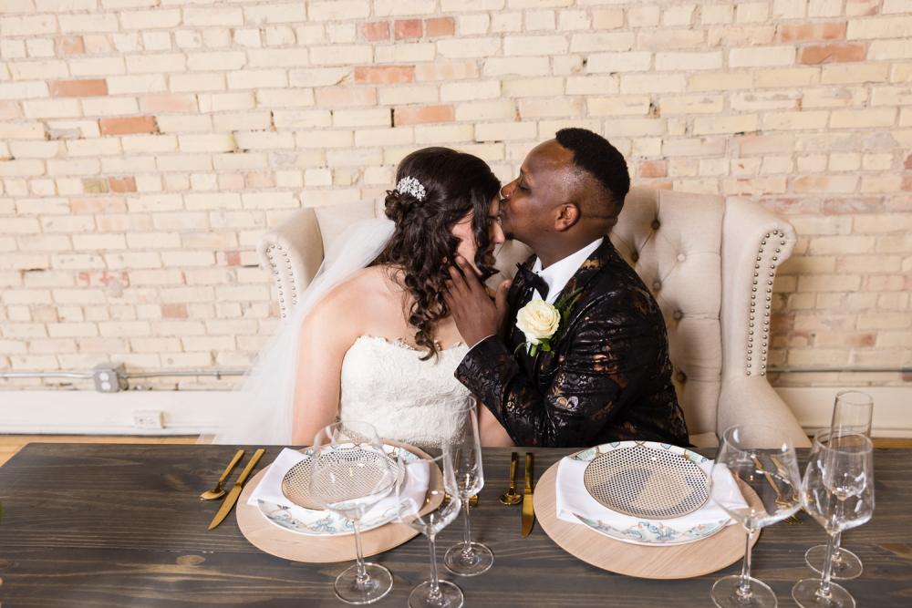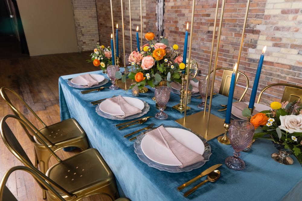 We certainly think this team nailed creating a shoot that was like no other. They combined the opposite ideas of modern wedding styles and traditional wedding themes so beautifully in this shoot. Part of what helped to achieve this was the venue. "We choose to work with The Harris Building because it is such an interesting venue that can achieve so many different looks for a wedding," Michael gushes. "It offers couples both a more intimate space but also a large, wide-open space depending on their needs."