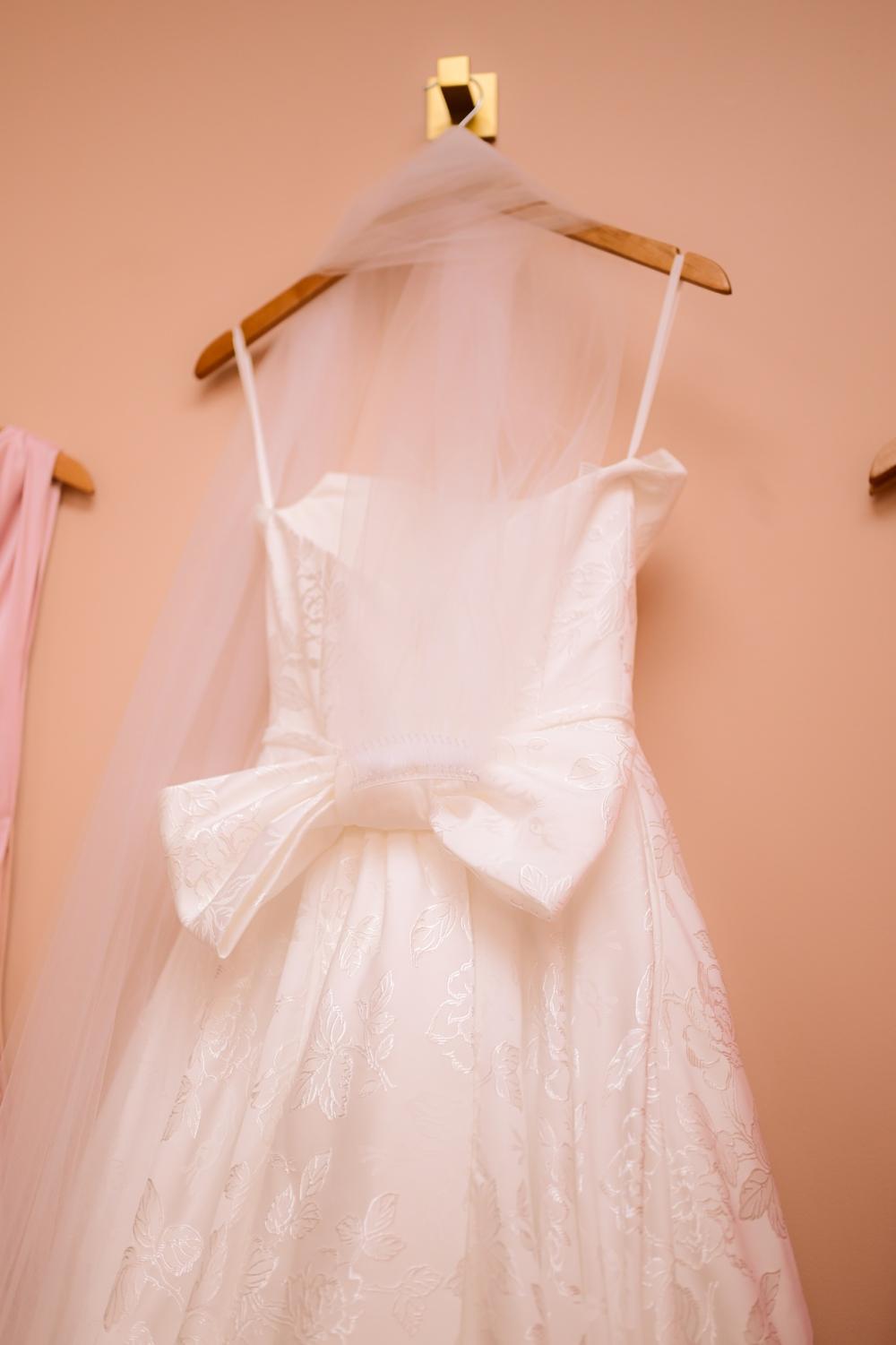 "I had a pretty clear idea of what I wanted: something strapless with either a jacquard or brocade fabric," Abbey explains regarding her dress choice. "I tried on several styles before finding the one that felt just right, and the moment I did, I knew it was 'the one' for me." We think Abbey looks absolutely stunning in the gown she picked! The unique material makes a classic silhouette stand out beautifully while remaining elegant. She is truly as glowing as every bride should be on their wedding day!