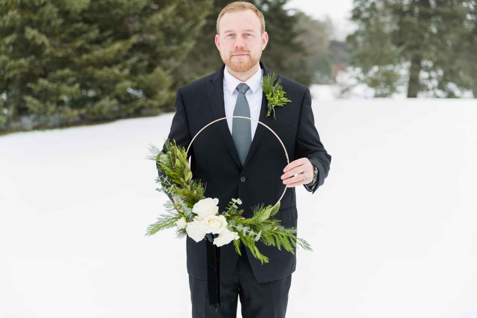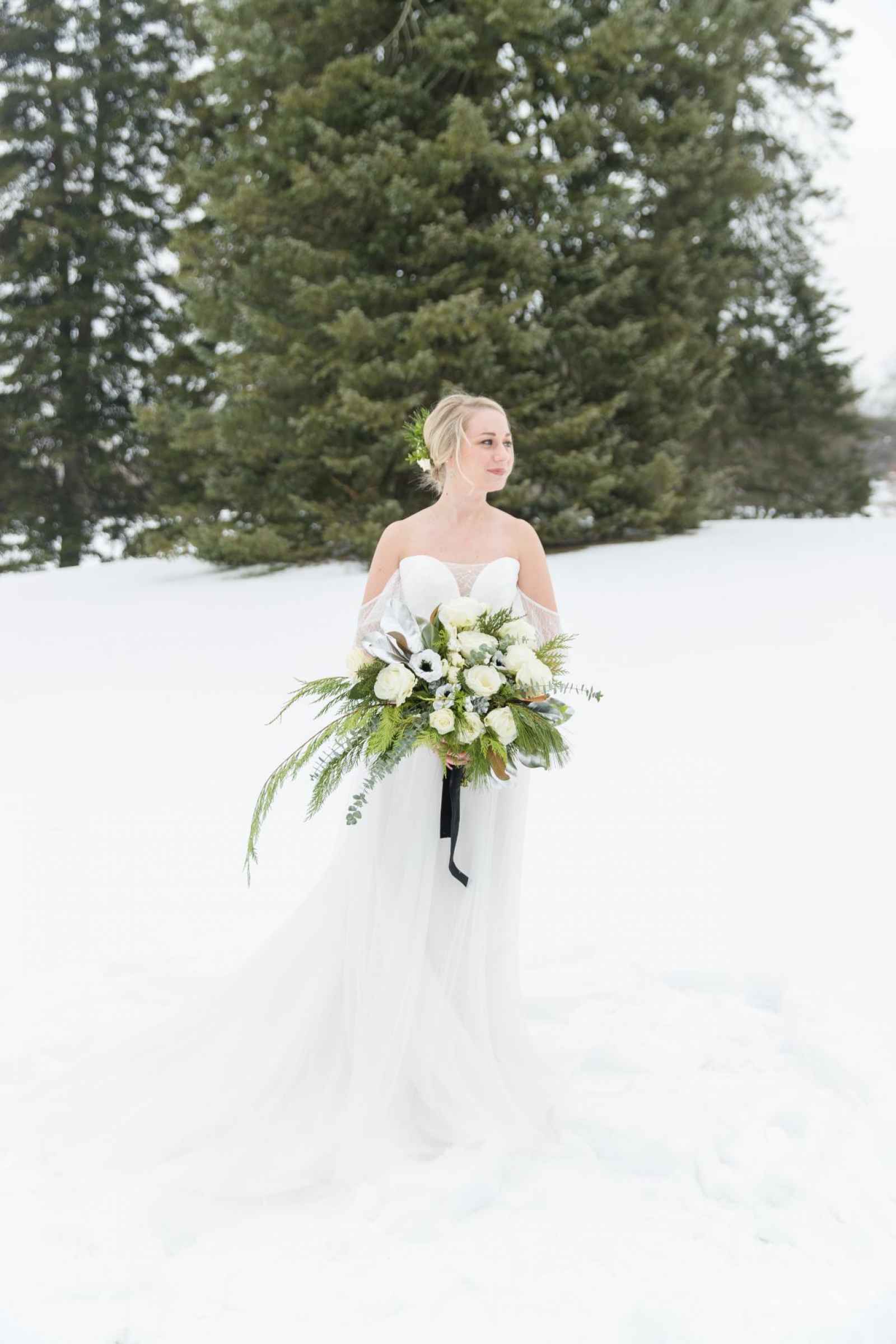 Stephanie says, “We wanted to have that quintessential, winter look so Leila Arboretum’s huge pine trees created that perfect backdrop for our concept with their gentle, rolling hills tucked away from the rest of Battle Creek.”