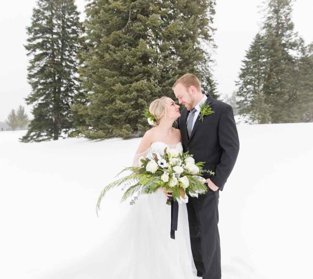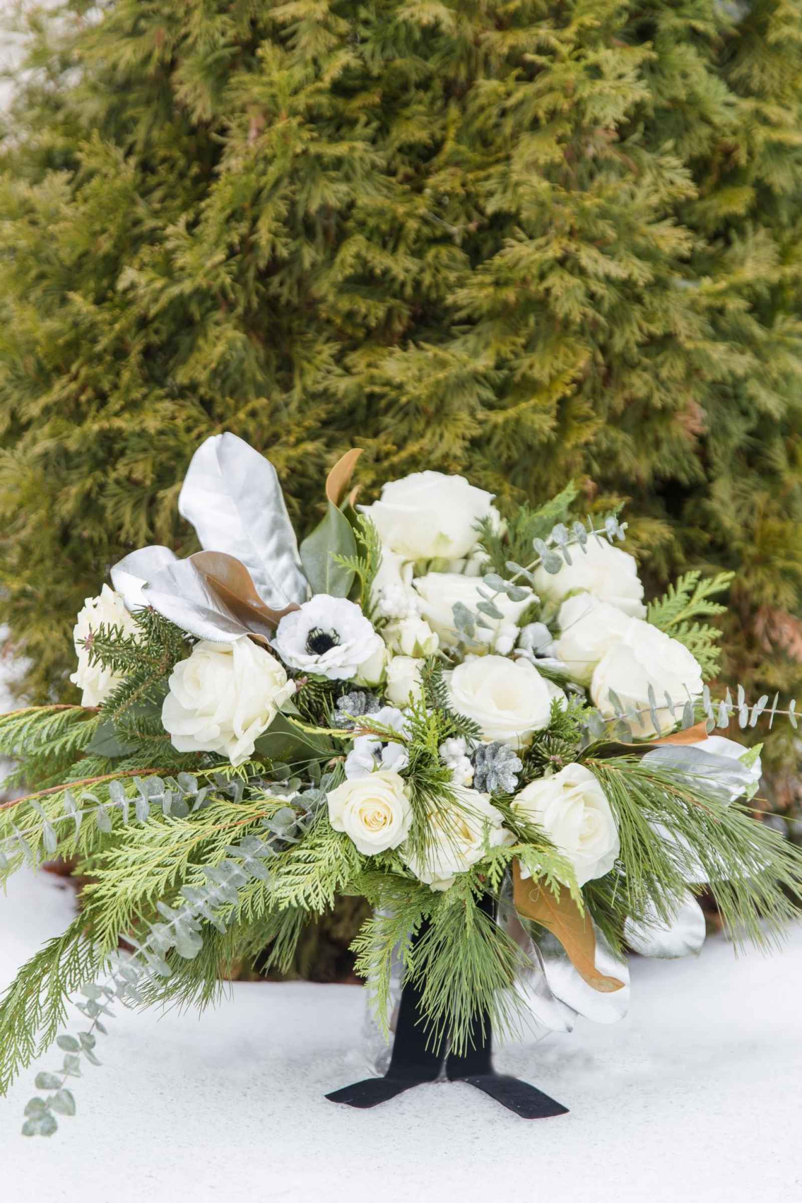 Stephanie says, “A black tie event can often get overlooked in the sea of color, but it still has so much simplistic, elegant, and classic beauty that it should be able to stand alone. When you add in these contrasting elements of being outdoors in the winter with a black tie style, the combinations are endless!”