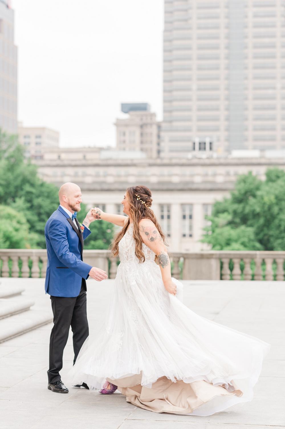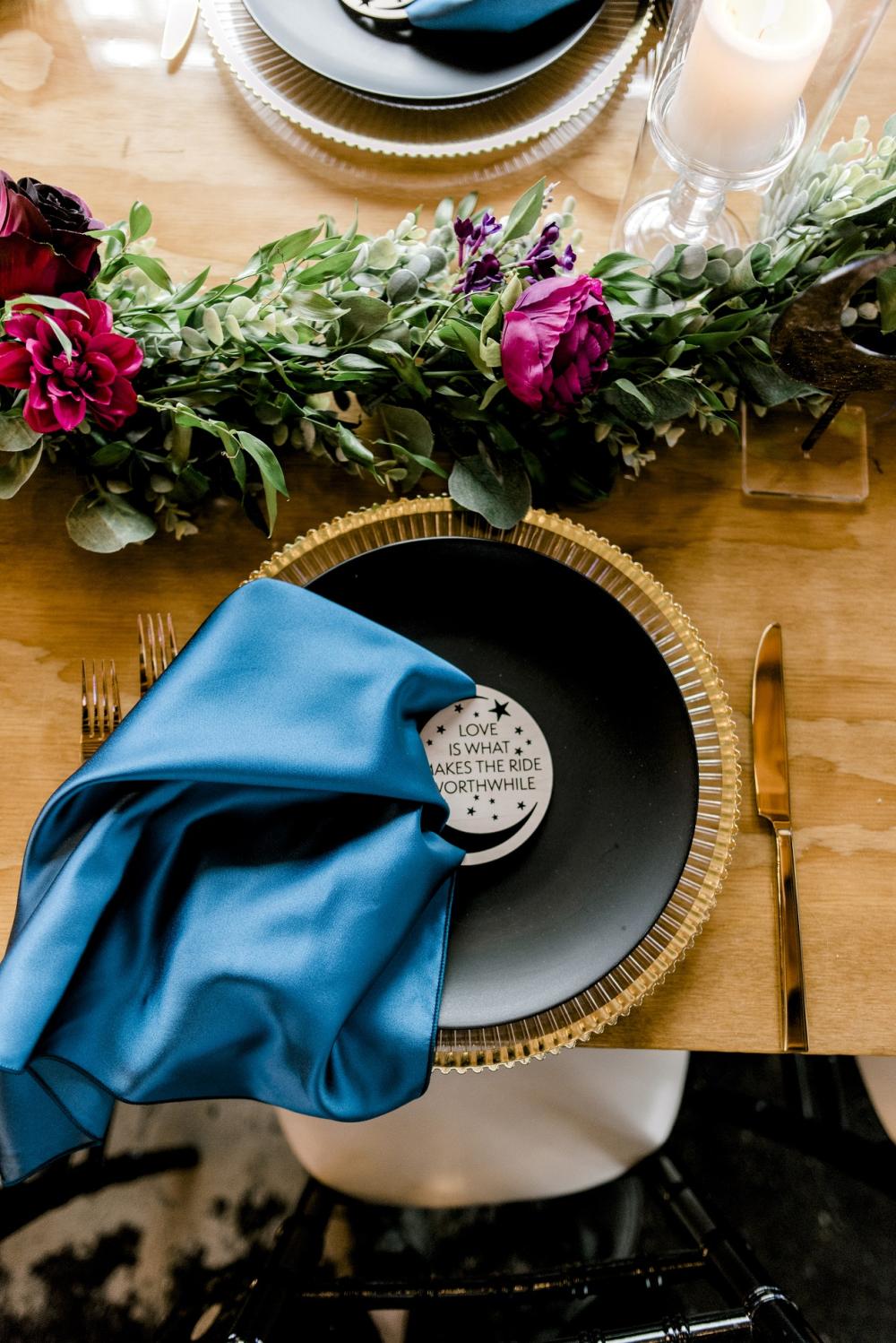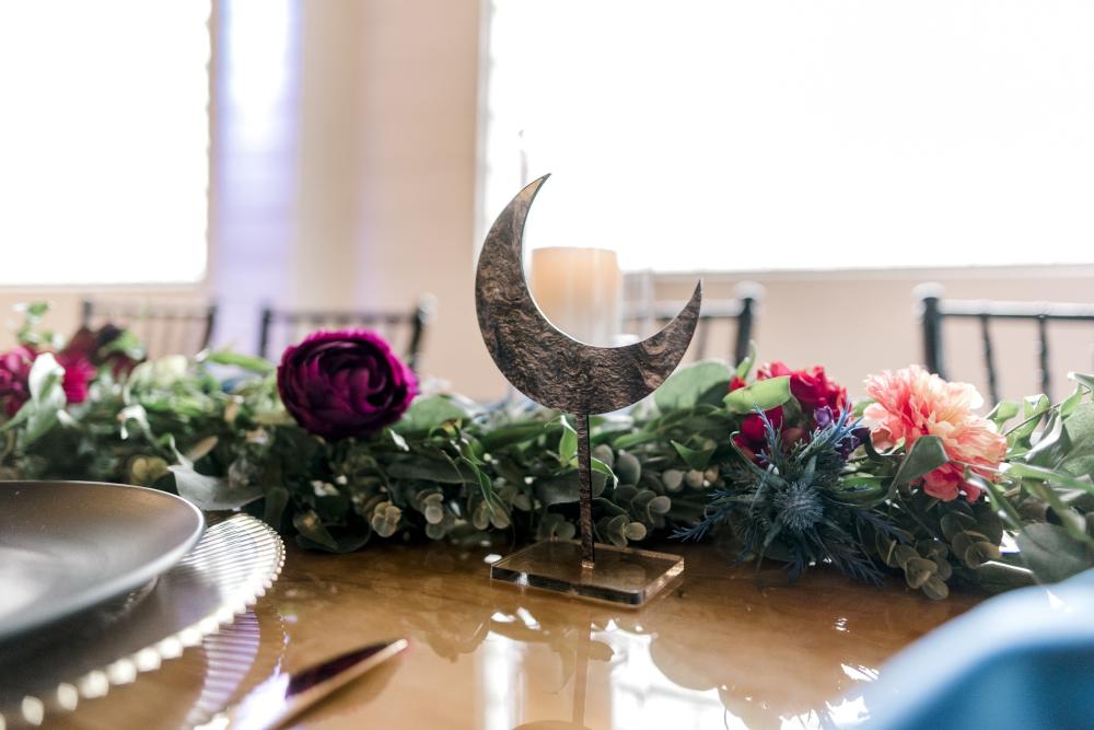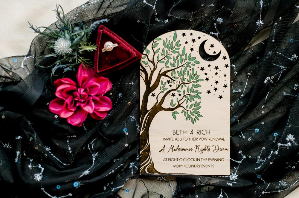 Weddings are something that Beth and Rich are very familiar with as they work in several areas in the wedding industry. That being said, Beth knew immediately what the vision for their vow renewal would be thanks to her planning business, Ivory by Design! Beth shares, "When Rich proposed many moons ago, he chose a garden on the canal downtown Indianapolis. It was evening and there were lights twinkling everywhere. The theme came to life to capture that moment." From there, they built a 'Midsummer Night's Dream meets celestial' theme to capture both the garden and the twinkling lights.