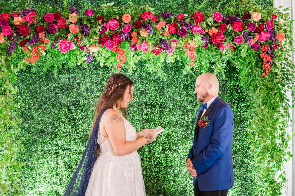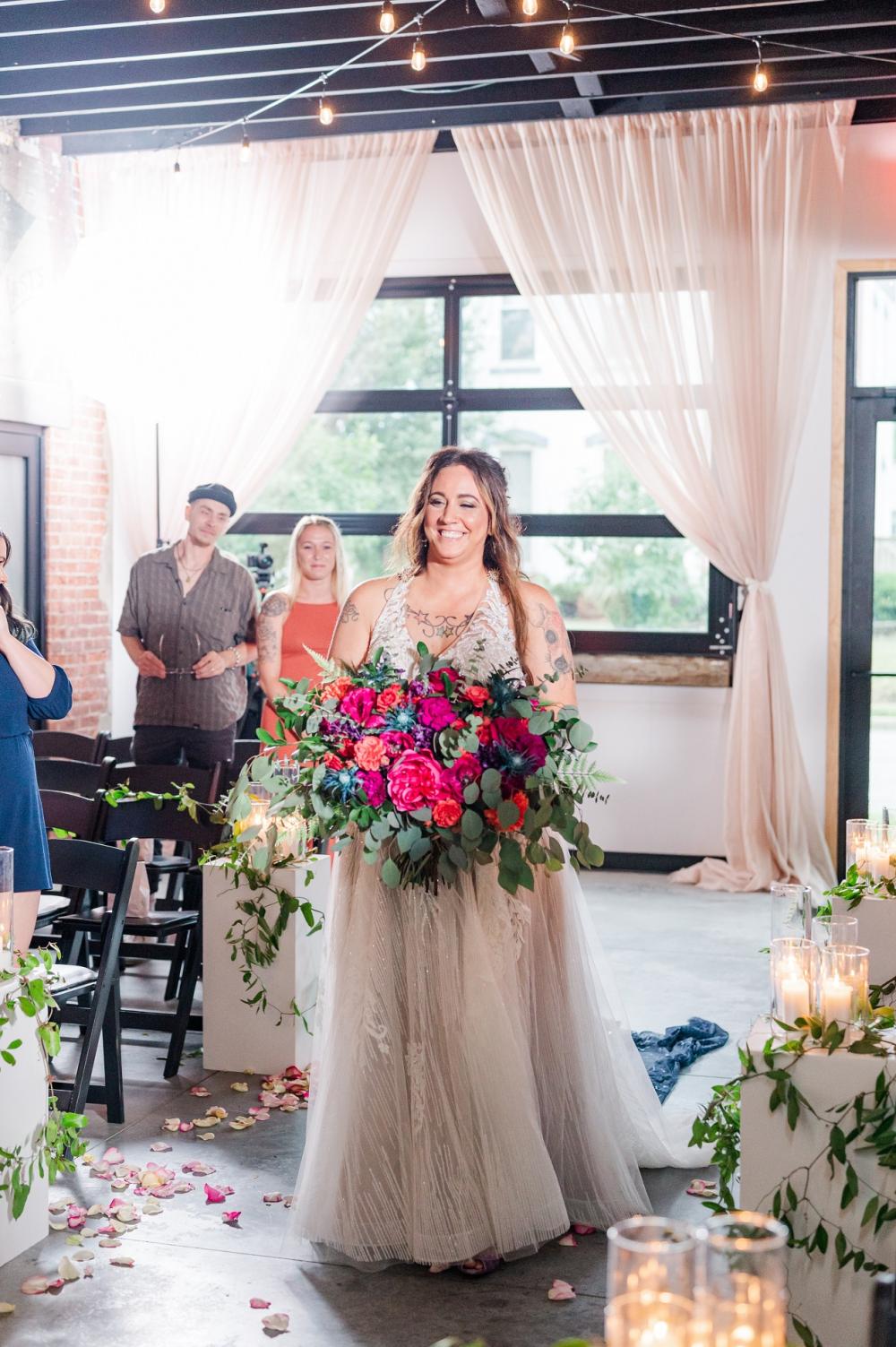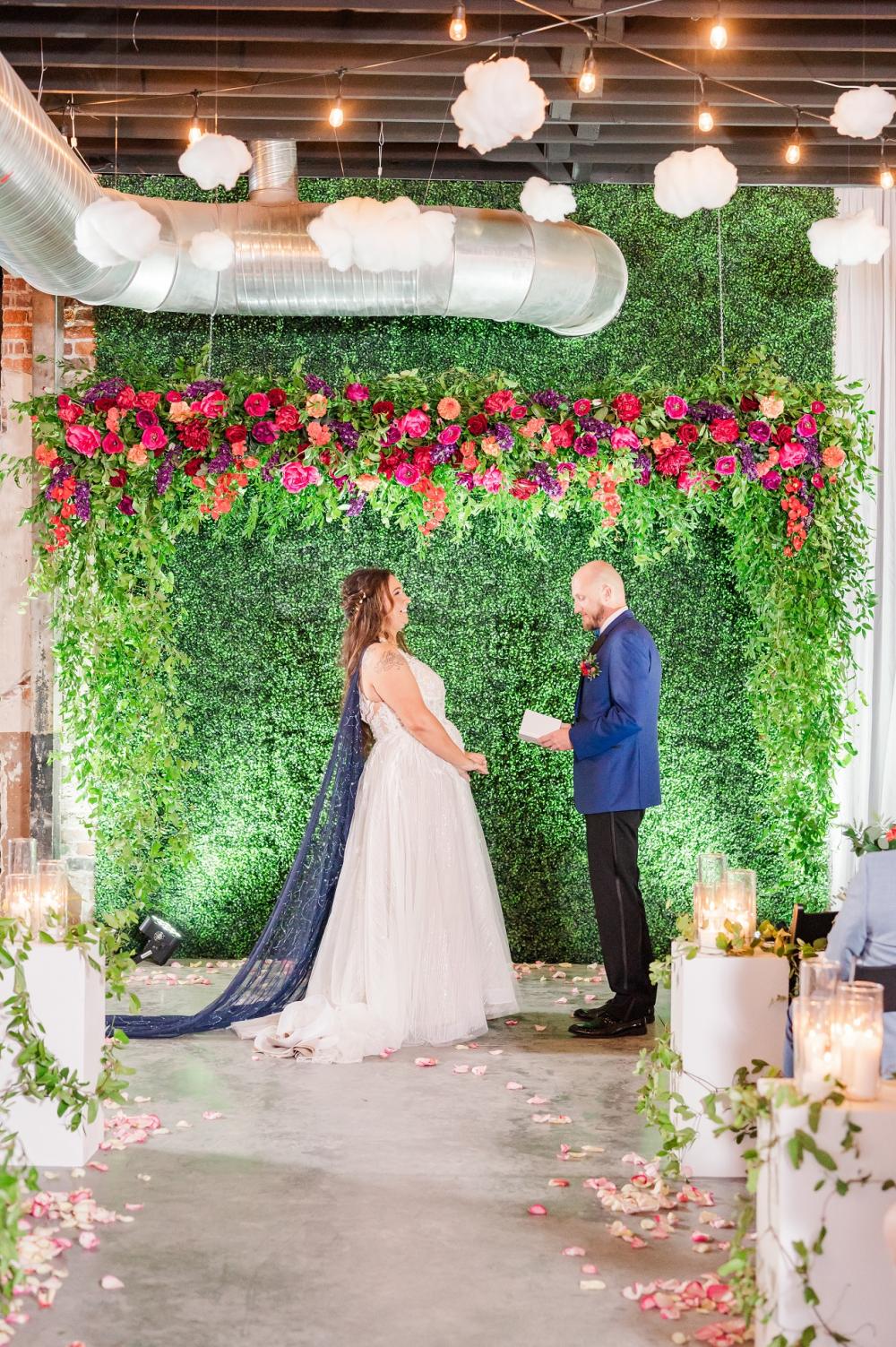 Aside from their planning and floral business, Beth and Rich have also built a venue that was the perfect place to host the vow renewal ceremony of their dreams. The Ivory Foundry has a wonderful combination of elegant garden spaces that juxtapose beautifully with its more industrial elements. "The way the venue glows, the pure warmth and joy you feel inside was something we knew we wanted to share with our friends and family," Beth gushes. "The multiple buildings worked so perfectly for us, it was a simple and easy choice for us."