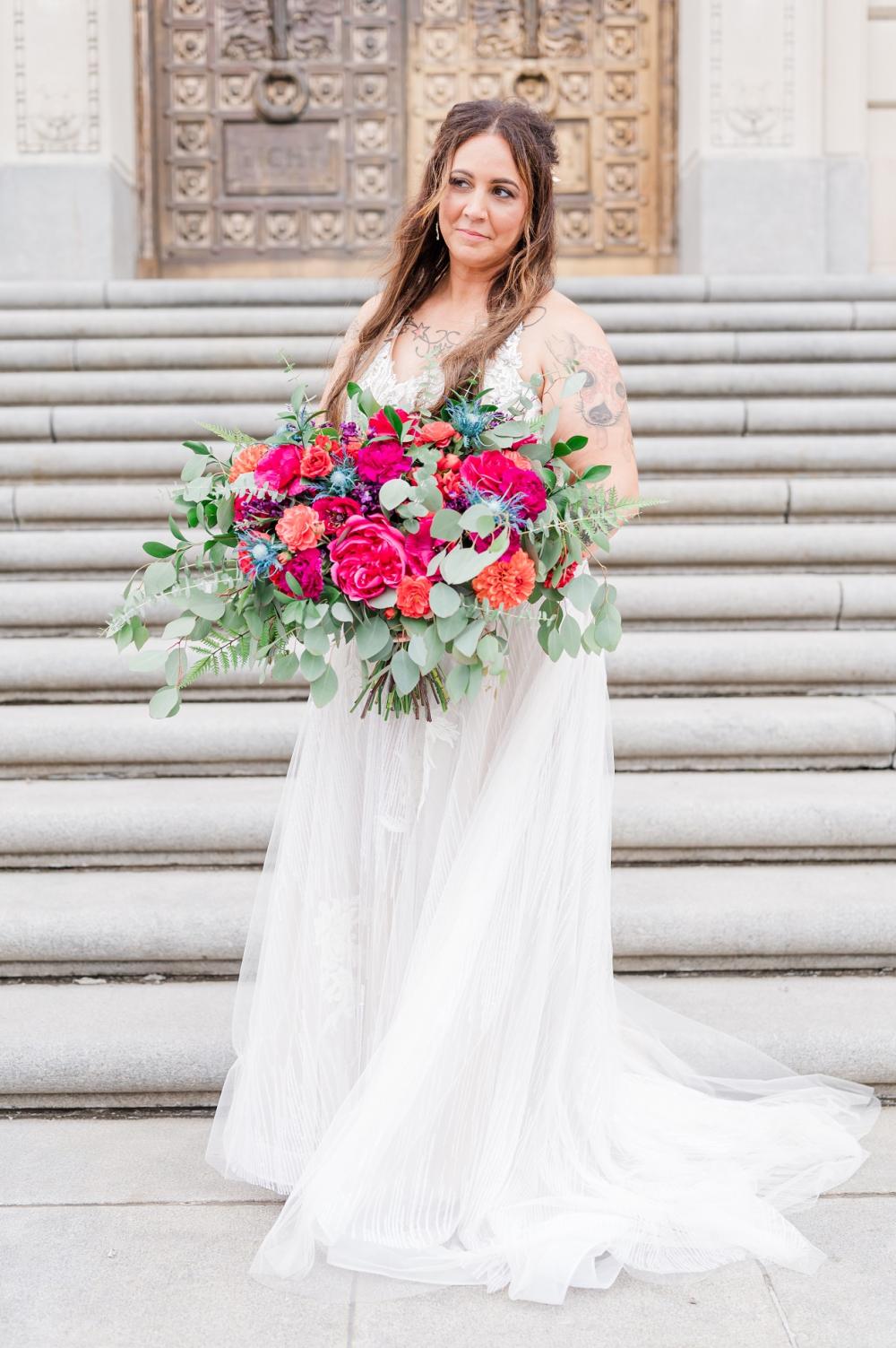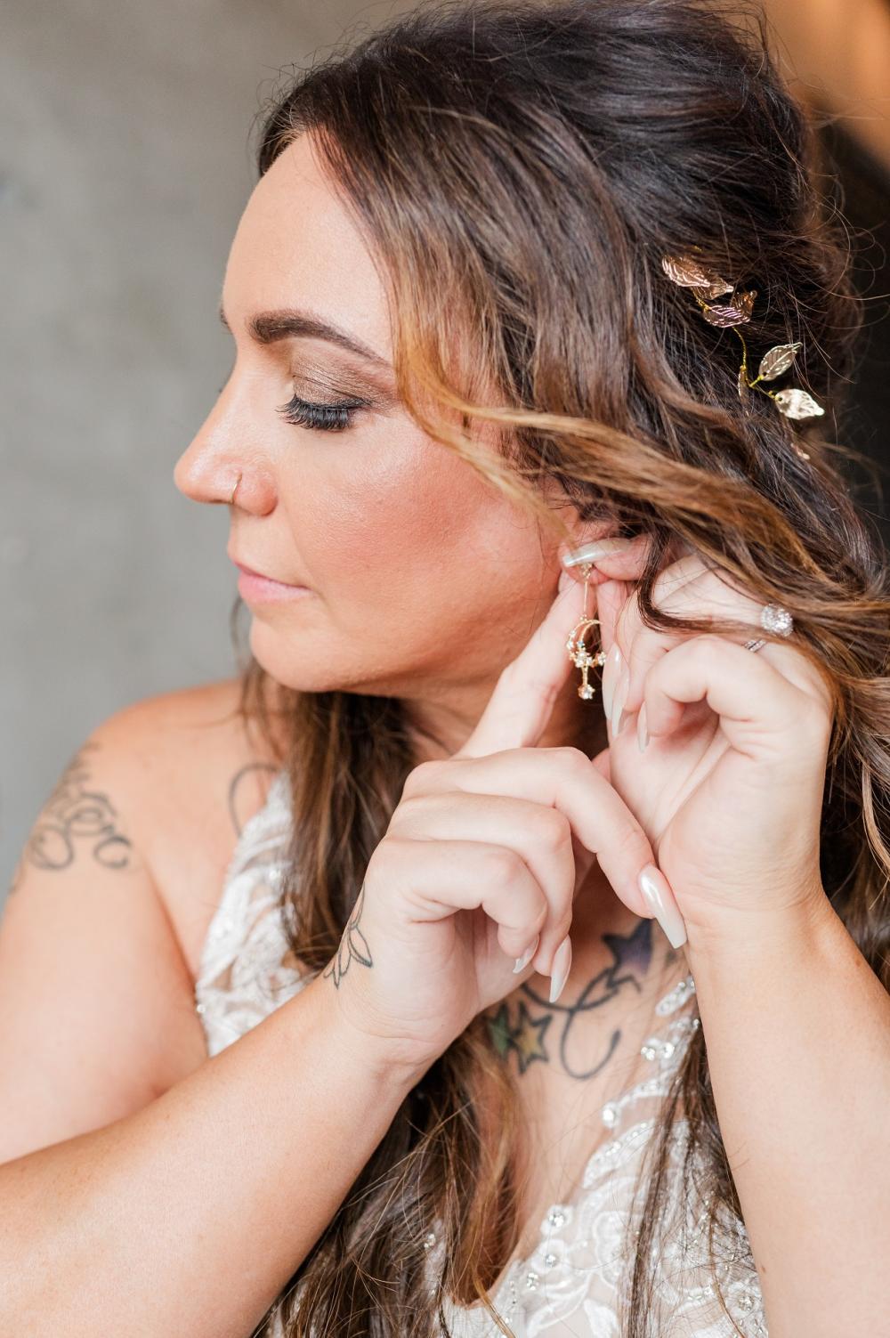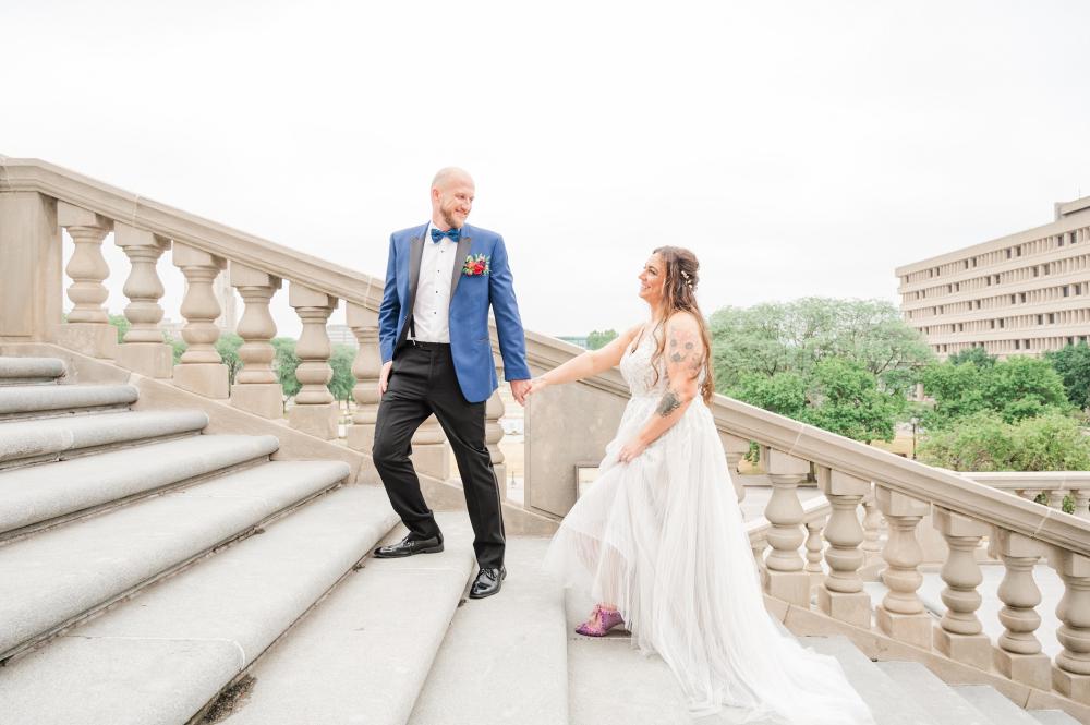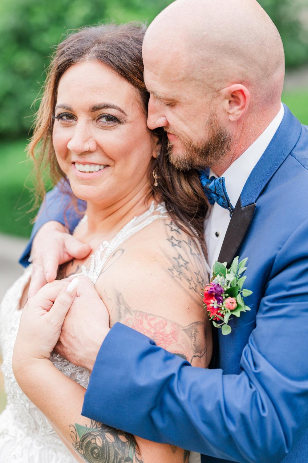 We have to talk about that beautiful dress that Beth is wearing! Despite over scheduling and missing an appointment at a local bridal salon, Beth was able to find her ideal dress. "I saw this gown in the window and it just spoke to me. I was head over heels for the underlayment of sequins and the slight blue tint to the dress. It was so soft, flowing and elegant and showed off my figure perfectly," Beth raves. We could not agree more! And the light, natural makeup highlights Beth's beauty even more.