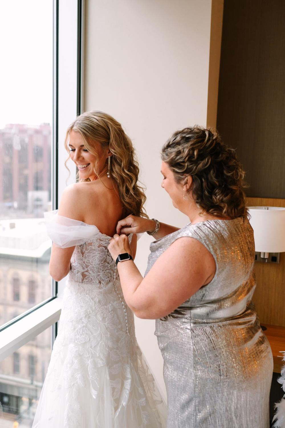 After connecting on Hinge, Tori and Colin clicked and began dating. After a few years, Colin decided to propose! Colin picked Tori's favorite winery—Modales in Fennville—to propose with a big display that included marquee letters and pillows! Of course, Tori was overjoyed to say 'yes'. Last year, they even modeled in our 2023 Spring/Summer Grand Rapids Digital Issue Cover Shoot, which was a great opportunity to see what goes into planning a wedding!