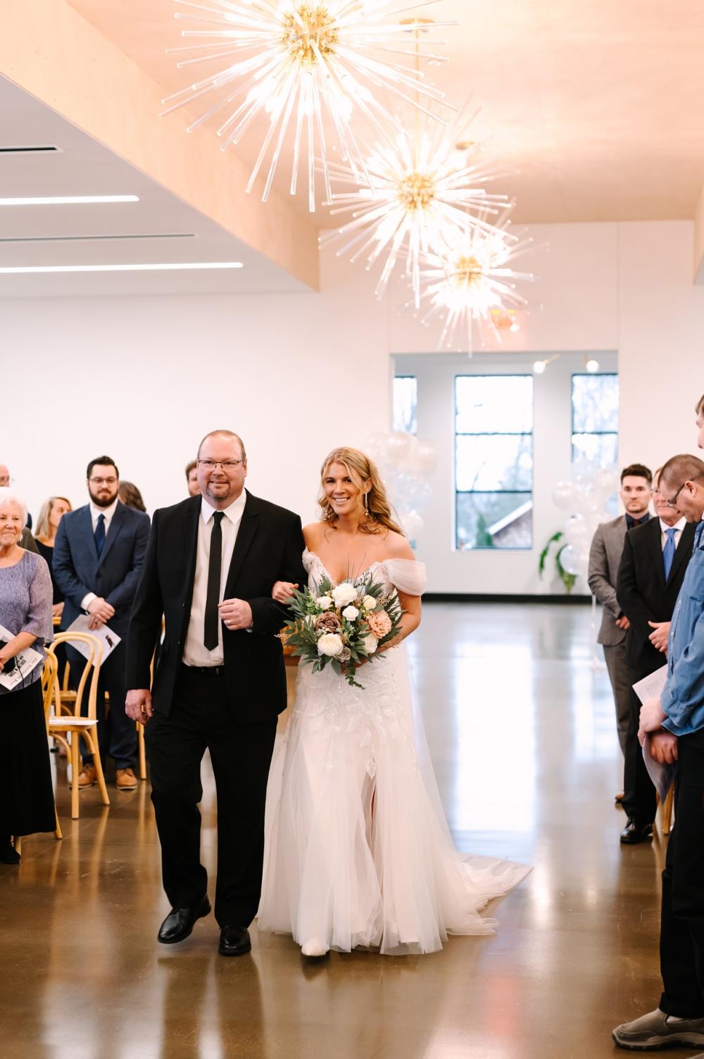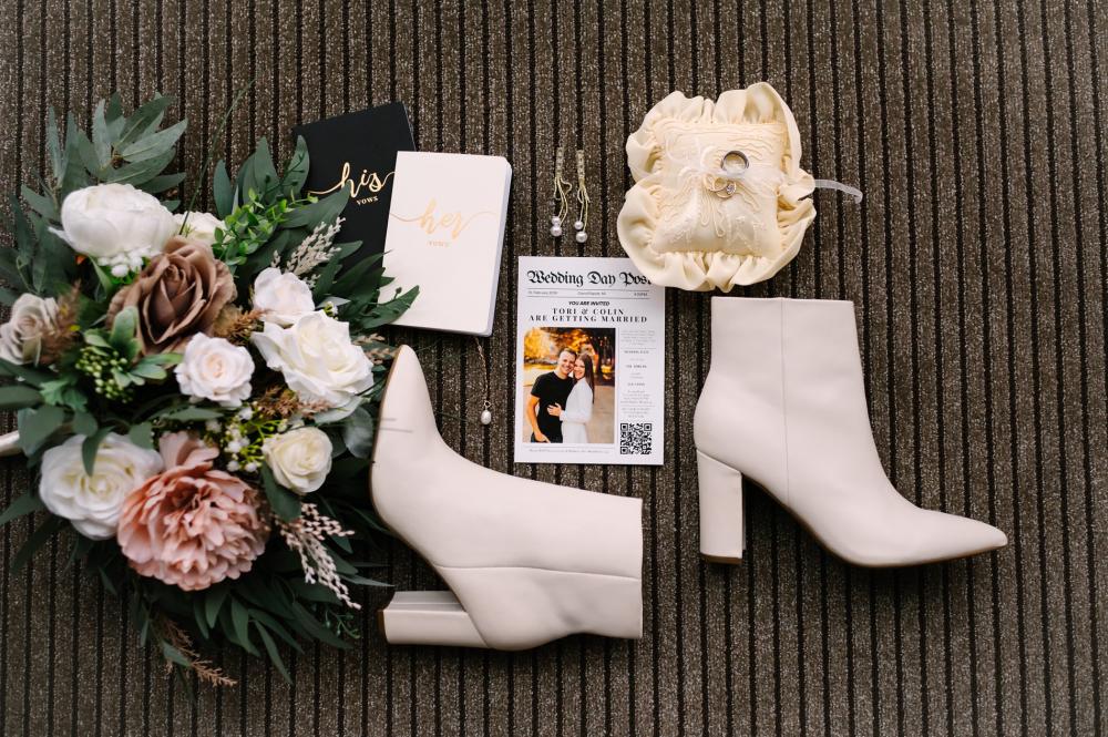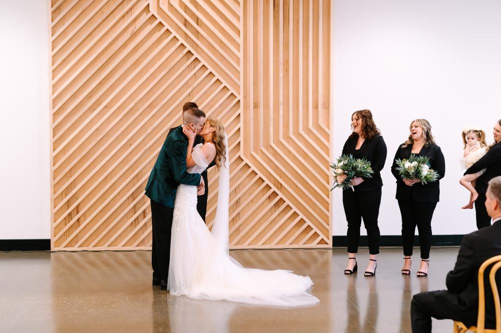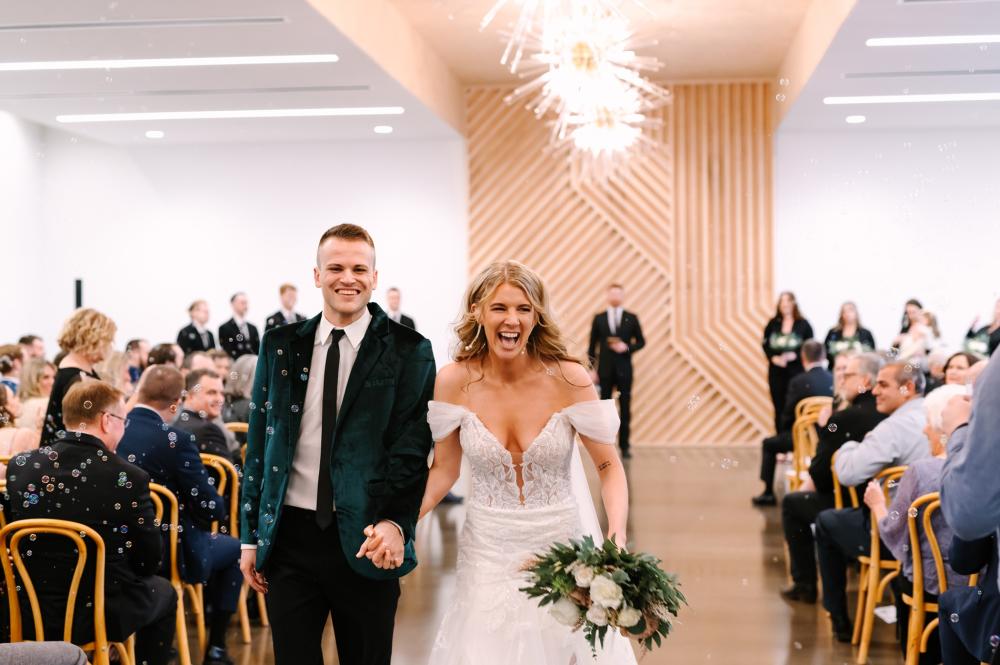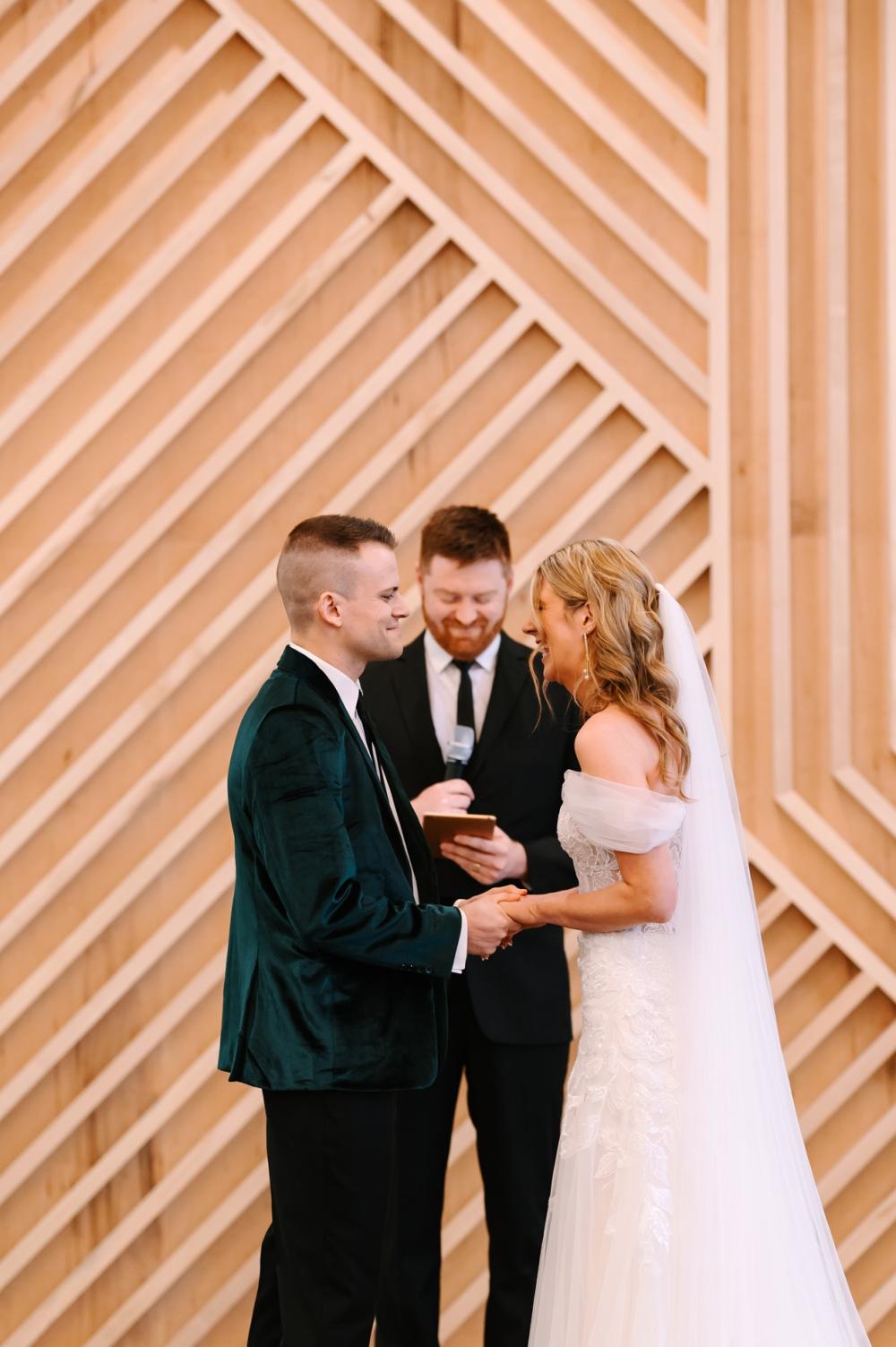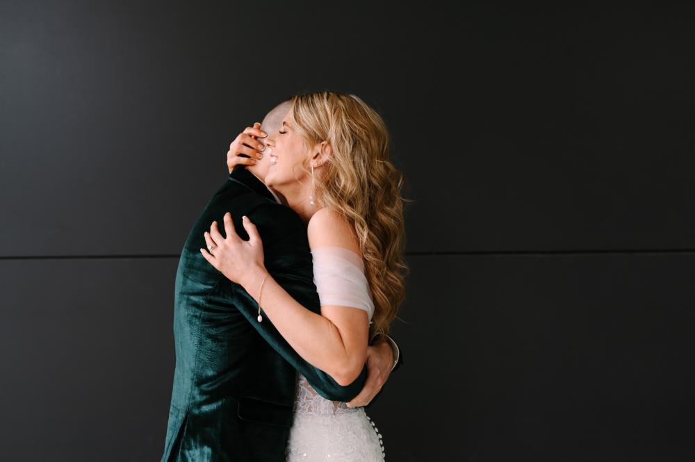 When it came to picking the theme for their wedding, Tori had a clear vision even before she met Colin. She loves both modern and classic, so Tori wanted a way to combine them both for her big day. The color scheme was also something that came easily for Tori because she knew she wanted her groom to wear a velvet hunter green jacket—and Colin agreed. Once she had that color, she added champagne/ivory and black for a classic look to their wedding. They also knew they wanted a winter wedding to be able to spend plenty of time with their loved ones and not have to fight as much to book vendors.