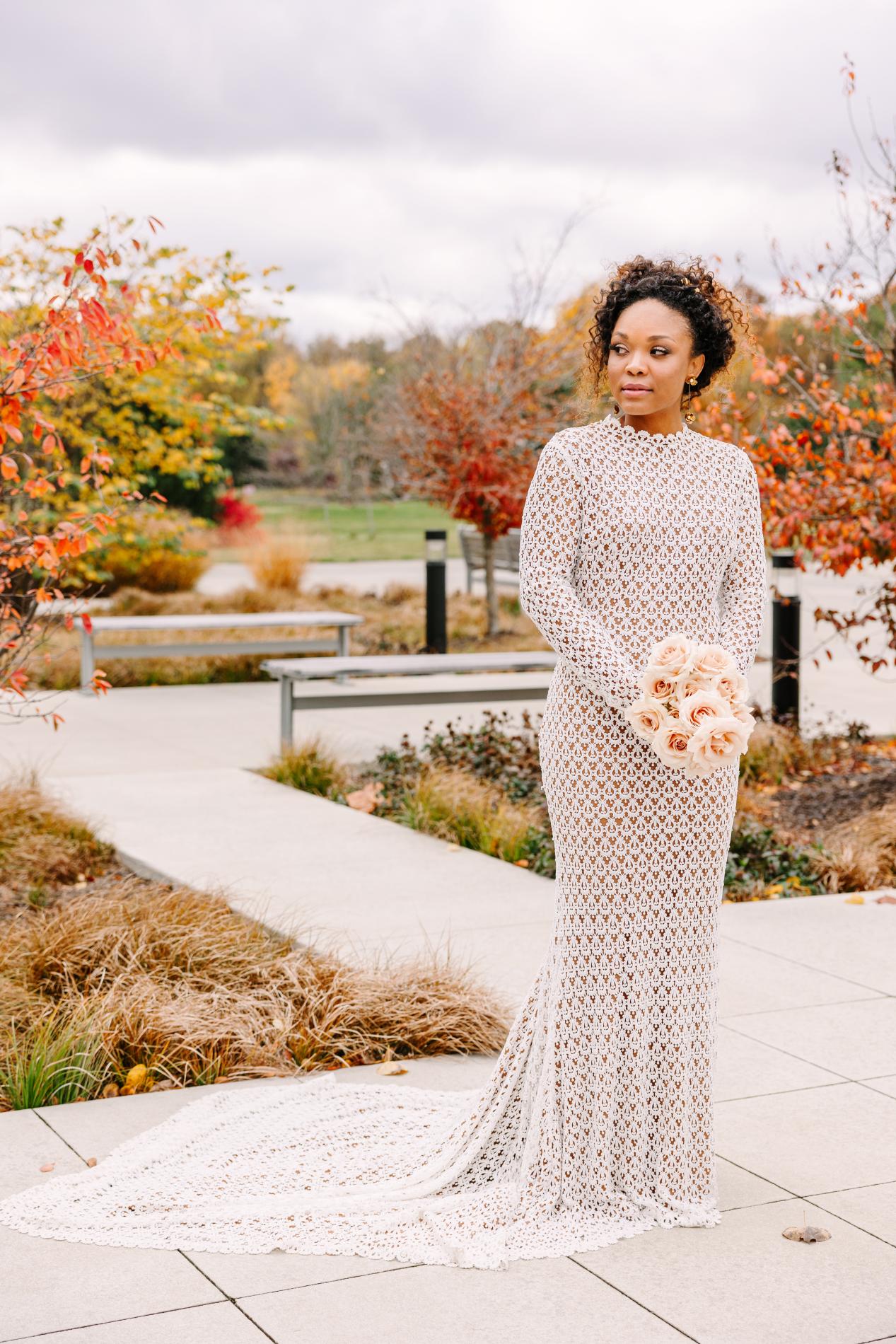 This Daughters of Simone 'Hollis' gown from The Frock Bridal House screams opulence from head to toe! Just like the winning dress, this gown is all about the small details. We love that behind the design is a nude color that almost gives a sheer affect to the dress. The high neckline and long sleeves make this dress feel like it is meant for the most elegant ceremony!