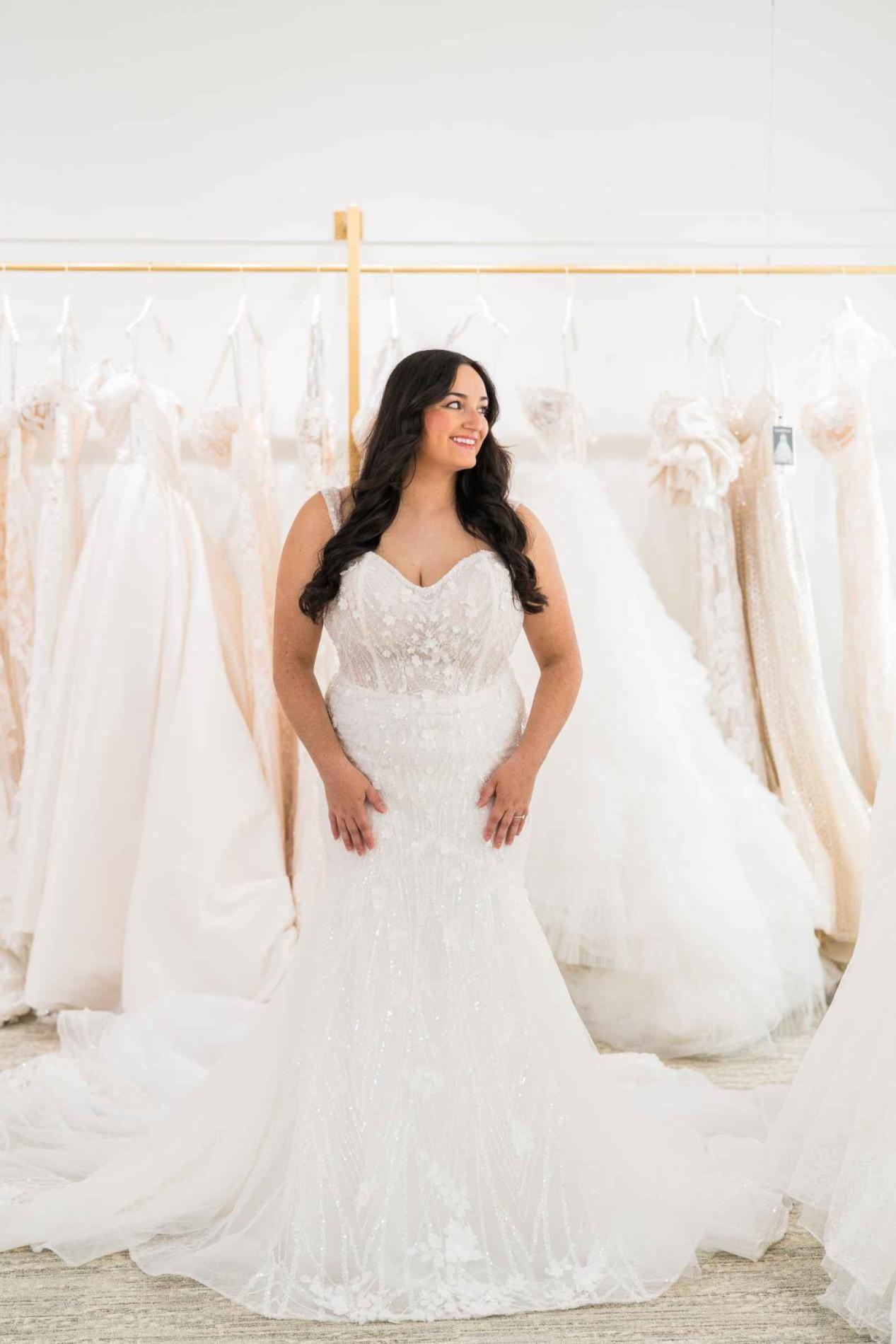 Are you a bride with an affinity for sparkles? This shimmering dress from Becker's Bridal is so elegant and delicate, with its floral adornments!