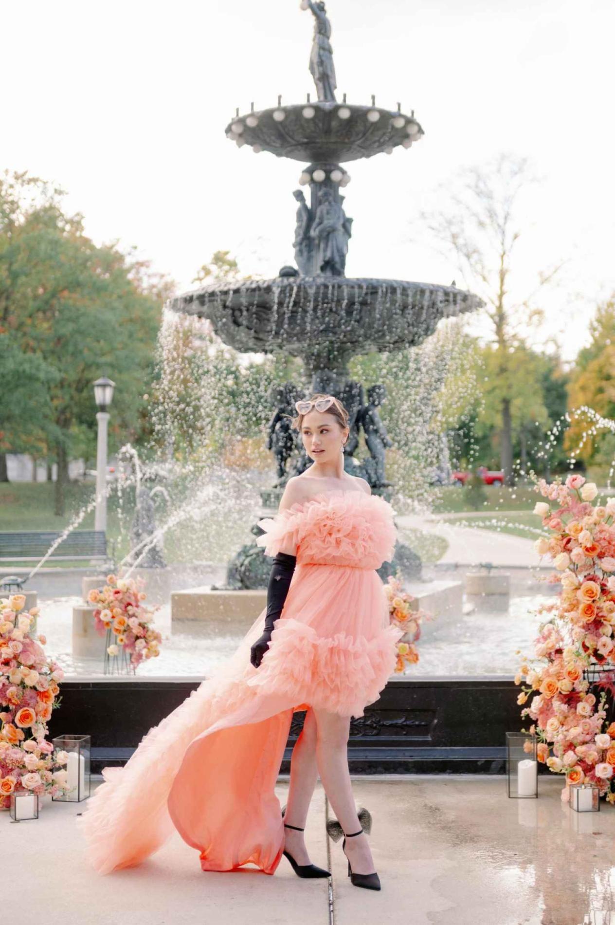 One of our non-traditional entries into the tournament was this strapless peach dress from Guramisi. The ruffles and color are so flirty and fun!