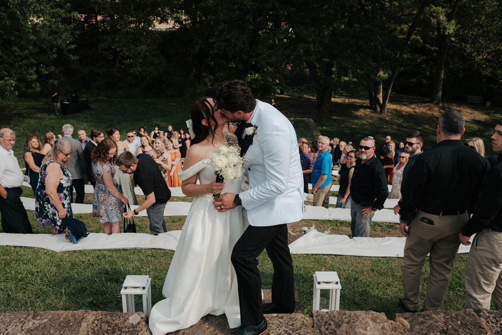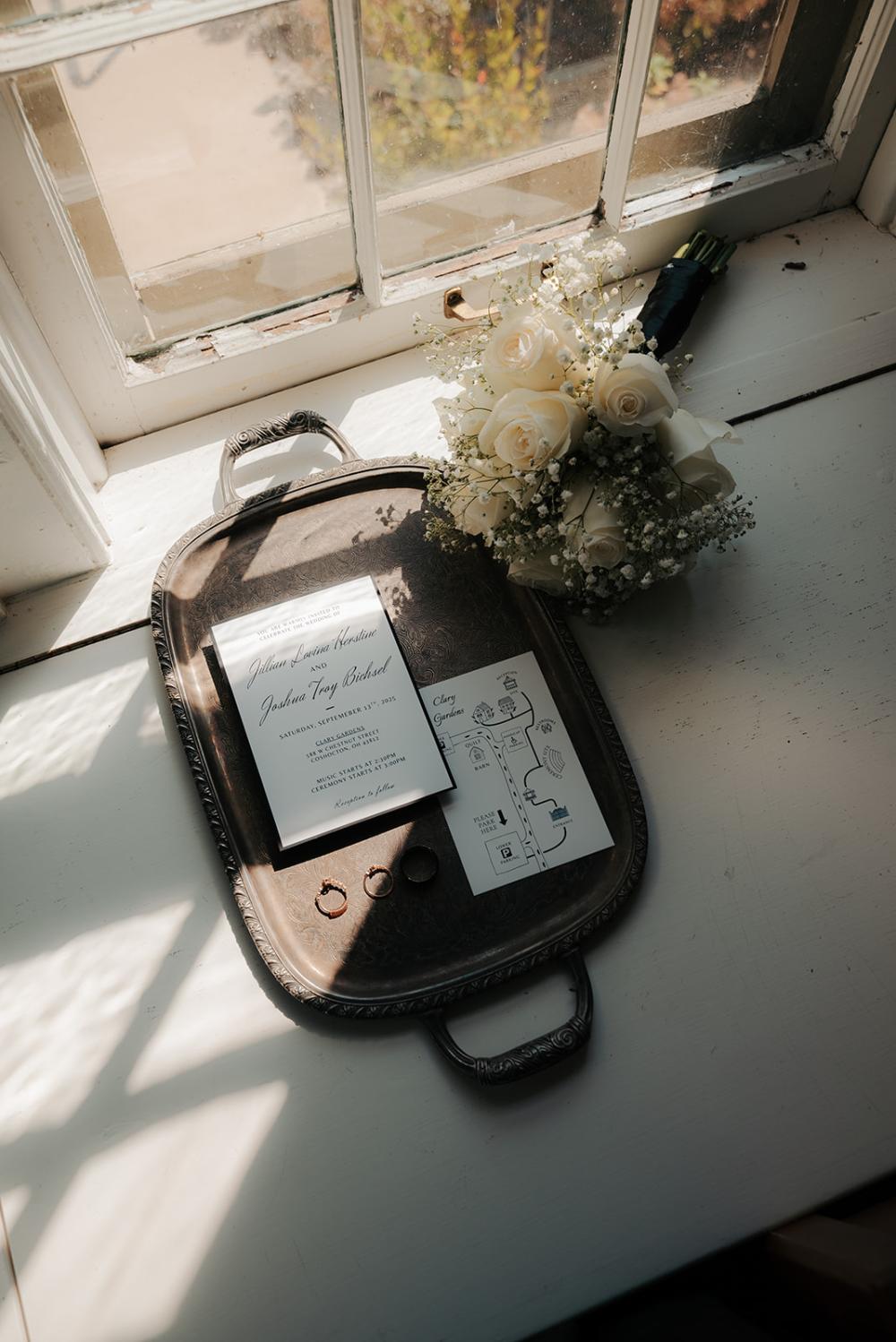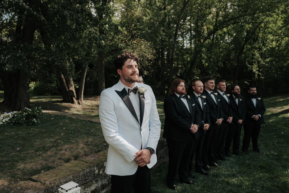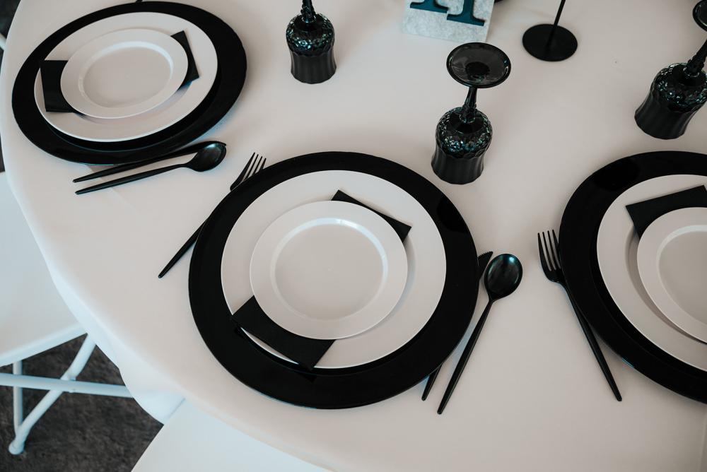 trying to find creative ways to make everything beautiful without overspending," Jillian shares. They wanted something that was timeless yet modern with an elegant air. Jillian and Josh settled on a black and white color scheme to let the natural greenery have the spotlight!