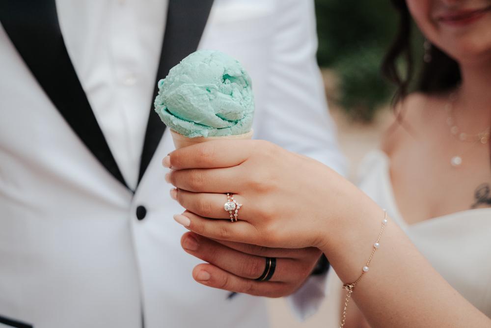 "So much of our wedding felt special because it was intentionally built around who we are, what we love and the people who helped shape us," Jillian explains. They actually chose to get married at a non-profit to pour back into the community and reflect their generous hearts. They D.I.Y.'d many parts of their day and Jillian's dad built several of their décor items. Instead of favors, they decided to write each of their guests a personal note to let them know how much spending the day with them meant. They also shared Josh's love of ice cream and Jillian's dad's love of pizza with all their guests, making the day relaxed and fun!