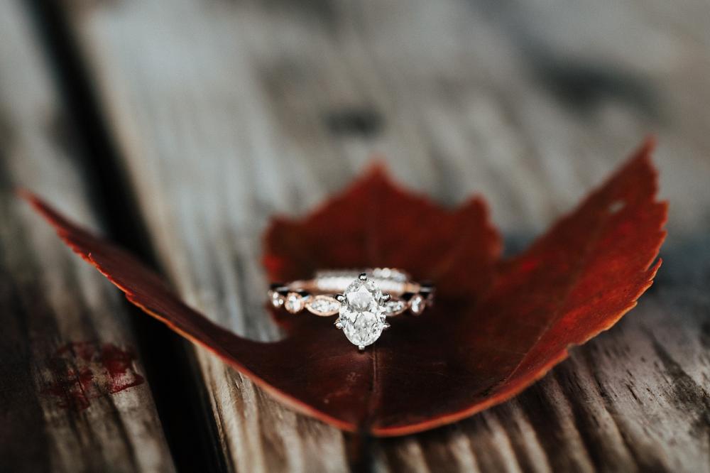 Lauren gave Nick some inspiration for the ring through Pinterest pins she had saved for the future. Nick ended up getting a rose gold band with an oval cut diamond (which is exactly what Lauren wanted!) and also added in some personal touches. "Nick chose some round cut diamonds to embellish the band. It is so stunning!" Lauren gushes. "The fact that he put the thought and effort into creating something of his own makes it so special."
