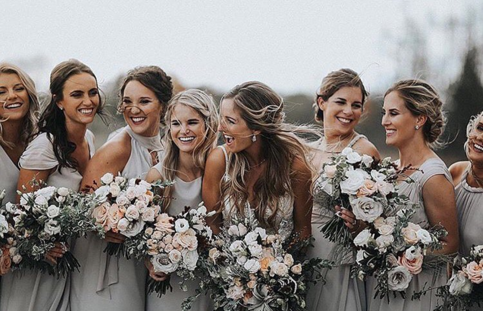 Our editors say: It's not hard to make this group of 'maids look pretty, but adding in those florals sure doesn't hurt! #petalpower