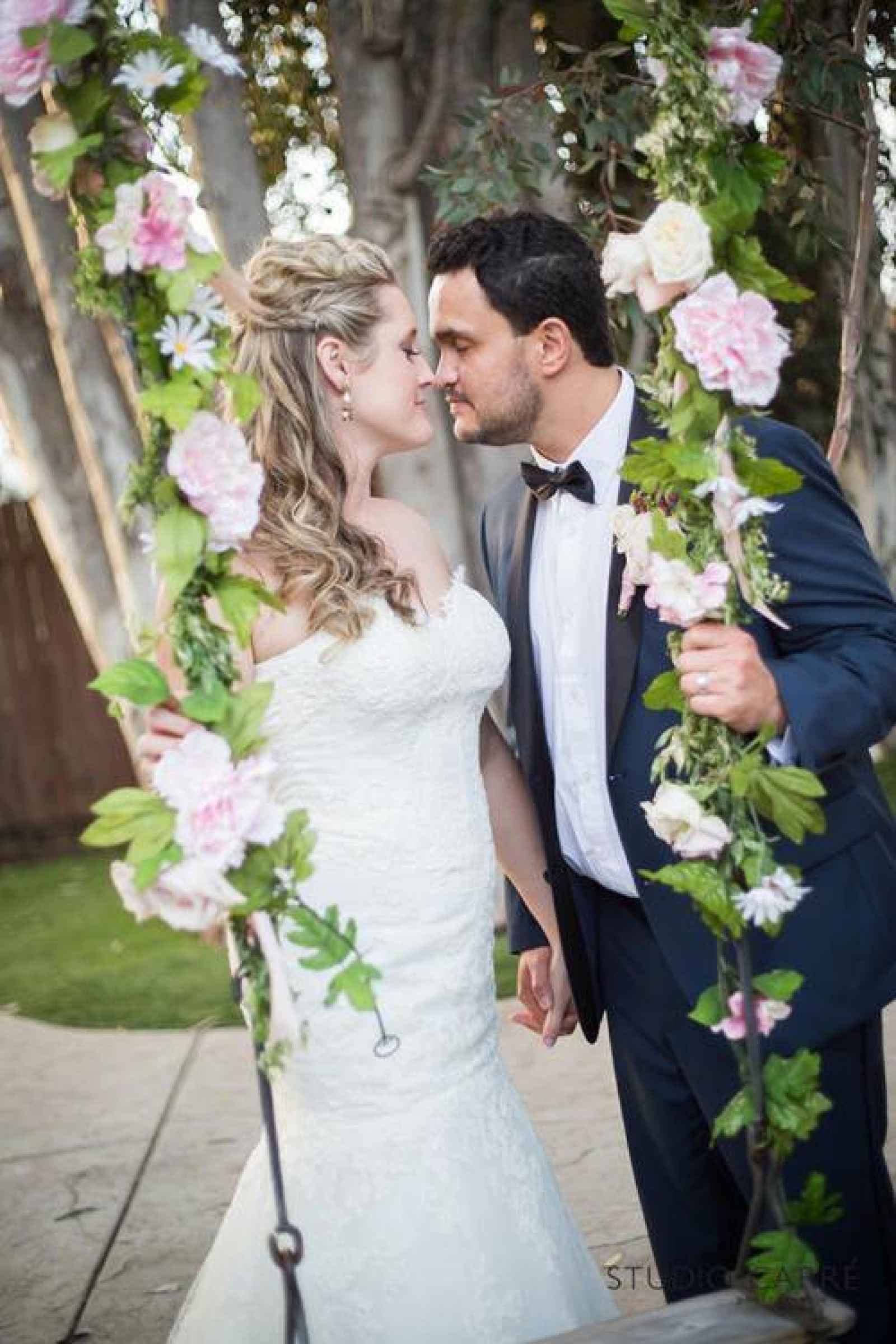 Our editors say: So floral swings are now a thing, you guys. Also a thing? Leaving your hair down for the wedding. #ringsandswings