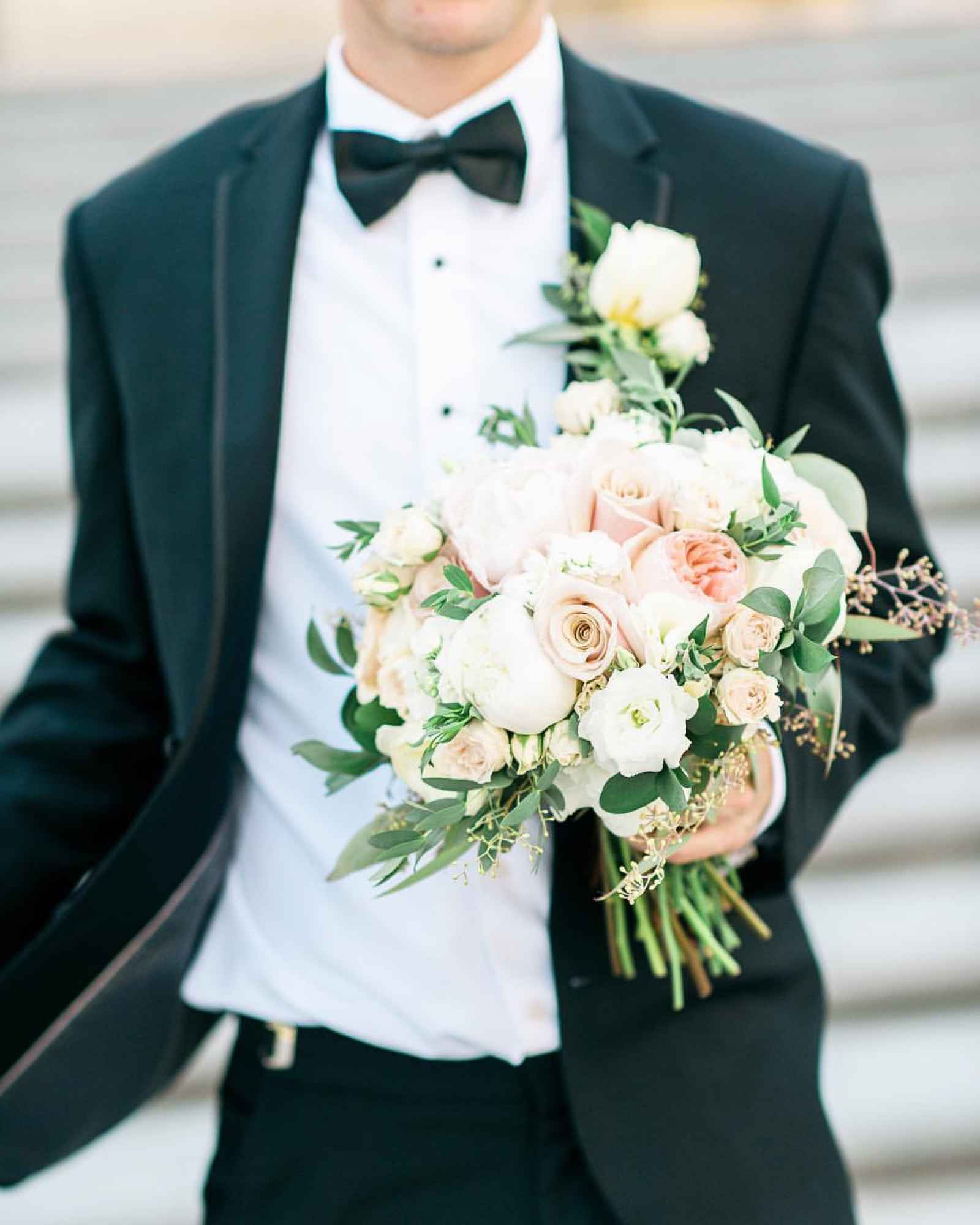 Our editors say: Something about a groom holding his bride's bouquet always gets us. Not to mention that killer style! #groomswelove