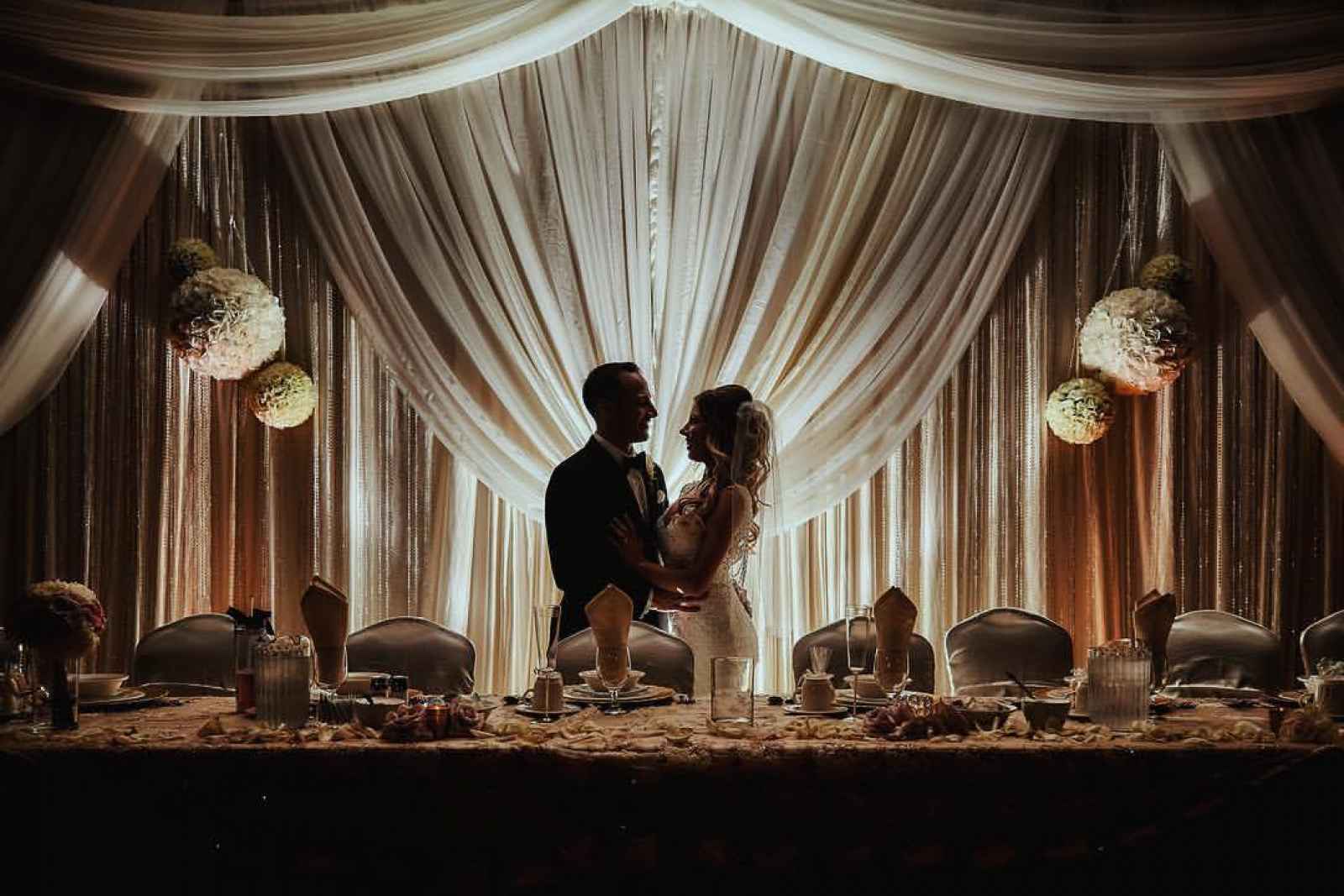 Florals, Linens, Backdrop. Drapery & Uplighting: Twigs & Branches Floral, follow them @tbfloral