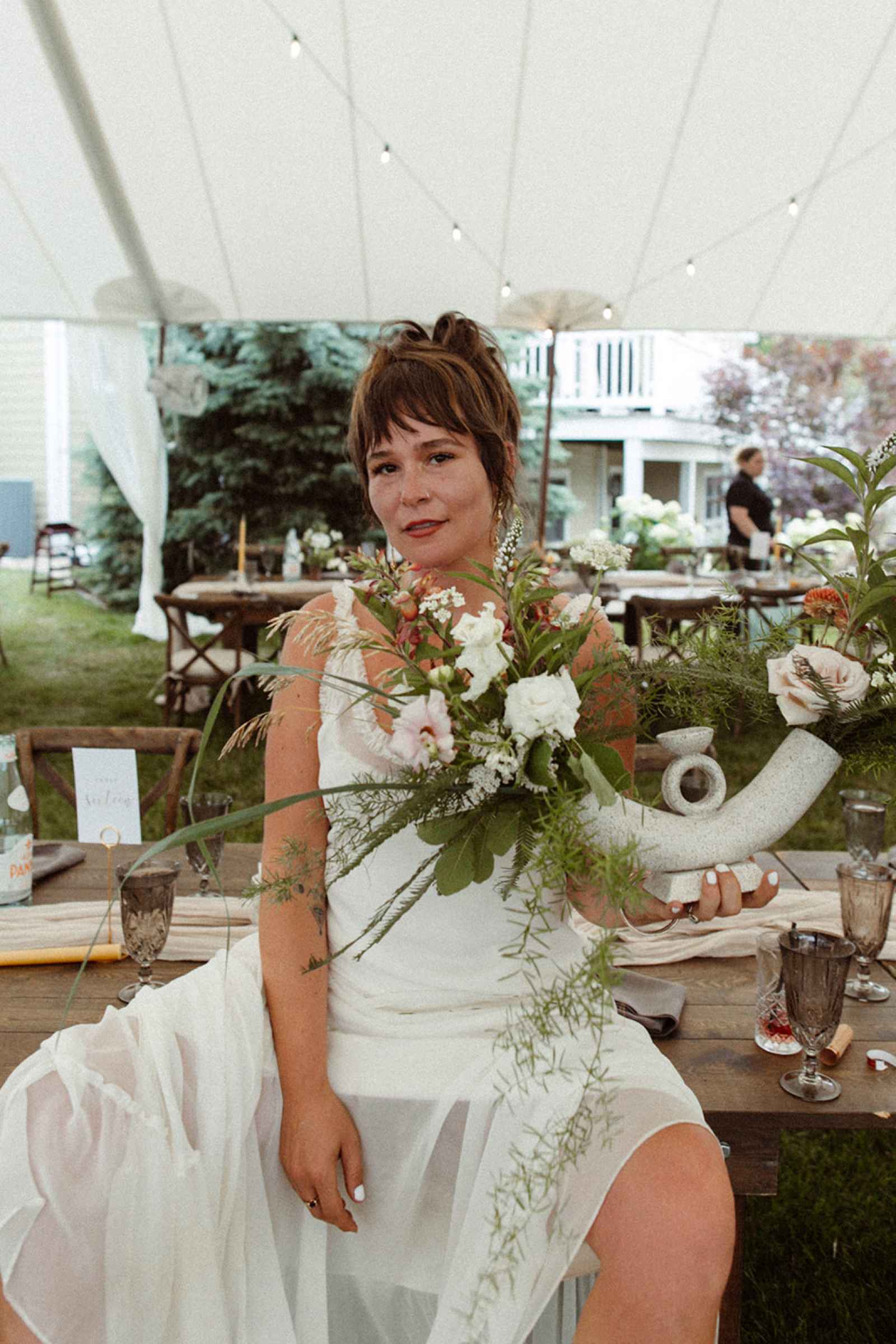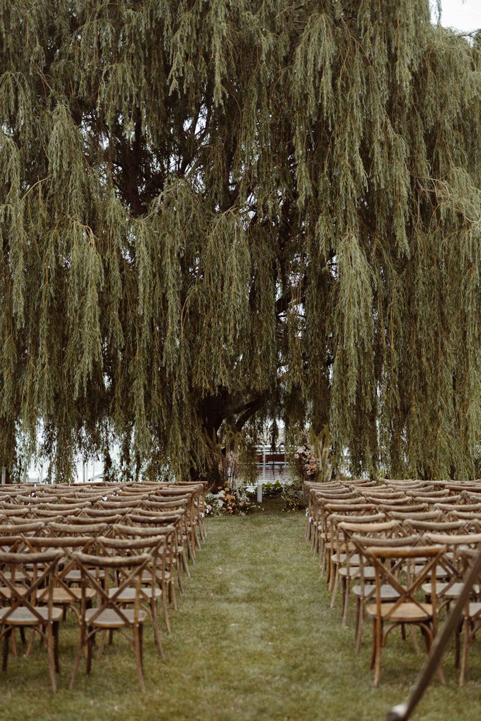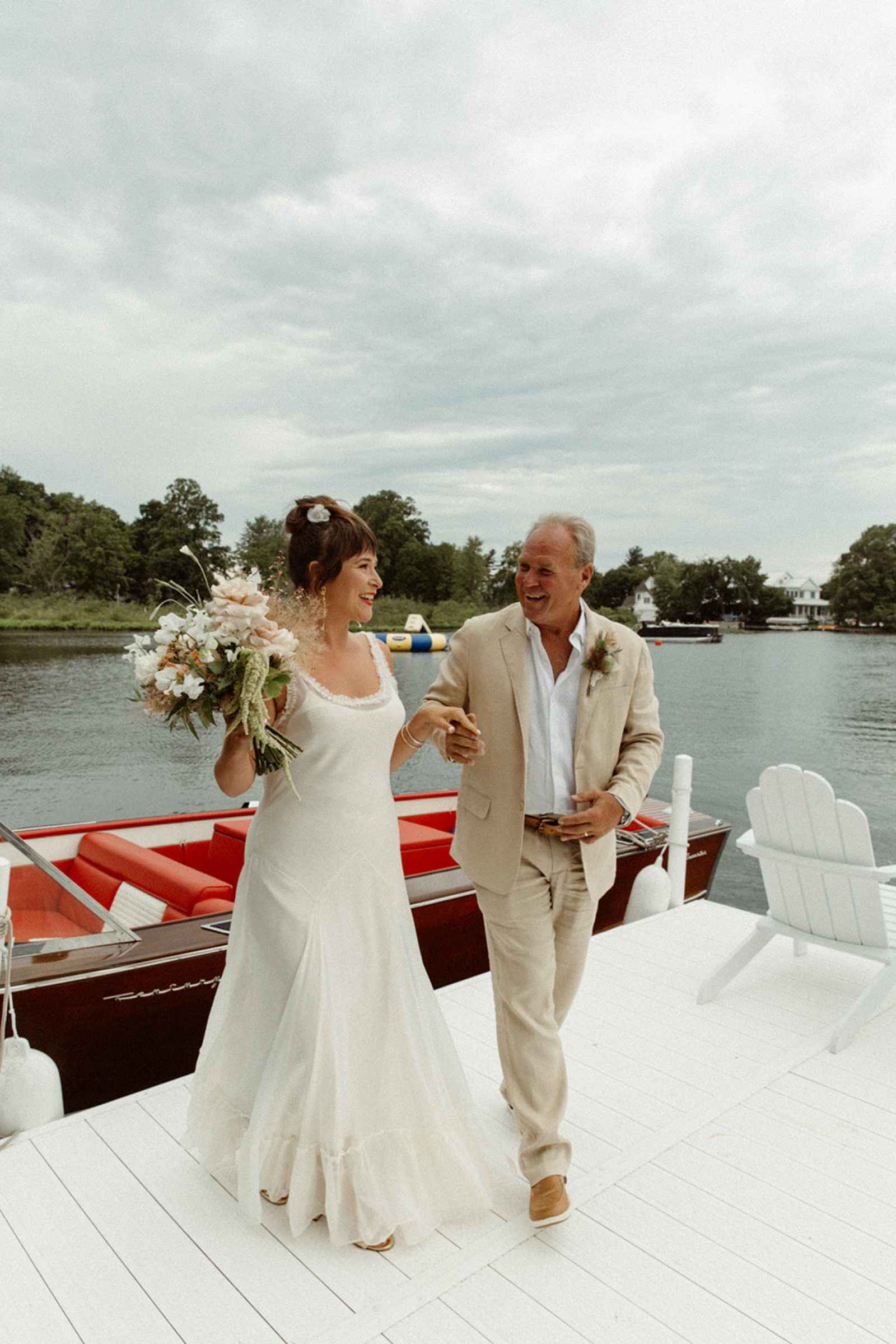 As soon as Whitney was engaged to Brian, she knew two things. One, she wanted to honor where she came from by getting married on the lake she grew up on, even though she now lives in California. Two, using her family’s rental business—AAYS Event Rentals—and their connections from many years in the wedding industry was the best way to find her vendors as well as allow Whitney a fun opportunity to work with her dad and sister. Brian and Whitney used the lake as inspiration to make a Roman-inspired summer camp wedding. Finding a middle ground between Whitney’s love for bold color and Brian’s liking of simpler hues, they decided to go with earth tones with plenty of airy elements. We love the way this truly looks like a woodland Roman feast, especially with the handmade décor items made by Whitney herself that give life to this simplistic yet elegant theme!