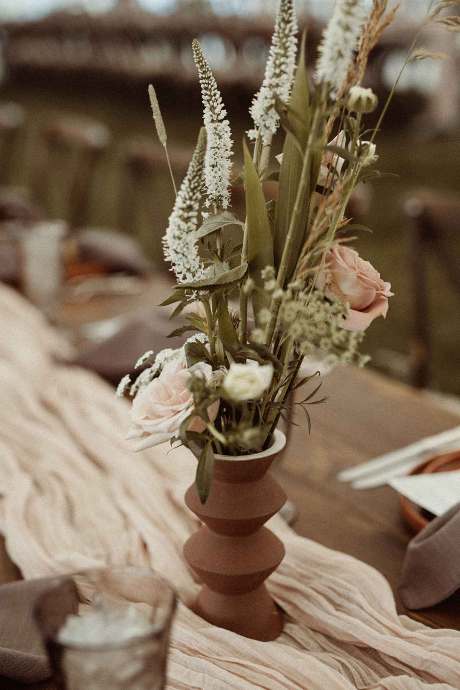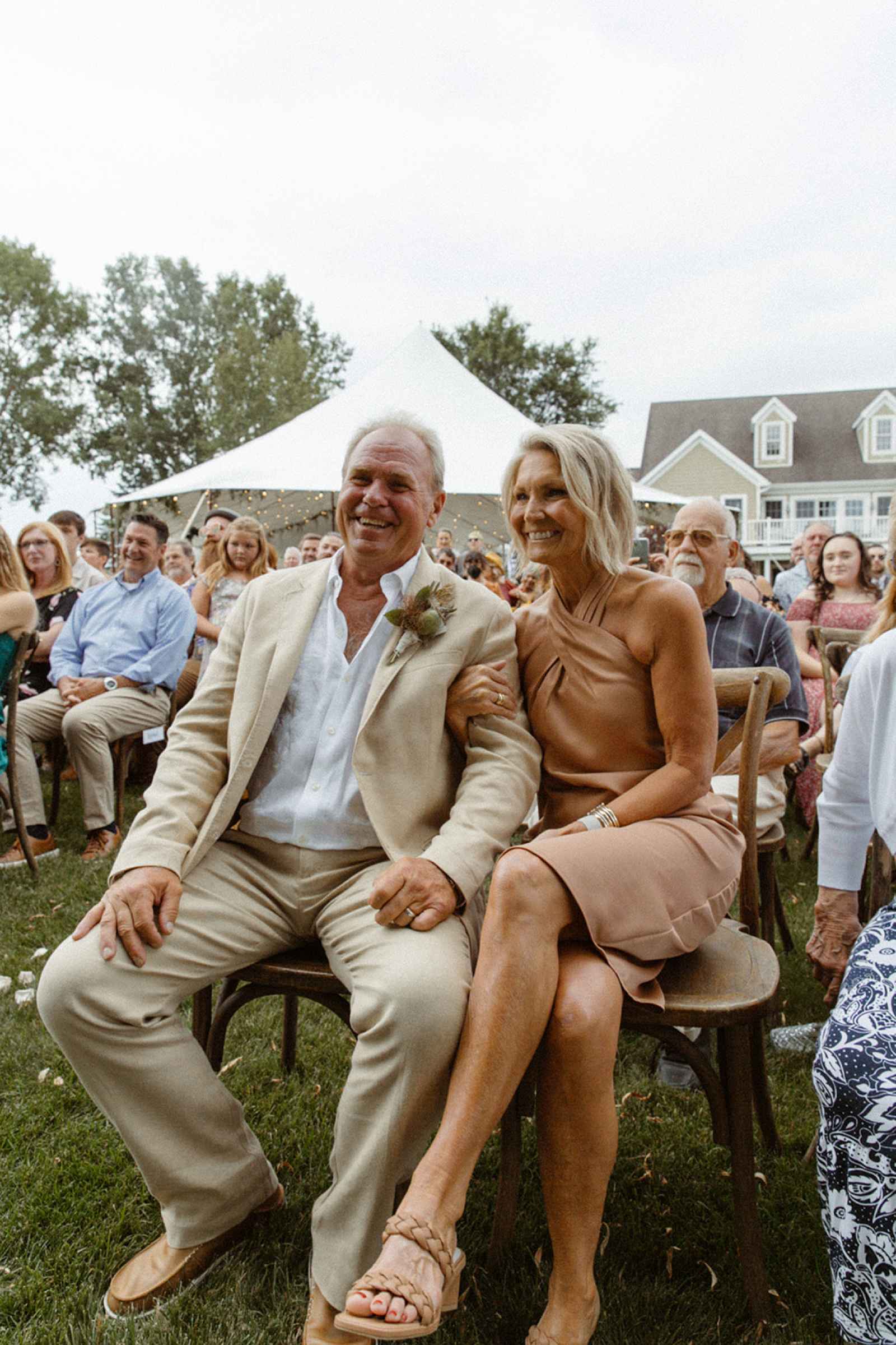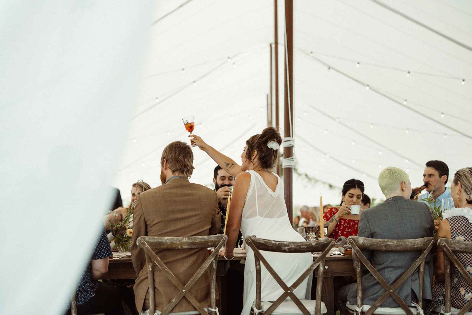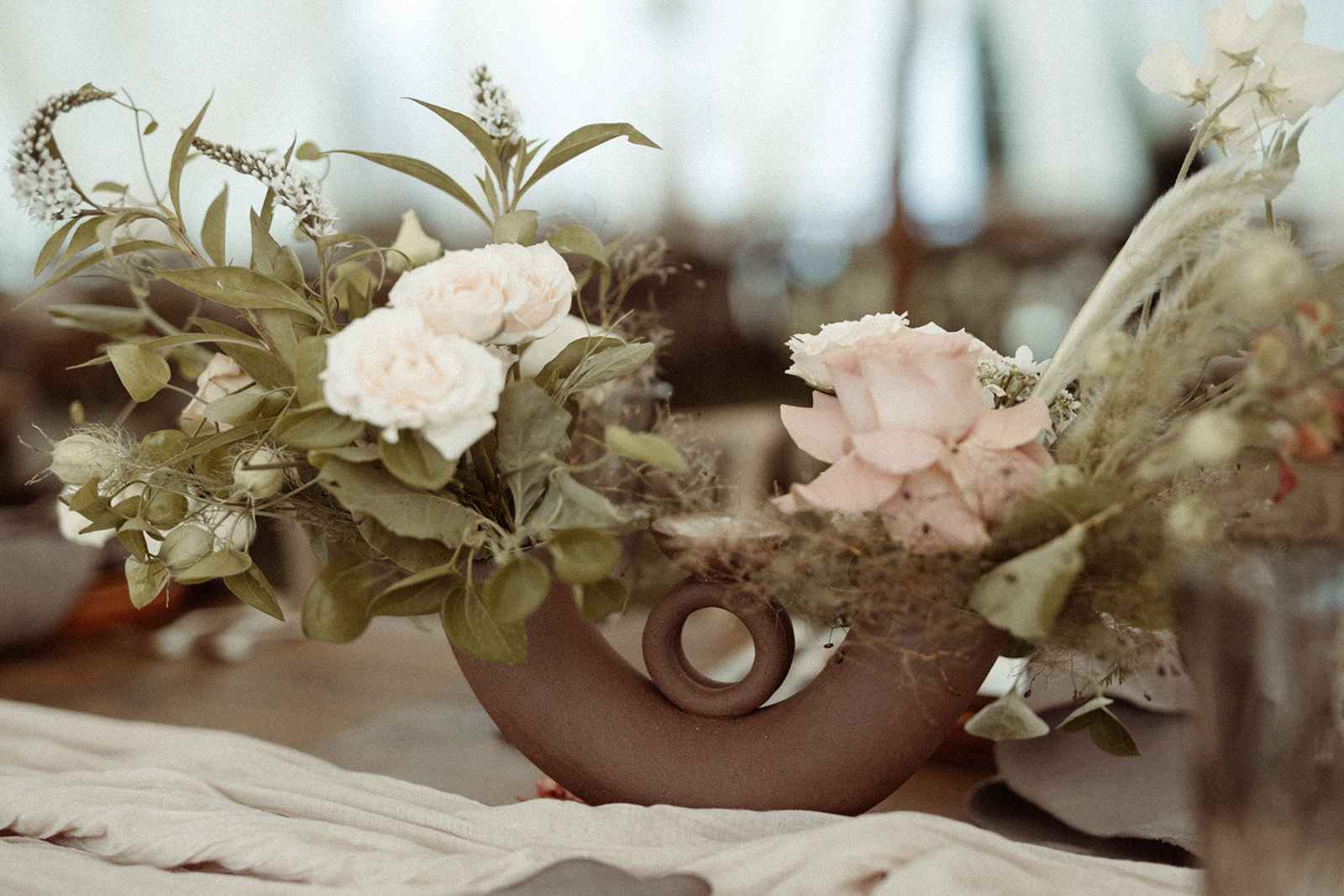 As soon as Whitney was engaged to Brian, she knew two things. One, she wanted to honor where she came from by getting married on the lake she grew up on, even though she now lives in California. Two, using her family’s rental business—AAYS Event Rentals—and their connections from many years in the wedding industry was the best way to find her vendors as well as allow Whitney a fun opportunity to work with her dad and sister. Brian and Whitney used the lake as inspiration to make a Roman-inspired summer camp wedding. Finding a middle ground between Whitney’s love for bold color and Brian’s liking of simpler hues, they decided to go with earth tones with plenty of airy elements. We love the way this truly looks like a woodland Roman feast, especially with the handmade décor items made by Whitney herself that give life to this simplistic yet elegant theme!