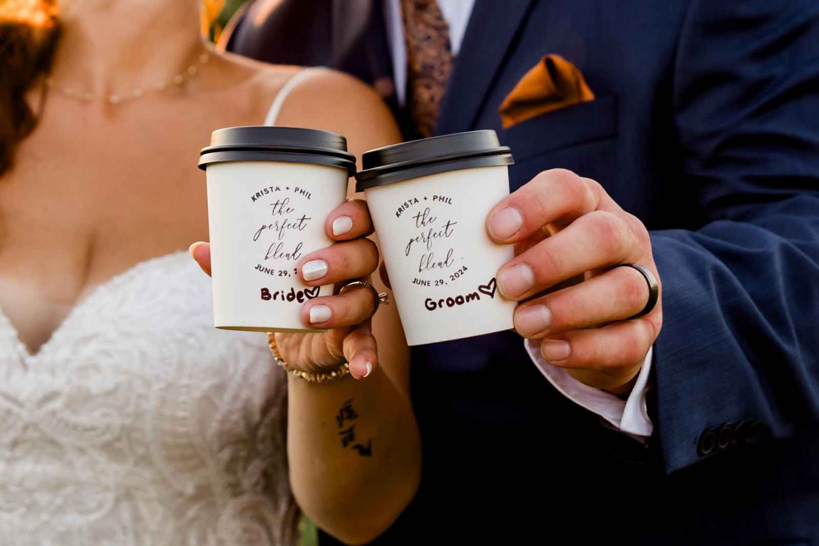 The most important thing to Krista and Phillip was having their closest loved ones there to celebrate with them. They were also able to incorporate someone who unfortunately passed before they could be wed. “My Omi made sure to give me her engagement ring before she passed away—she wanted me to have it,” Krista shares. “My husband had the diamonds from her ring set into my wedding band. It's so meaningful because I know how much she would have loved him, and I always say she sent him to me.”