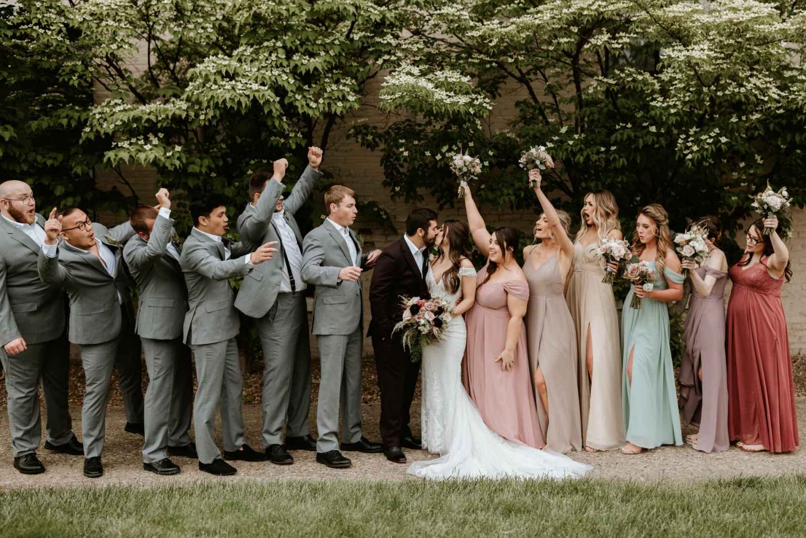 Though Lexi had set her heart on the rustic style, the color palette took a little trial and error. Once she decided, Lexi put her own twist on a familiar tradition. “I finally decided to do something a little different and had my bridesmaids wear all different colors, and I LOVED it!” Lexi shares.