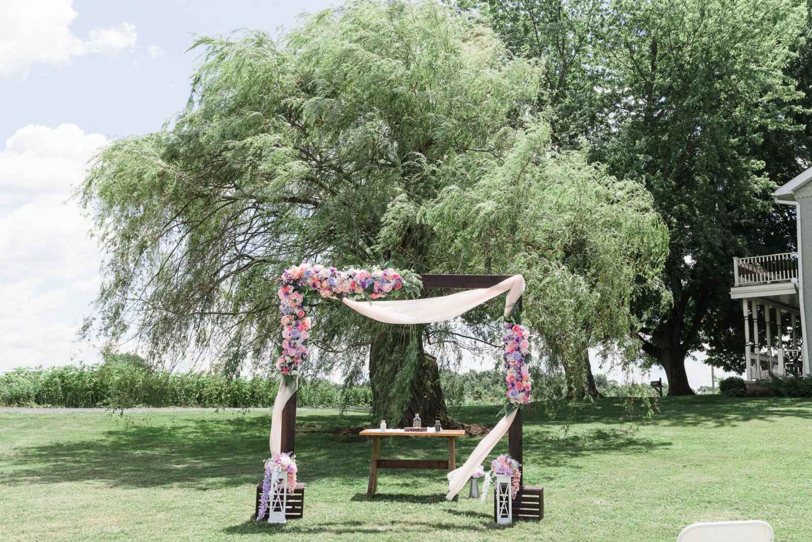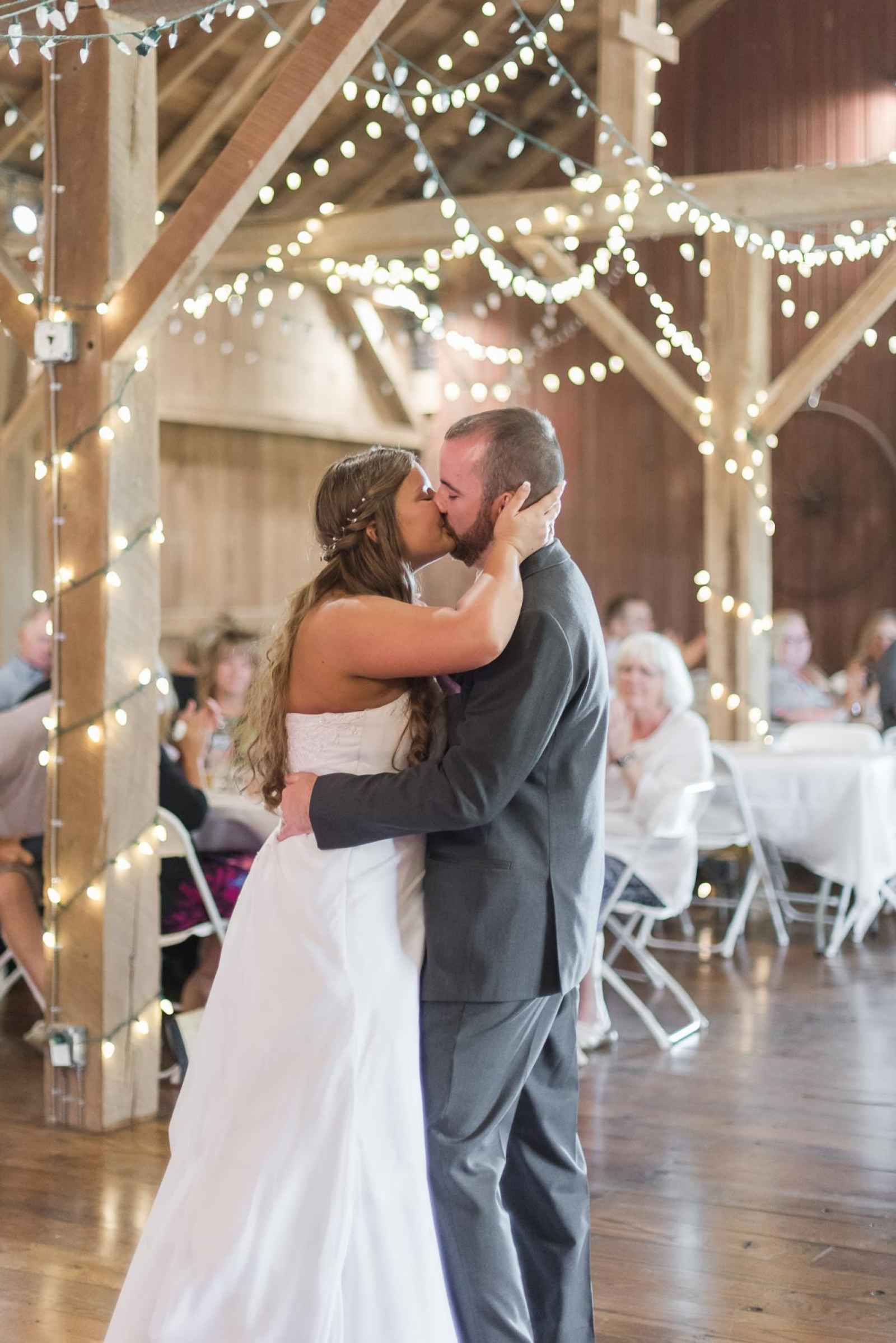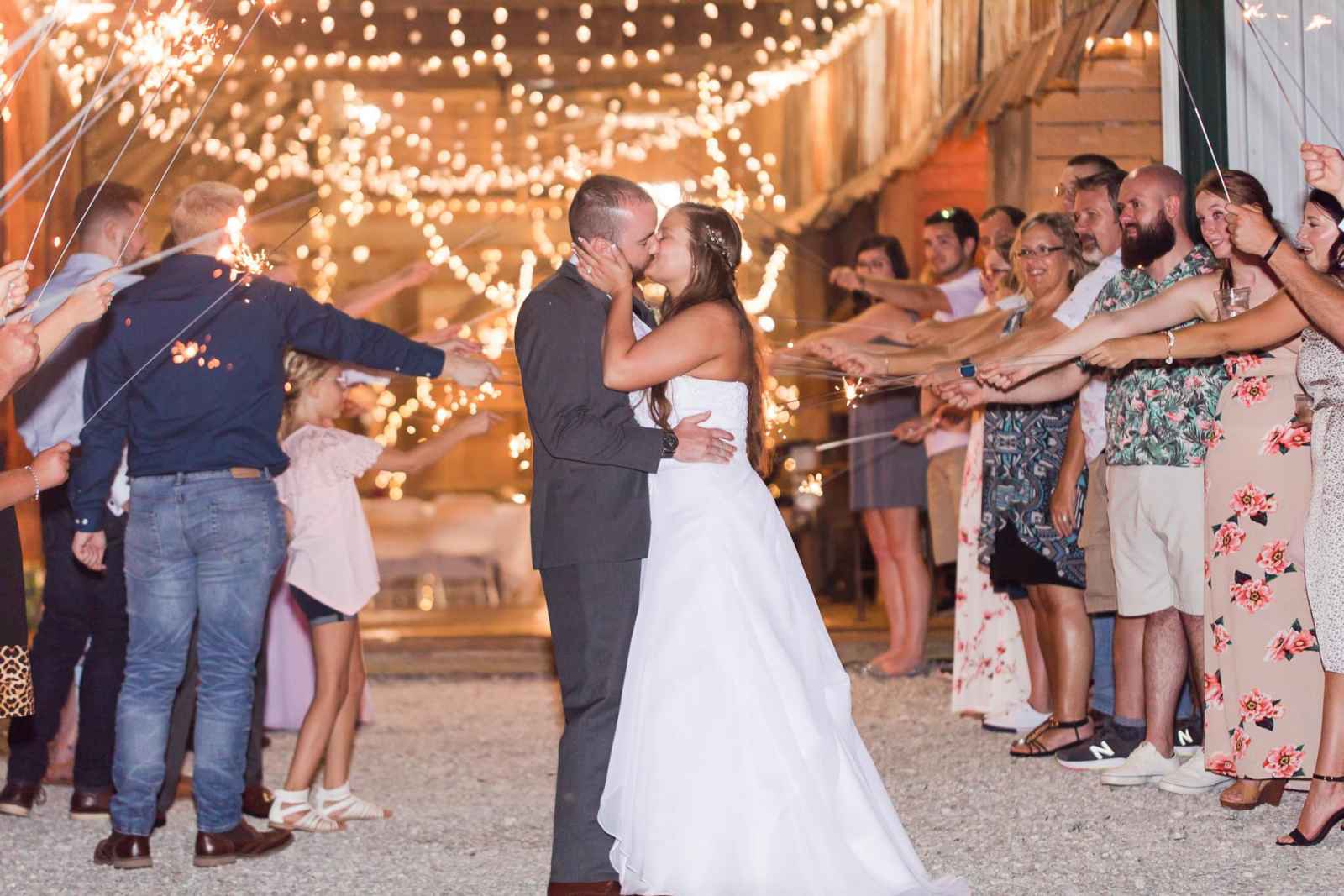 Megan and Matt’s outdoor wedding had all the rustic touches for a true Hoosier barn wedding! The couple added a unique twist to their day by focusing on a spring color palette, using shades of white, lilac and peach. “Lilac is one of my favorite colors and the peach and white accented very well,” Megan says.