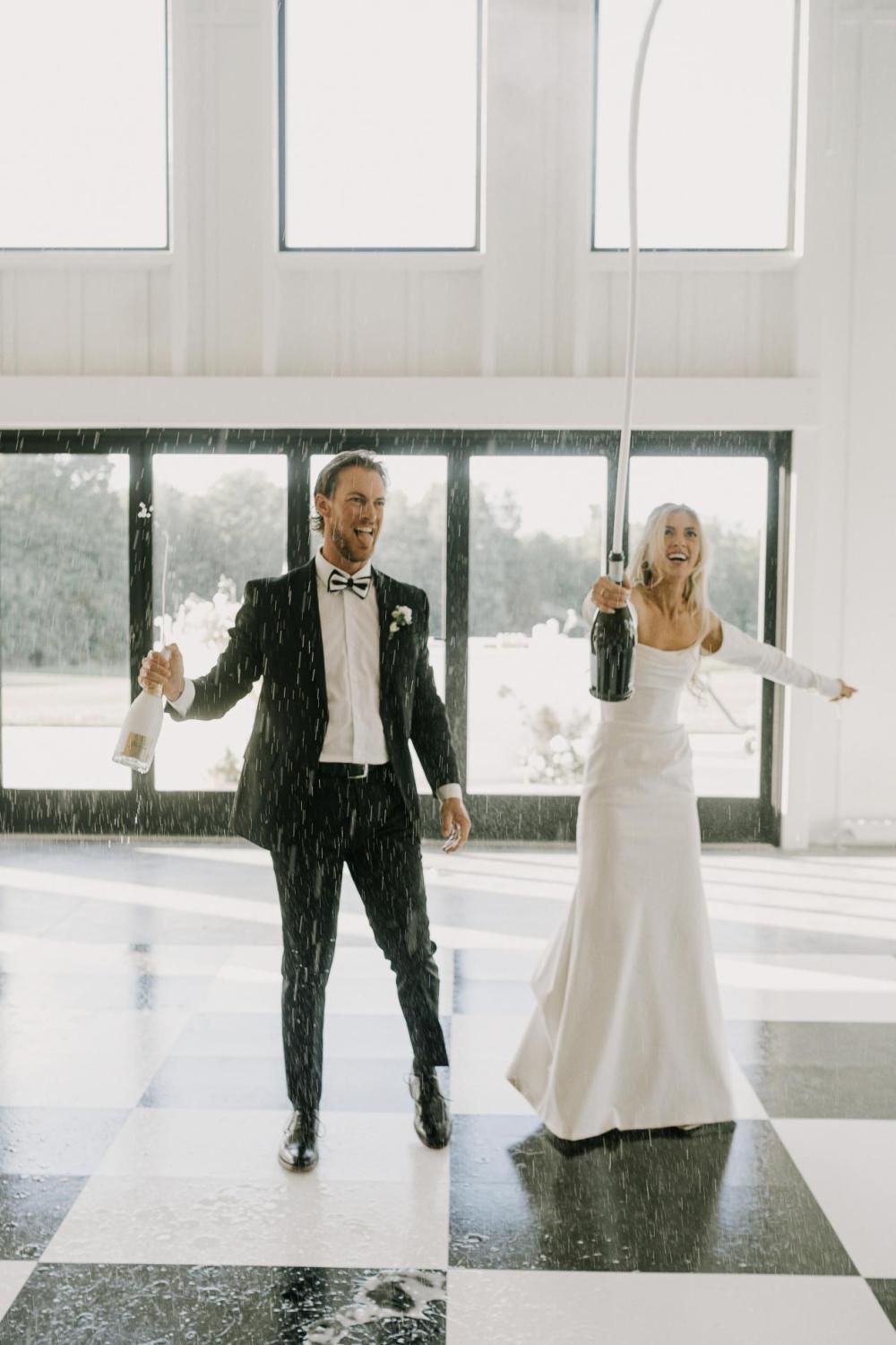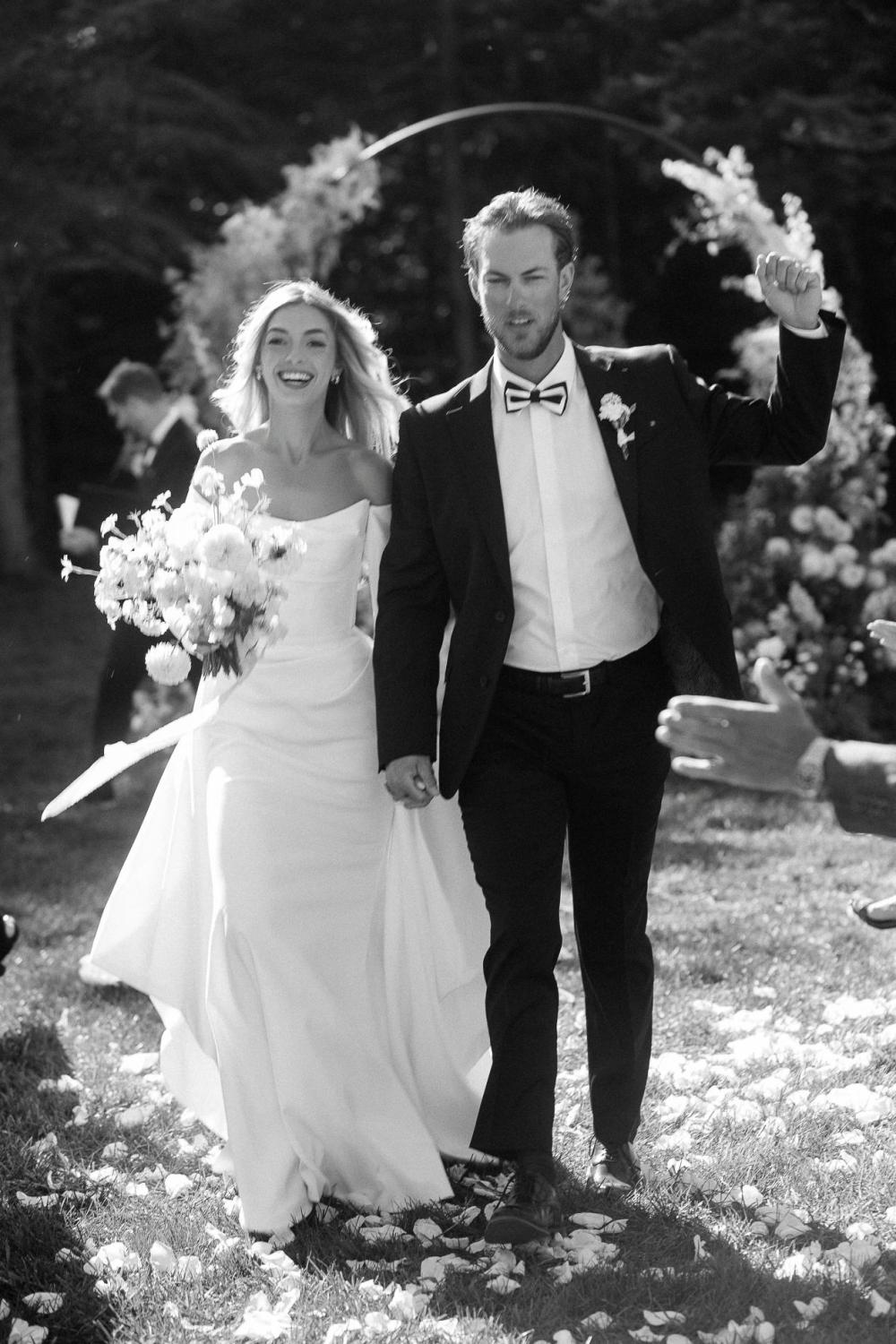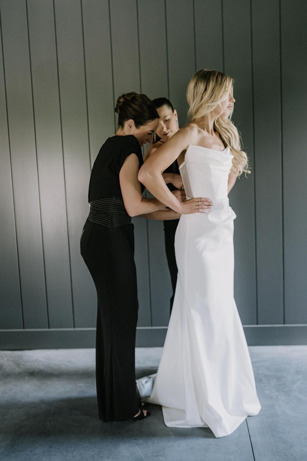 was looking for but it ended up being very different but so much better," Katelynn admits. "My recommendation to other brides is have an open mind and try on ALL the dresses." We love the classic elegance of the satin gown and its silhouette as well as the modern touches like the exposed corset in the back and removable sleeves!
