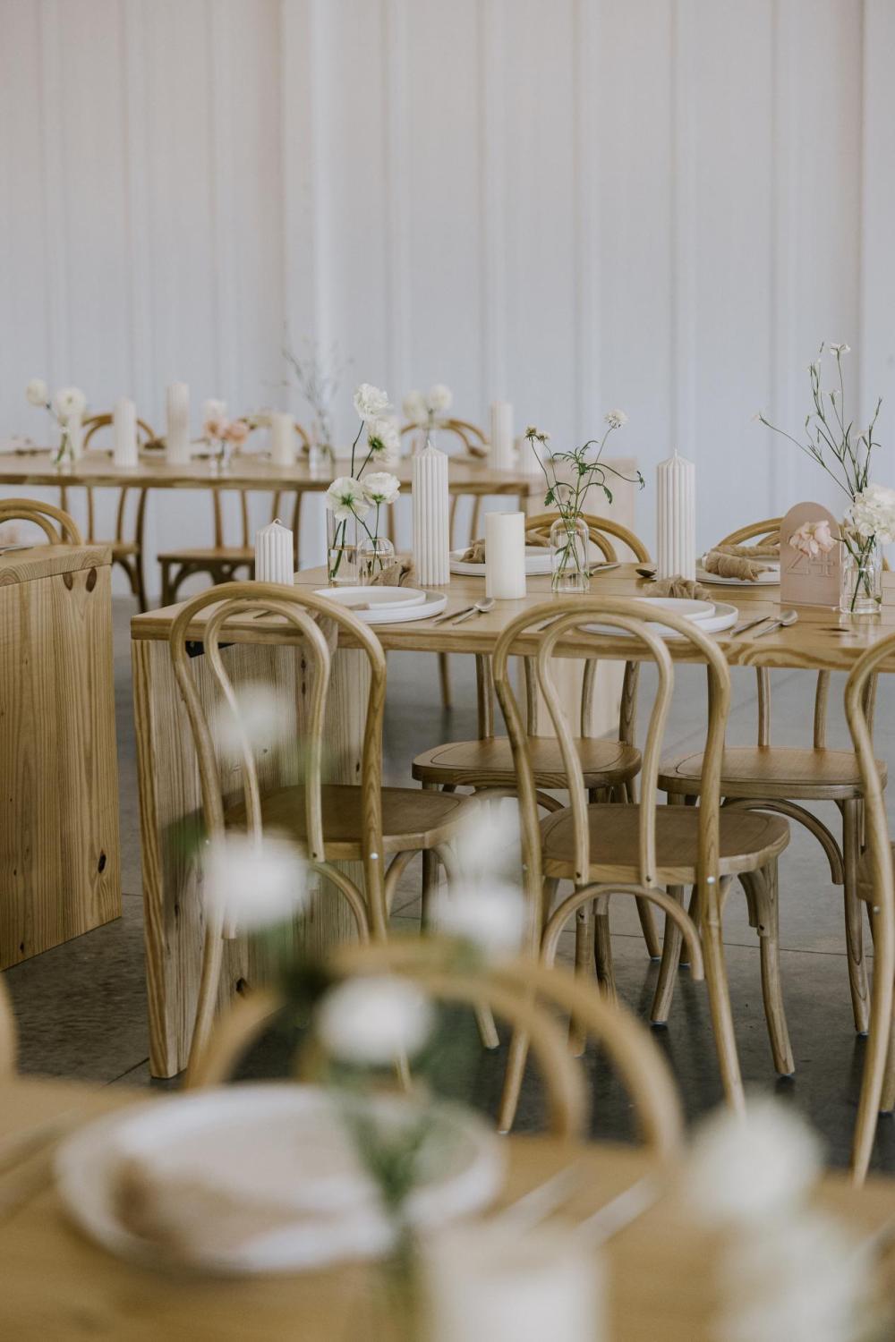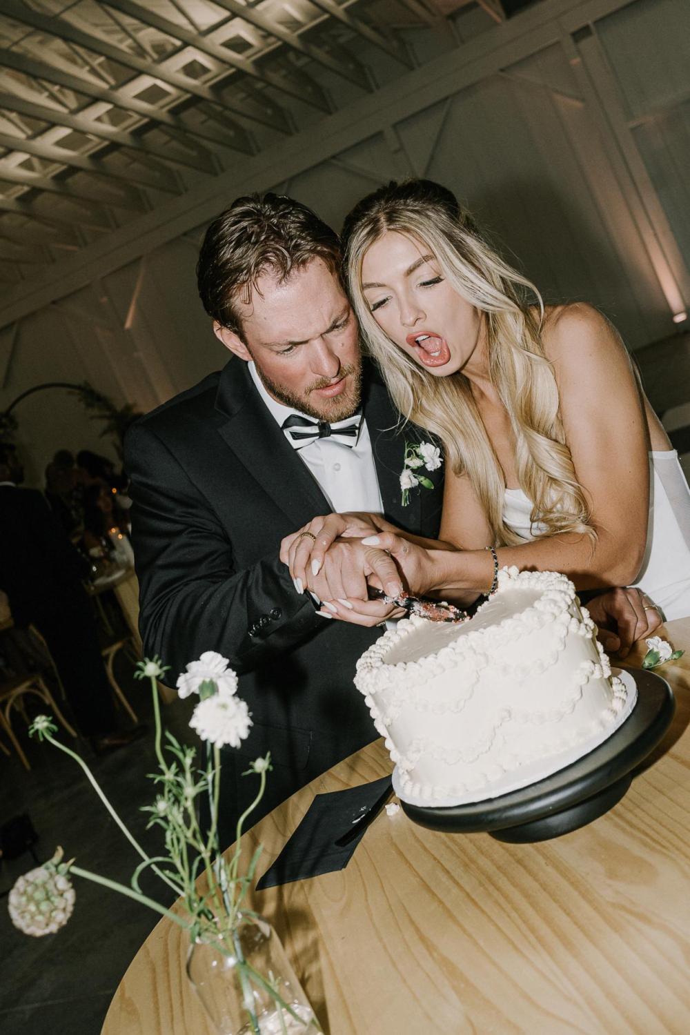 Speaking of vendors, their florist had a huge impact on their wedding day by inspiring Katelynn and CJ's color scheme. She put together a soft and monochromatic neutral palette for them to build their wedding day around. Katelynn explains, "I like very light and neutral décor. My dad is very handy, and hand built natural wood tables that I paired with lots of neutral florals." There are so many places you can see their elegant color scheme, including that beautiful and delicious cake made by Froehlich's!