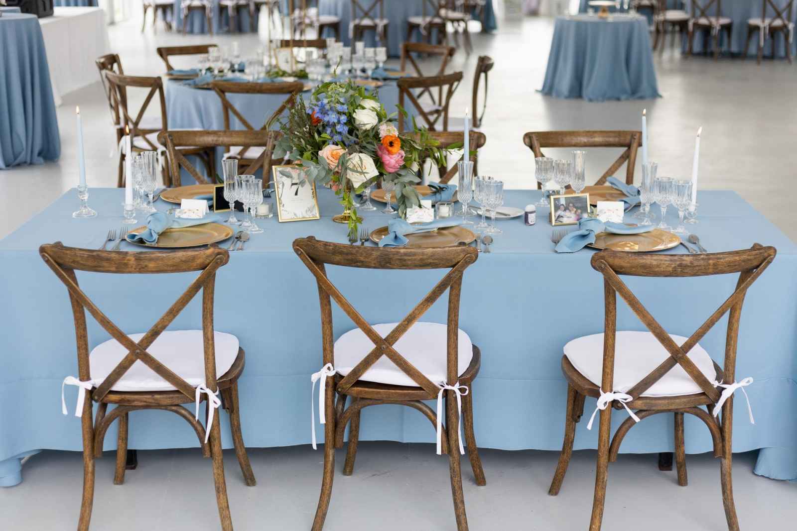 The mothers of the bride and groom teamed up to collect childhood and family photos to use as décor on the reception tables. “It was so special, and they all took the photos home,” Kate gushes. “I am pretty sure Andrew’s uncle cried when he saw his photo.”